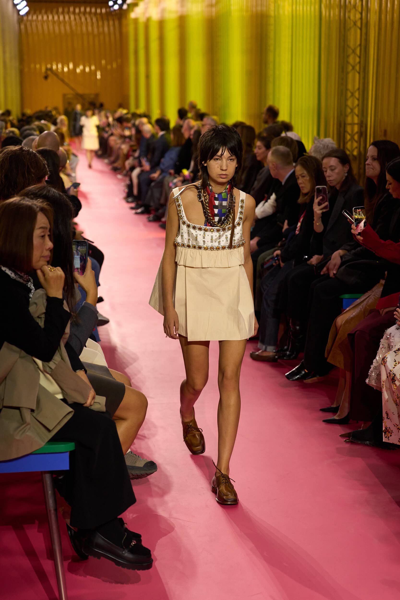 Discover the atmosphere and staging of Miu Miu‘s Spring 2026 fashion show at Paris Fashion Week, creating an unforgettable mood this September.