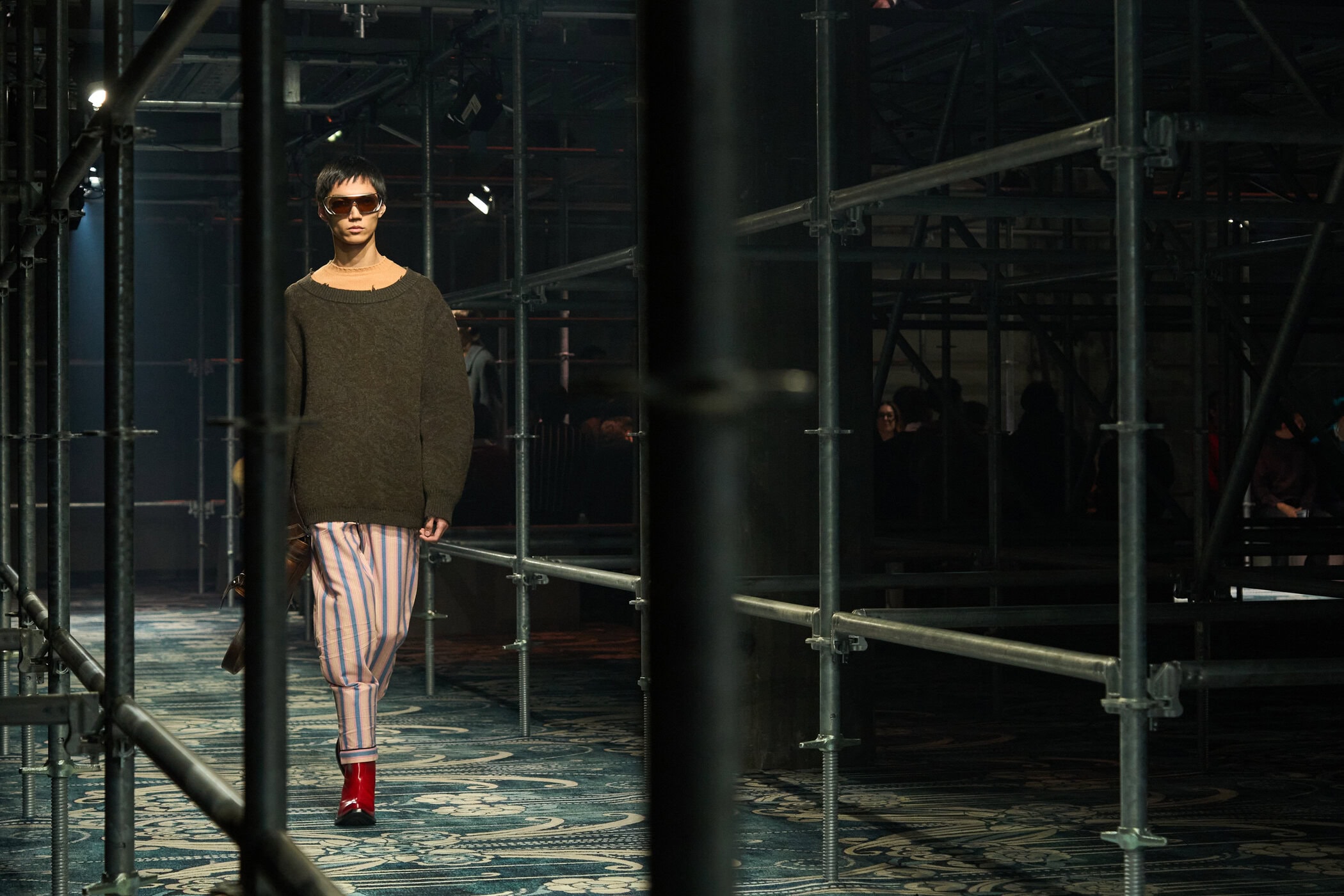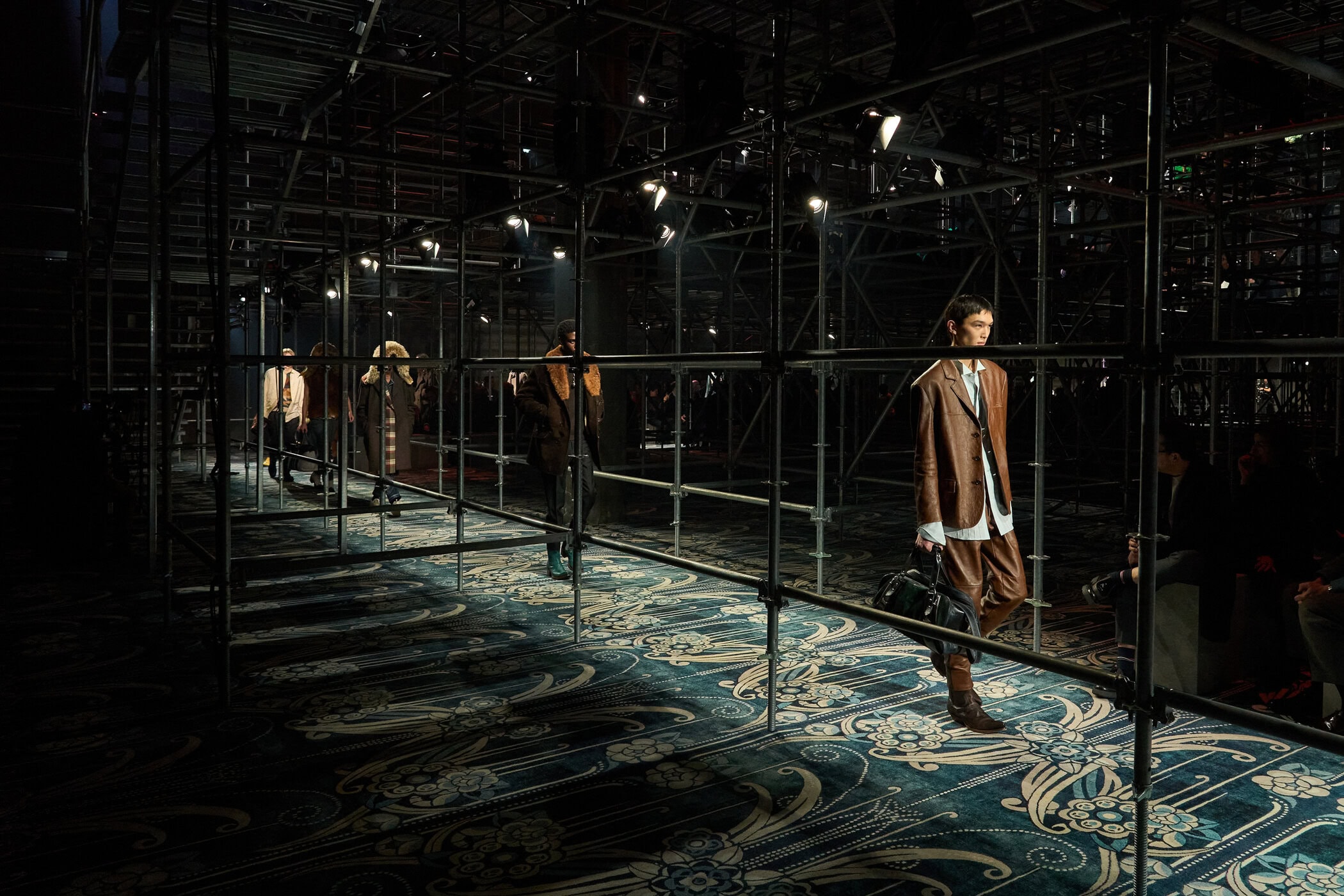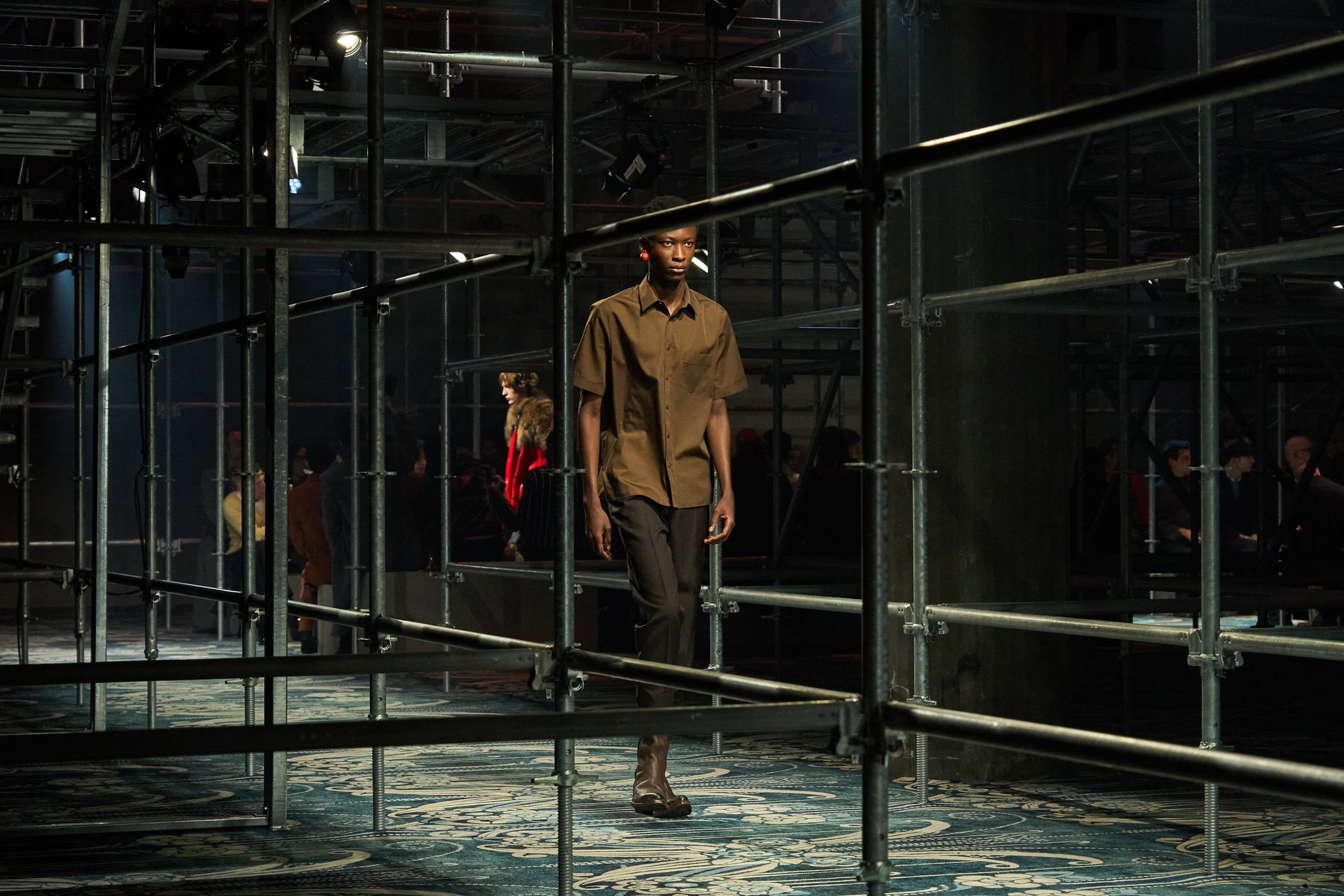 Discover the immersive atmosphere and striking staging of Prada‘s Fall 2025 mens fashion show at Milan Men’s Fashion Week, creating an unforgettable mood this Jan.