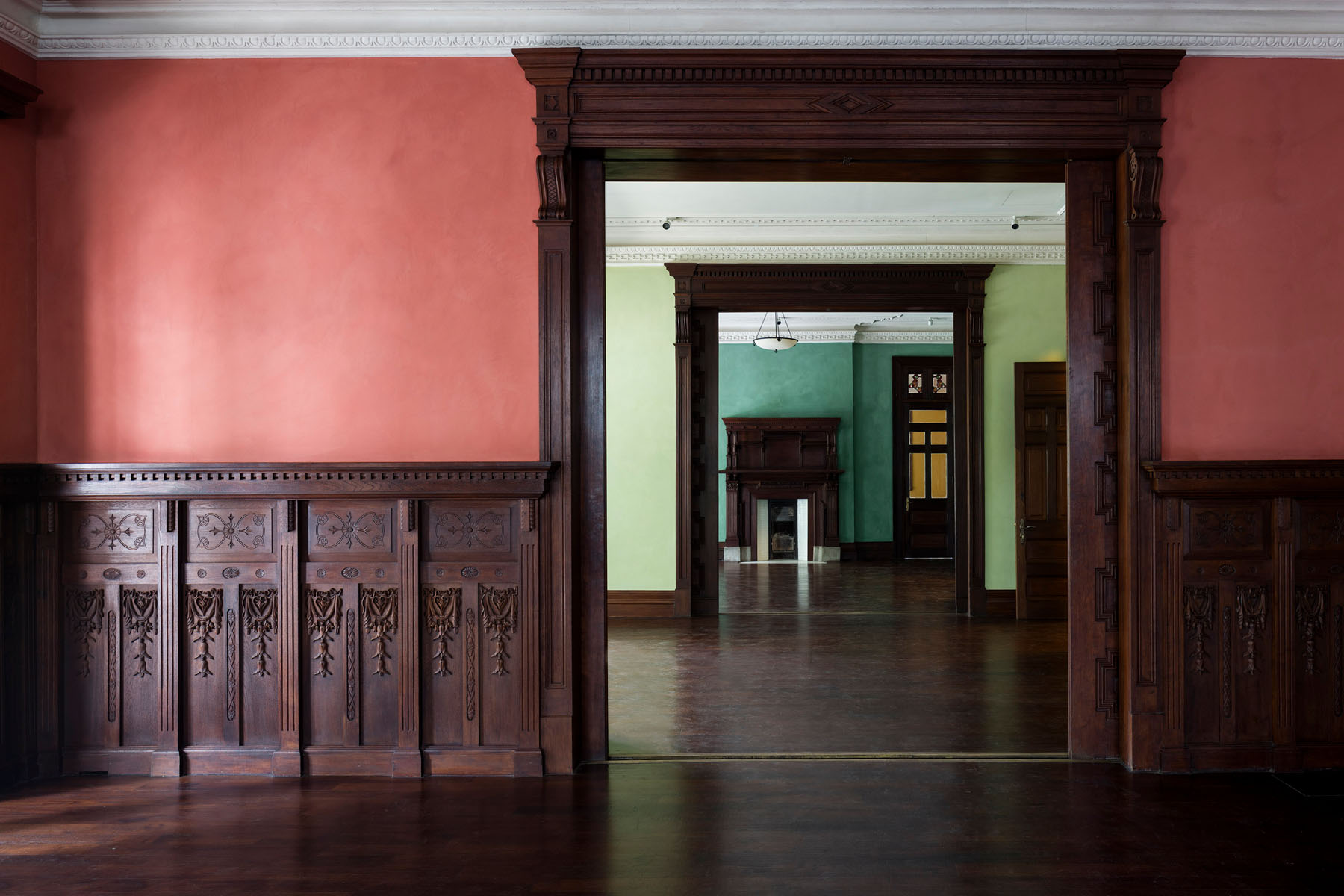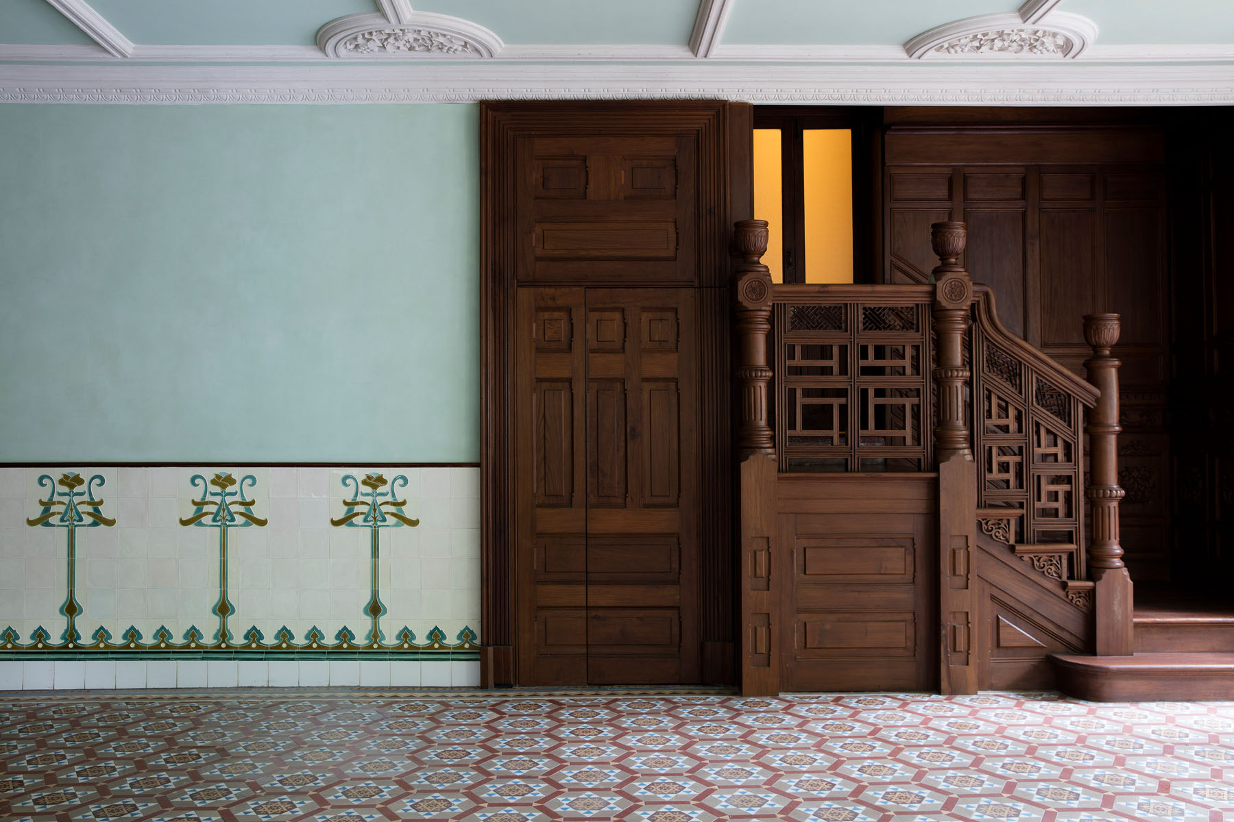 Baciocchi and a team of Italian and Chinese craftsmen repaired damages to the mansion and restored the building’s interior and exterior structural elements, including plasterwork, wooden paneling, stained glass and decorative tile. In addition, the team modeled some fabrication and installation techniques after traditional methods and materials used by the craftsmen who originally built Rong Zhai.