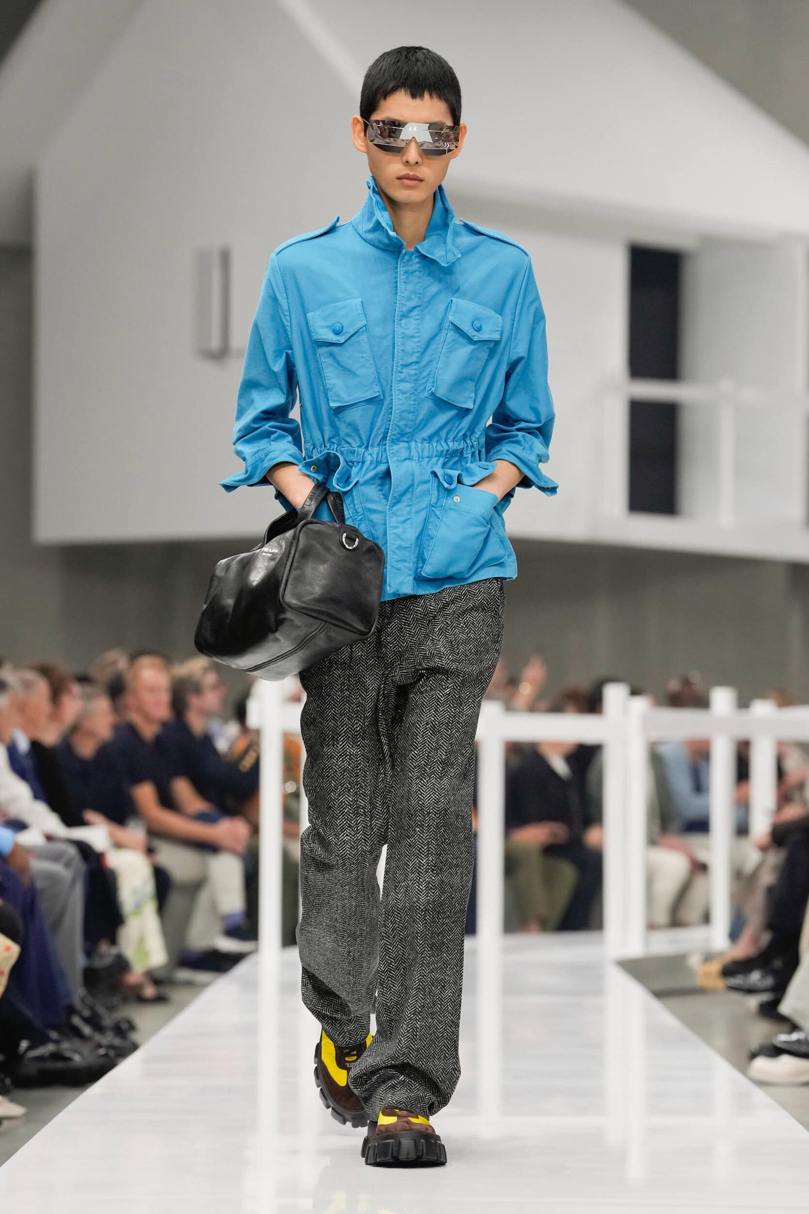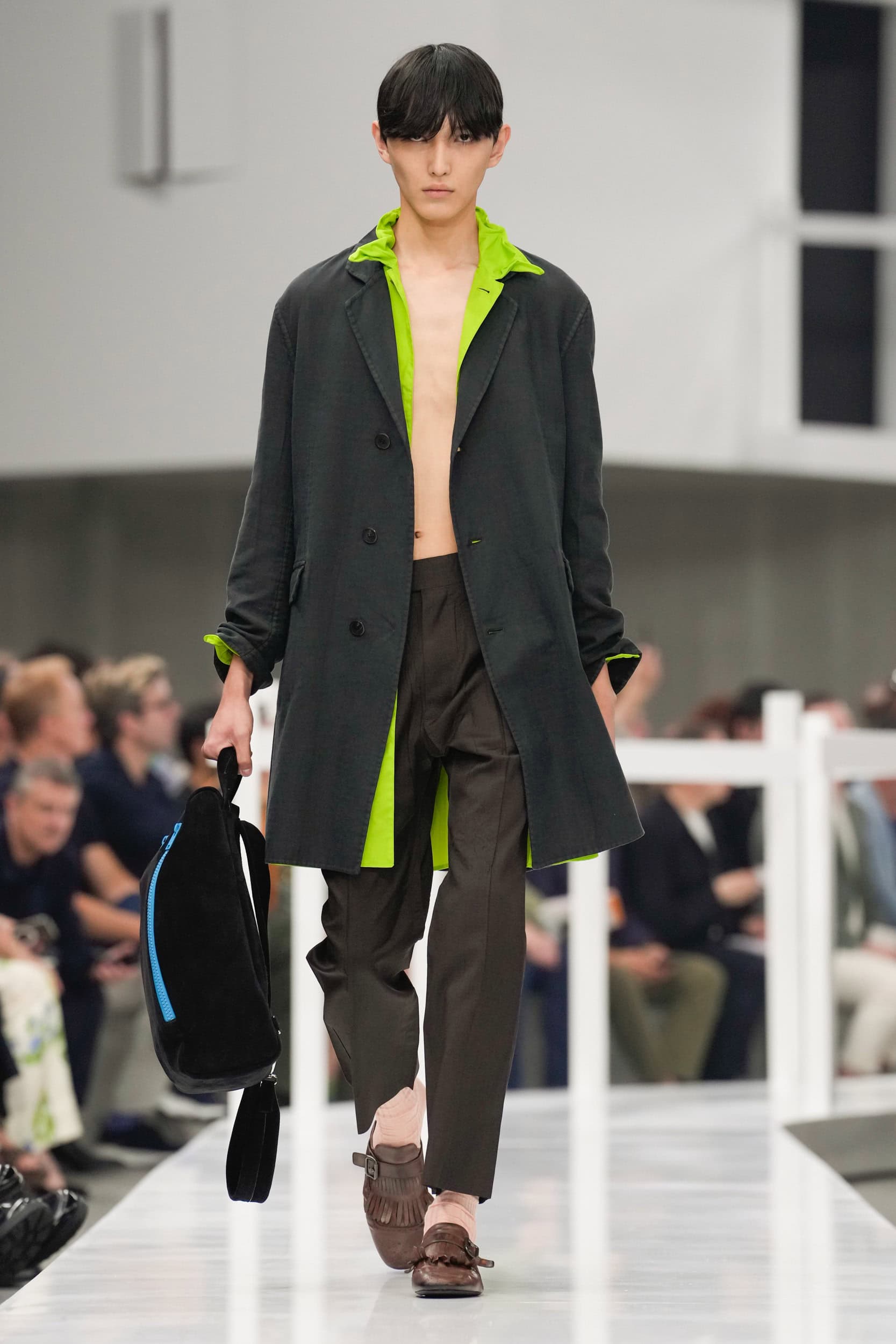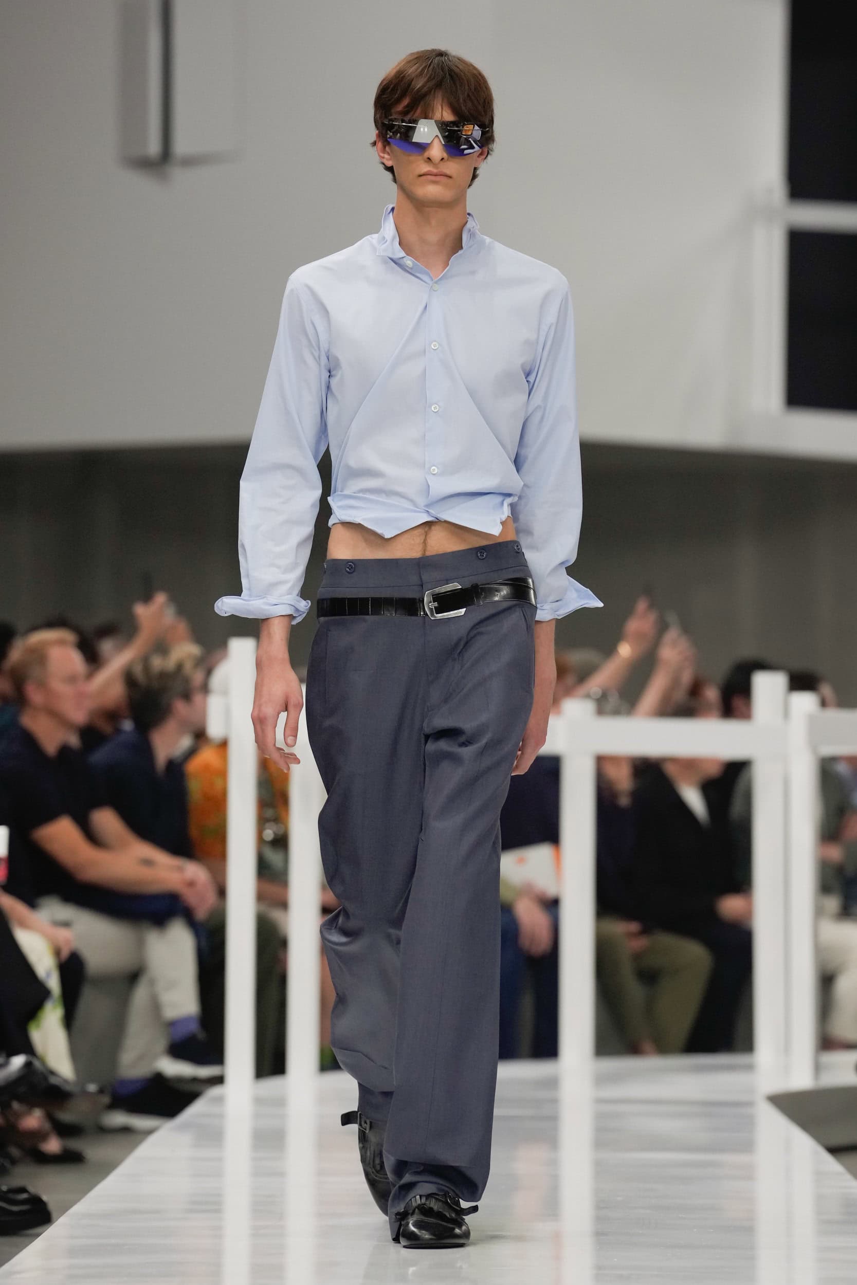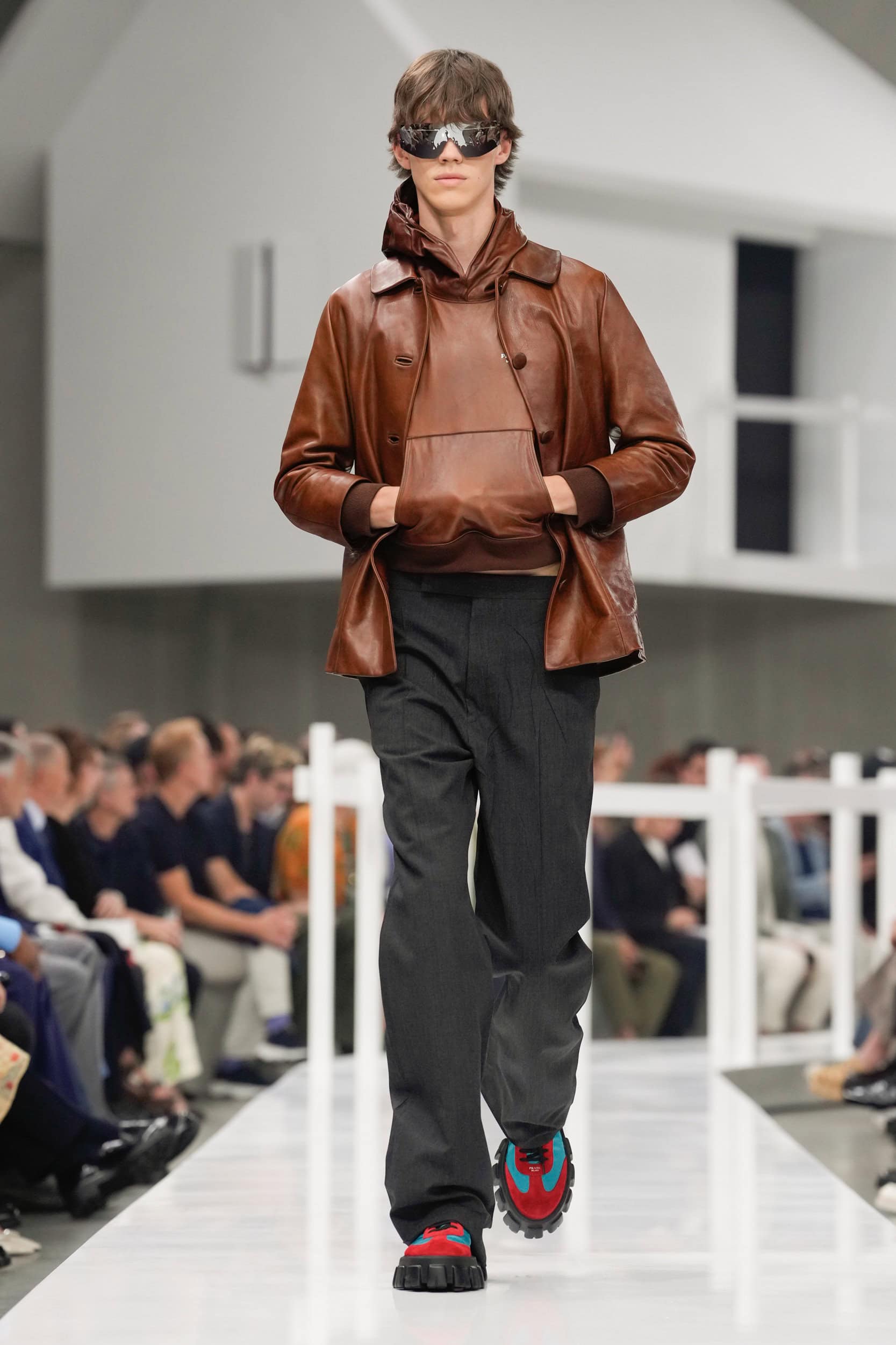 Get an exclusive look at Miuccia Prada and Raf Simons’ Prada‘s innovative Spring 2025 men’s fashion show from the runways of Milan Men’s Fashion Week, held in June 2024.