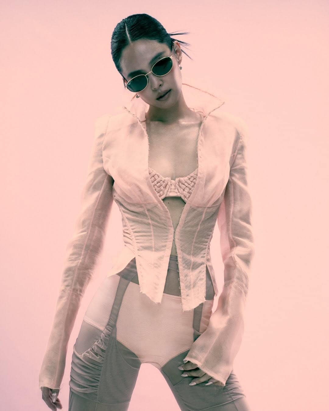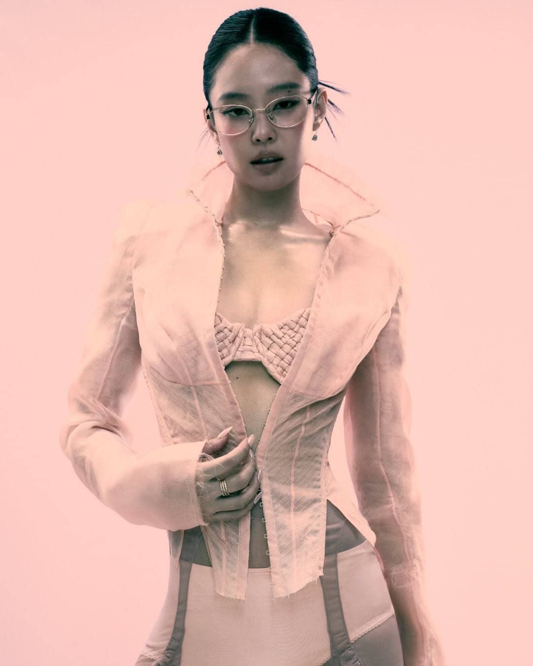 The accompanying campaign leans into this sensibility, framing eyewear not as a statement piece alone, but as an extension of identity. Moving fluidly between ’90s-inspired wraparound silhouettes, refined metal frames, and softly nostalgic cat-eye shapes, Jennie embodies a spectrum of moods that feel effortless rather than constructed. The visual language remains clean and direct, allowing the product—and the persona—to coexist without competition.