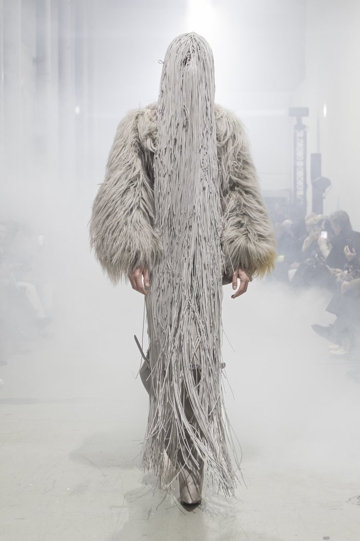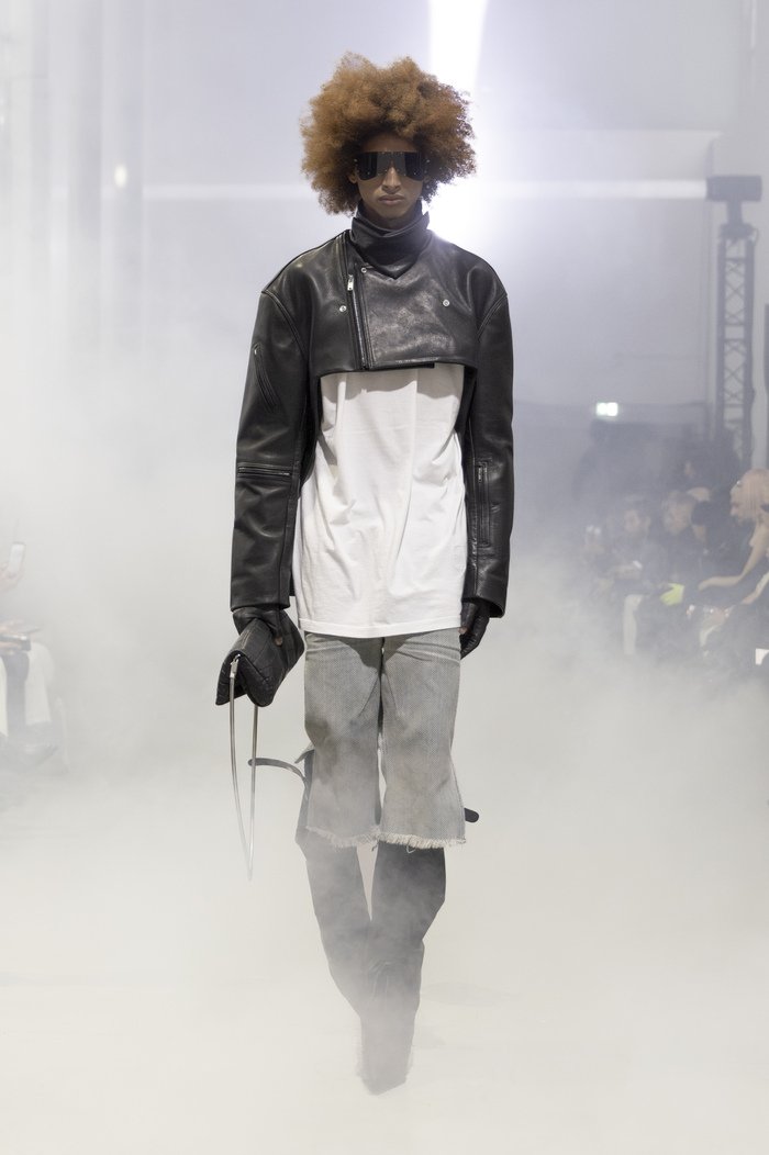 Challenging the rise of extreme politics across the globe, Rick Owens chose mocking and parody to disarm those who would oppress the masses. In making fun of the symbols of power the designer is no more dismissing the gravity of what is happening in the world, but instead he has chosen to use fear as a tool to fight.