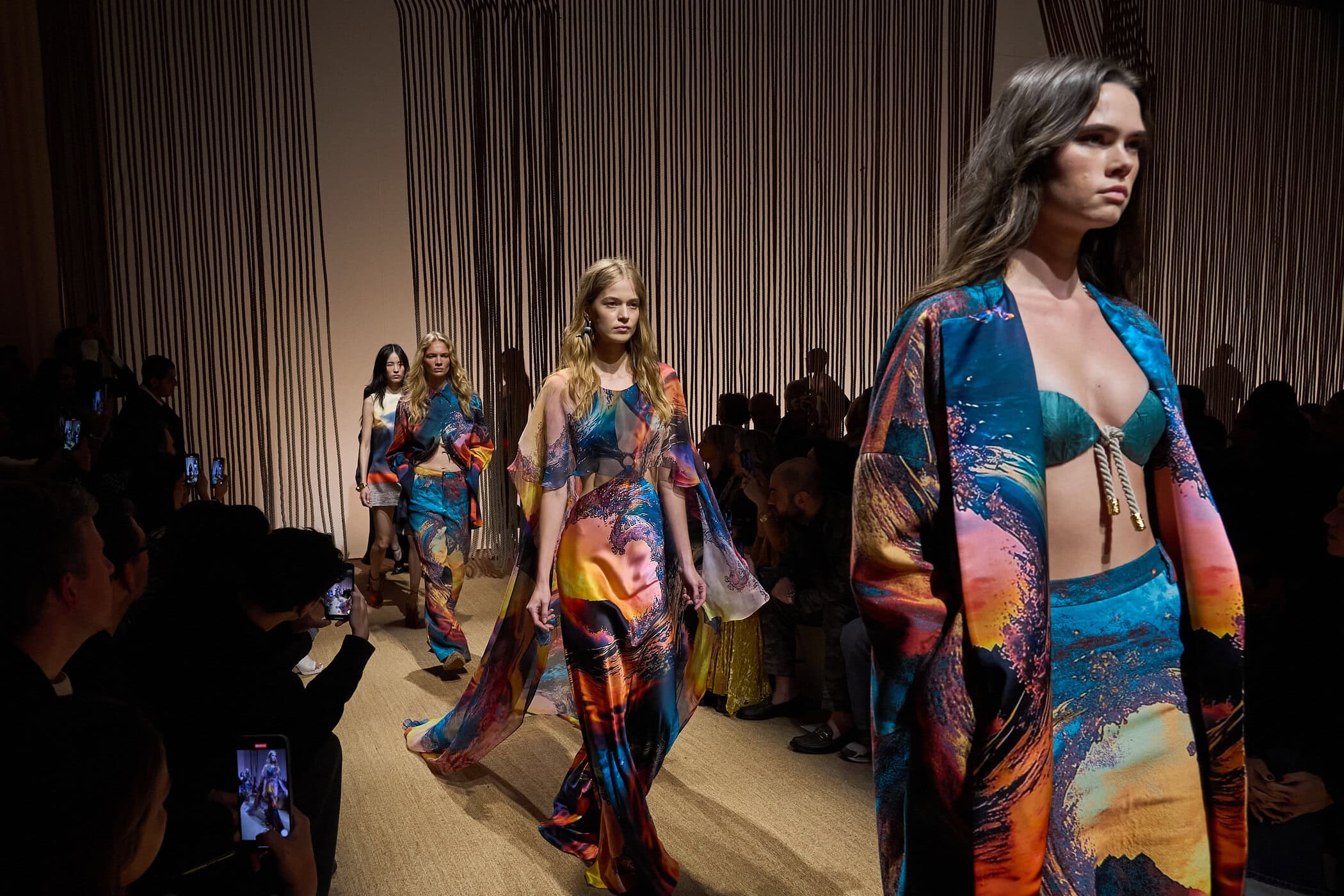 Discover the immersive atmosphere and striking staging of Roberto Cavalli‘s Spring 2025 fashion show at Milan Fashion Week, creating an unforgettable mood this season.