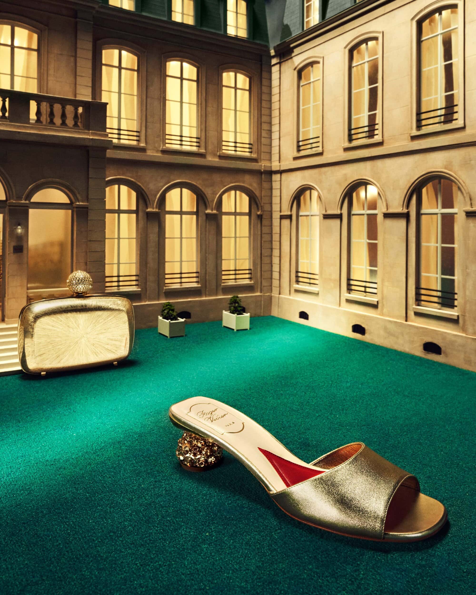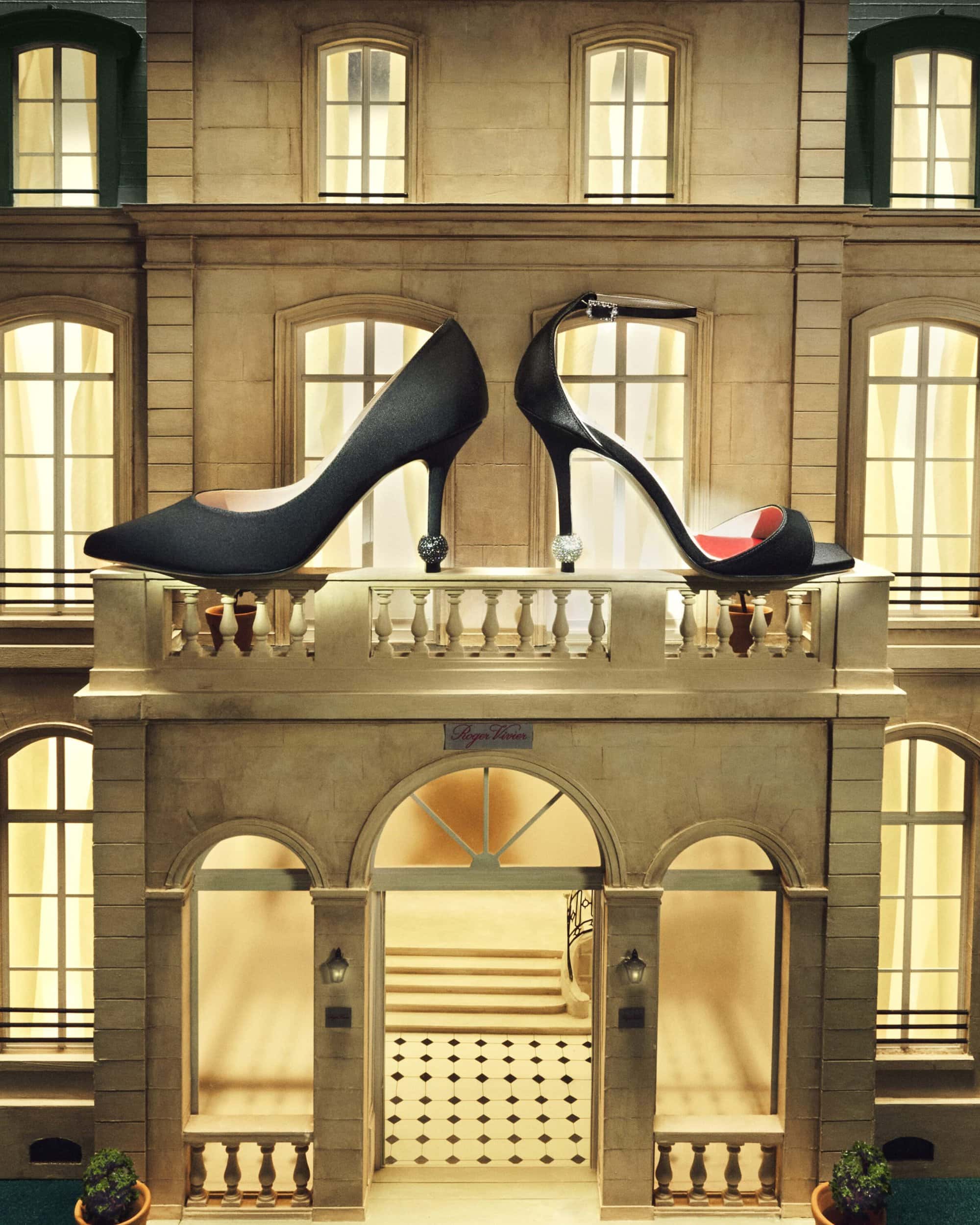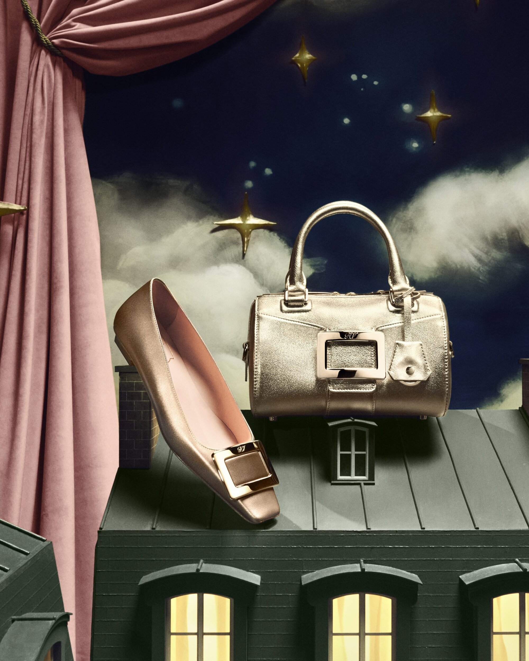 For Holiday 2025, Roger Vivier turns its maison into a stage — and its accessories into the stars. Conceived by creative director Gherardo Felloni, the campaign continues the celebration of the newly opened Maison Vivier with a series of jewel-box images that merge miniature architecture and grand emotion. Shoes and bags become characters in a Parisian fairytale, posed against an intricate model of the maison that glows with golden light. It’s a world both small and vast: meticulous craftsmanship scaled down to dollhouse fantasy, yet radiating the kind of glamour only Vivier can conjure.