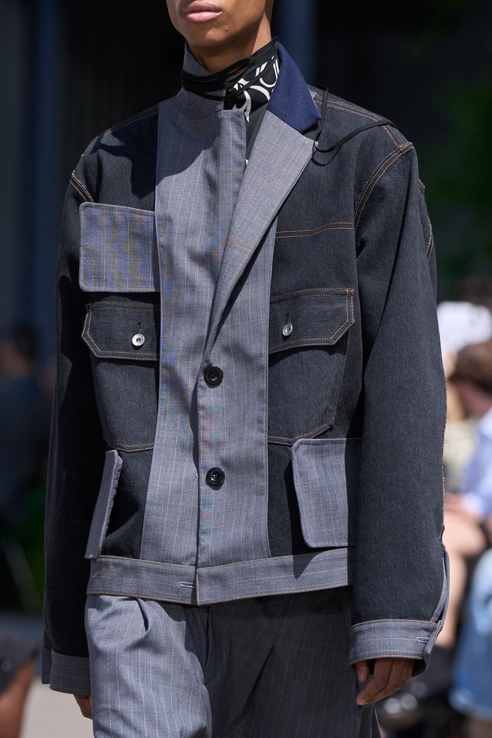 Sacai Spring 2024 Men’s Fashion Show Close-up from Paris Men’s Fashion Week (June 2023).