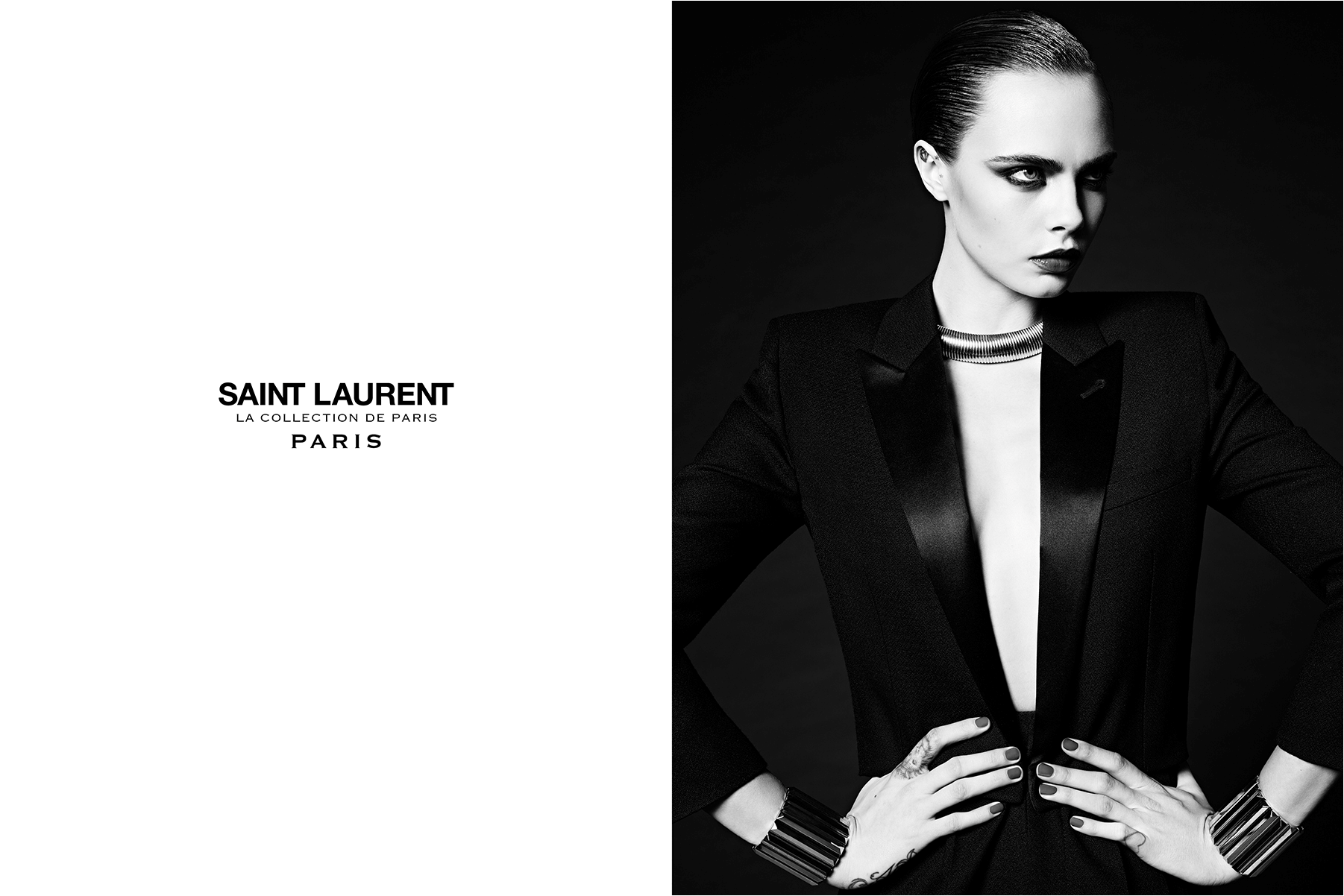 Cara Delevingne stepped out of her modeling hiatus to star in Saint Laurent’s “Le Collection de Paris”. On March 17th, Hedi Slimane directed and photographed the campaign for the French house in New York, creating four stunning images that were released on Twitter on Wednesday. Delevingne, who has an established relationship with the brand, brings her signature fierce gaze and timeless beauty to the four black and white shots. The beauty of the images paired with the brand’s Twitter release leave quite the impression- but we expect nothing less from Saint Laurent.