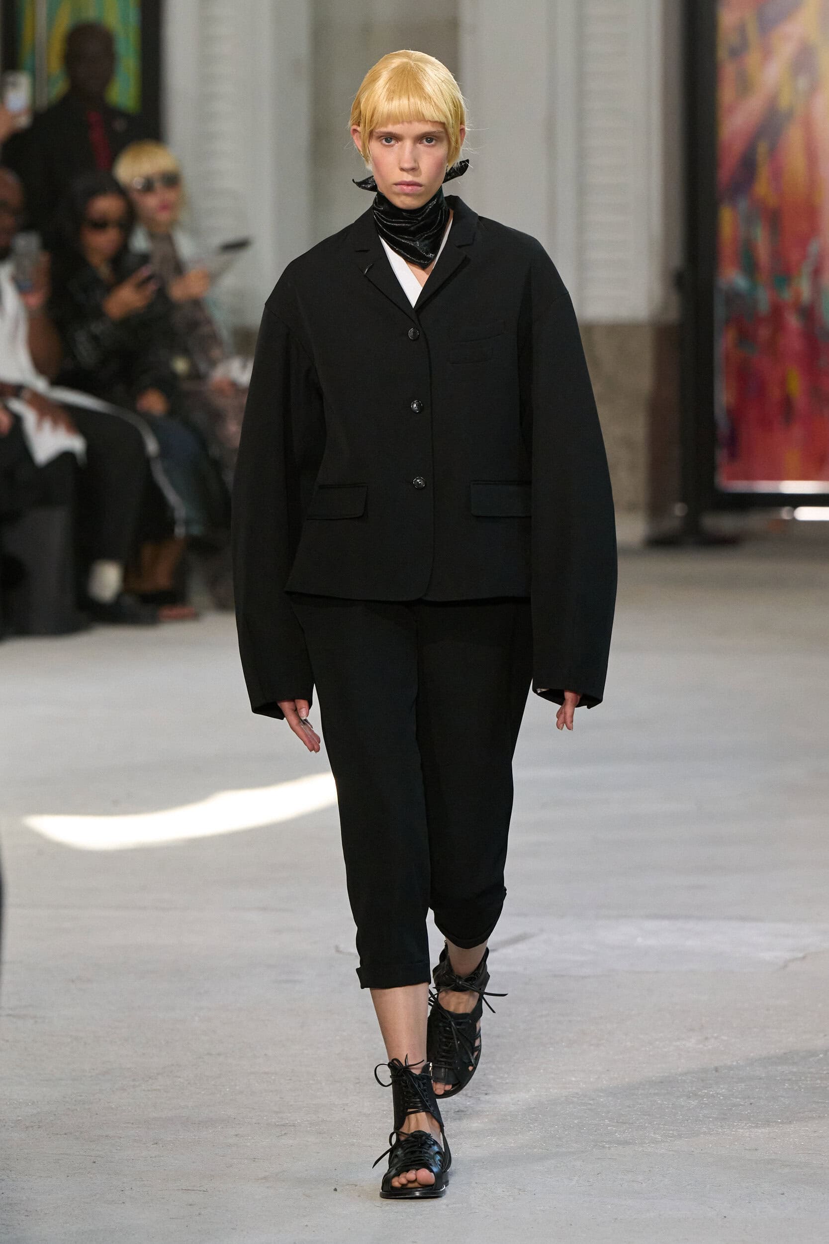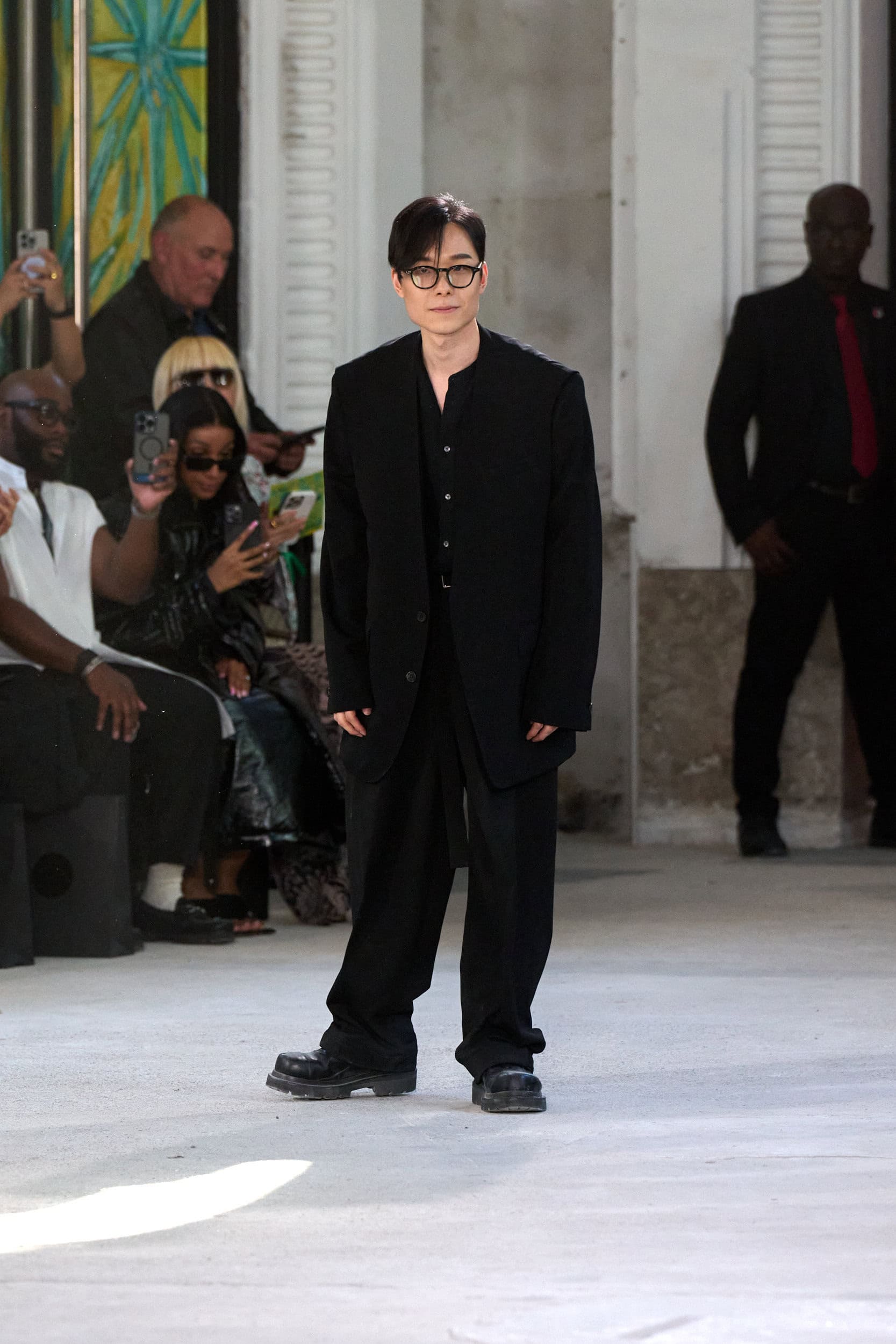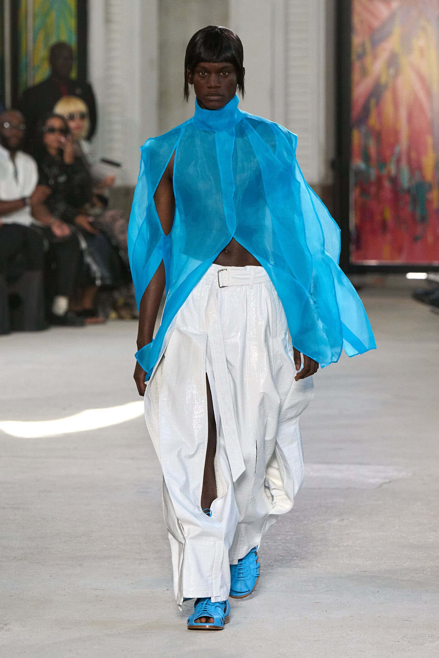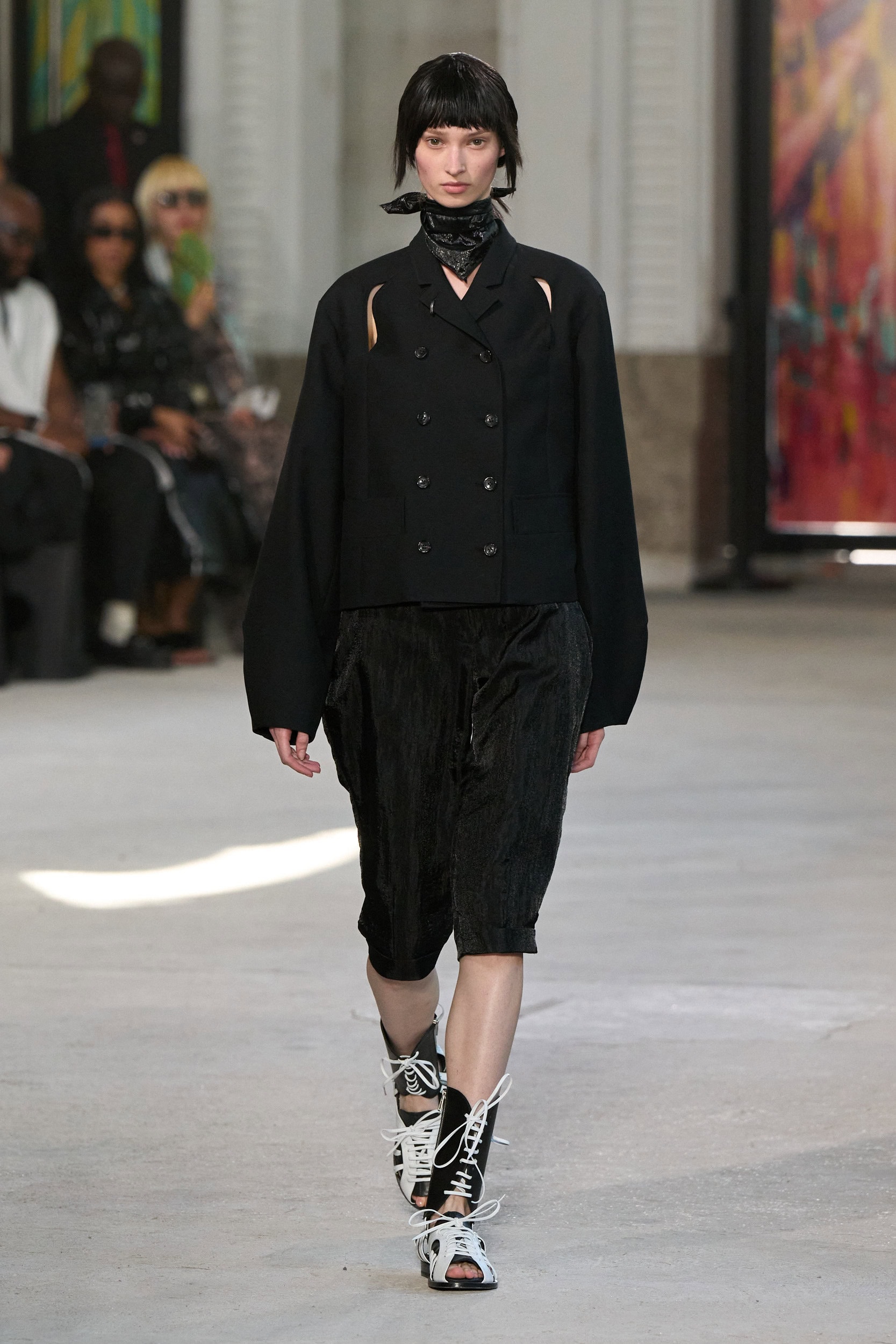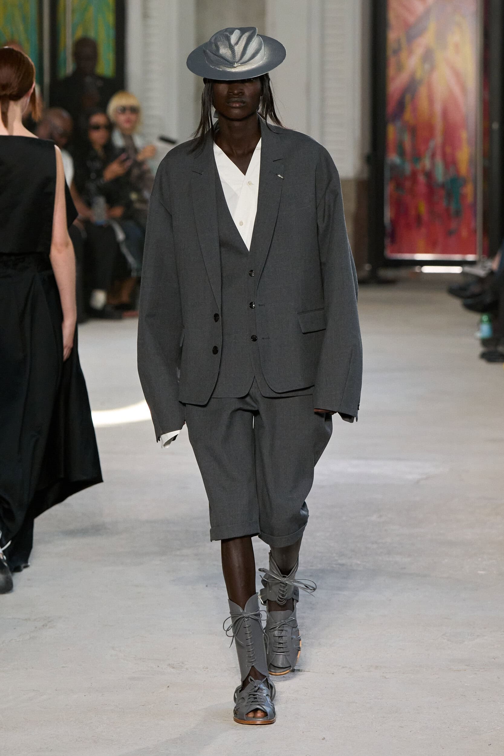 The runway showcased high-collar windbreakers, oversized blazers, workman’s jackets, blousons with asymmetrical necklines, and wide-cropped trousers or tailored shorts – blending East-meets-West influences that Song enjoys playing with. Cut from lightweight fabrics like silk, organza, or mesh, the pieces felt breezy and generous.