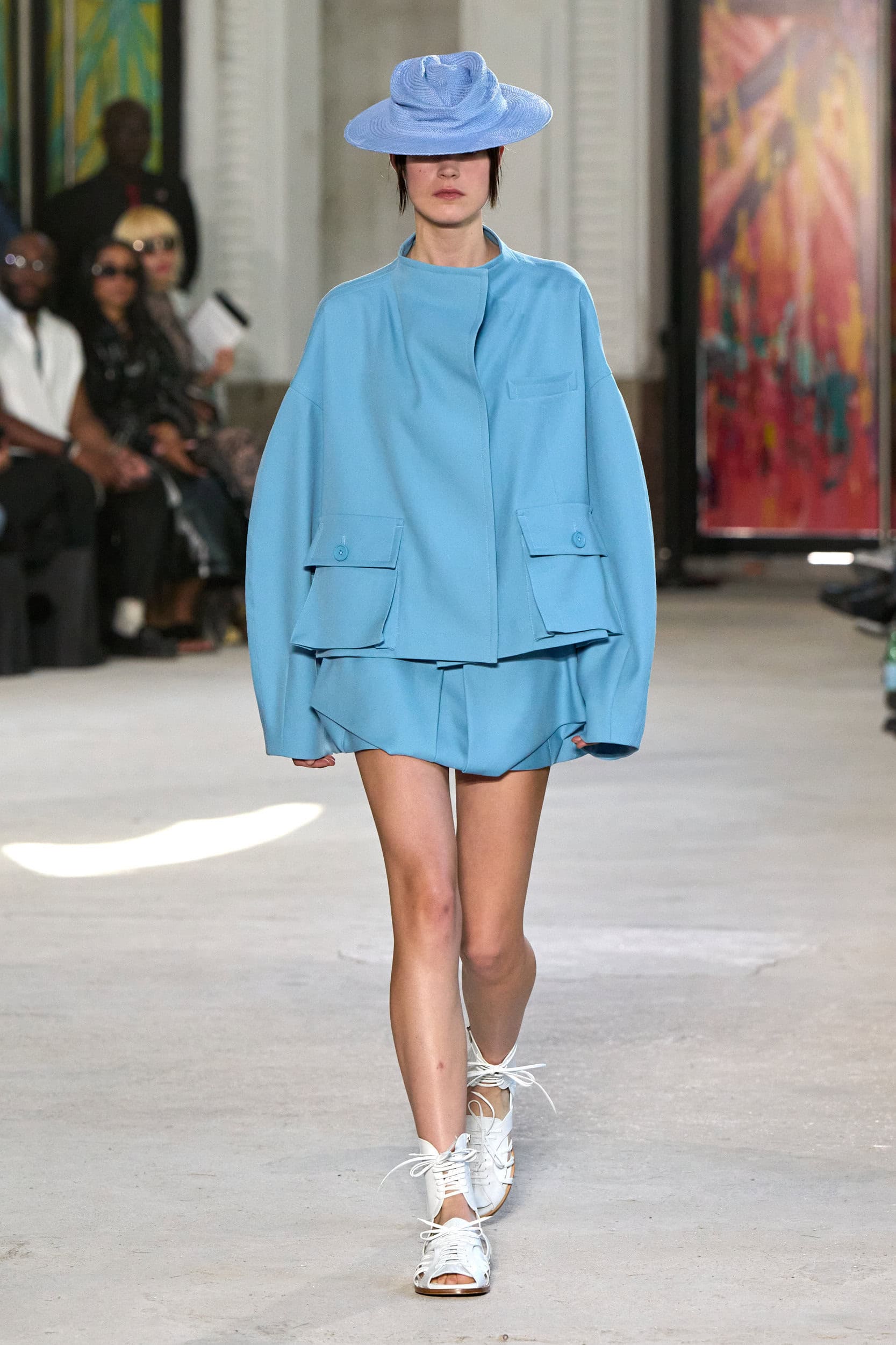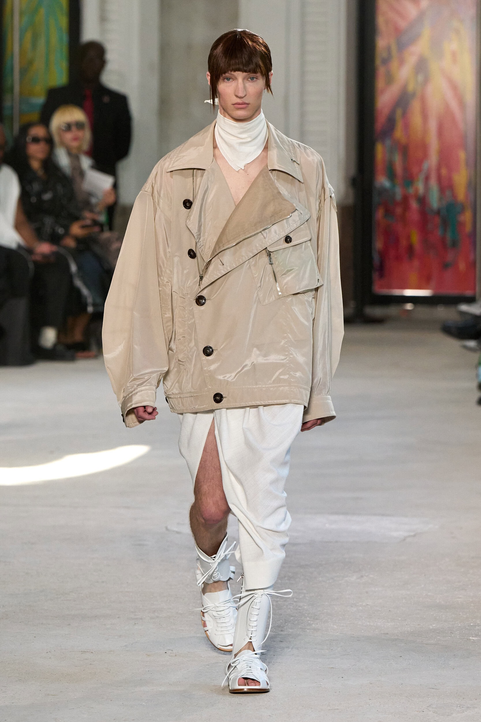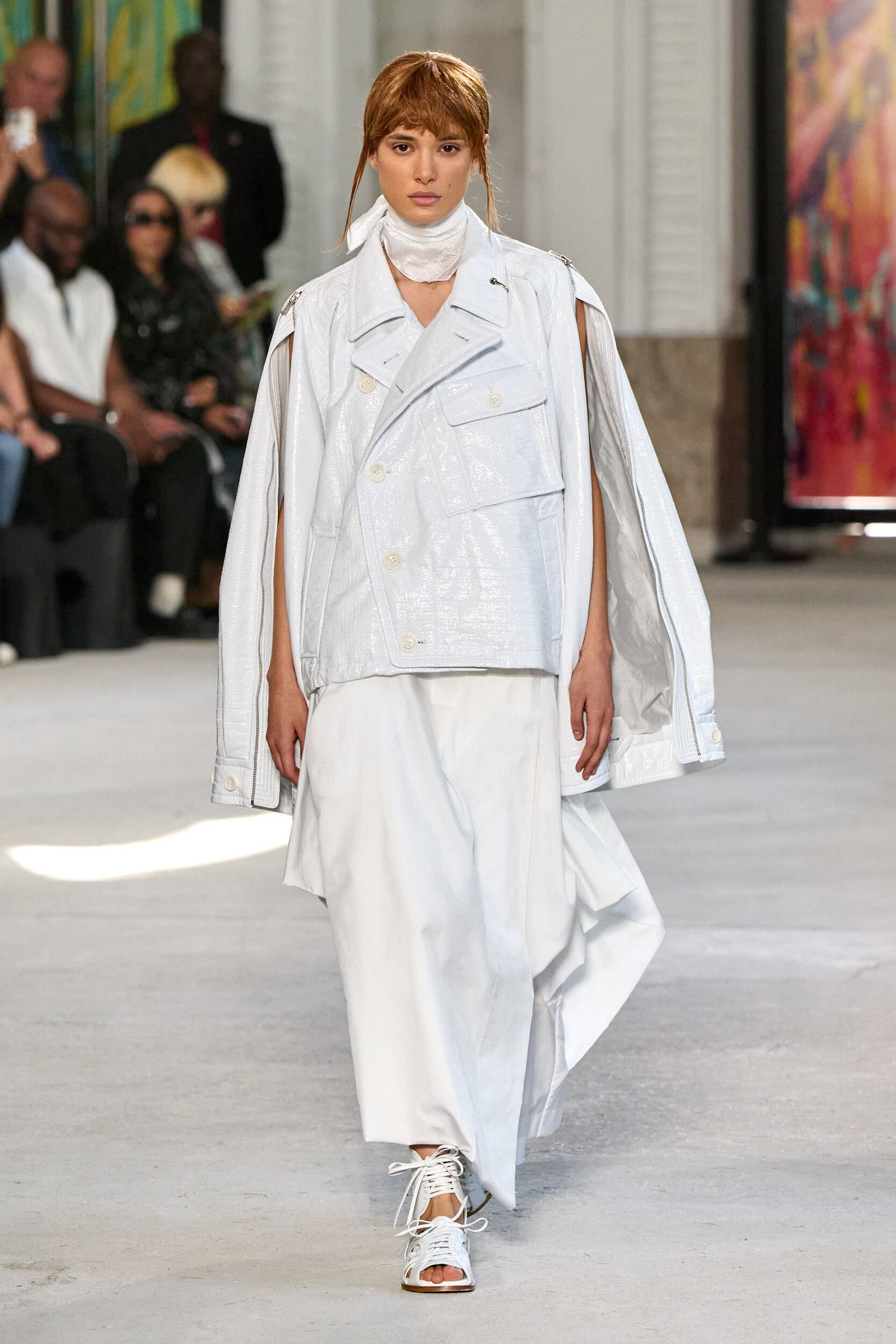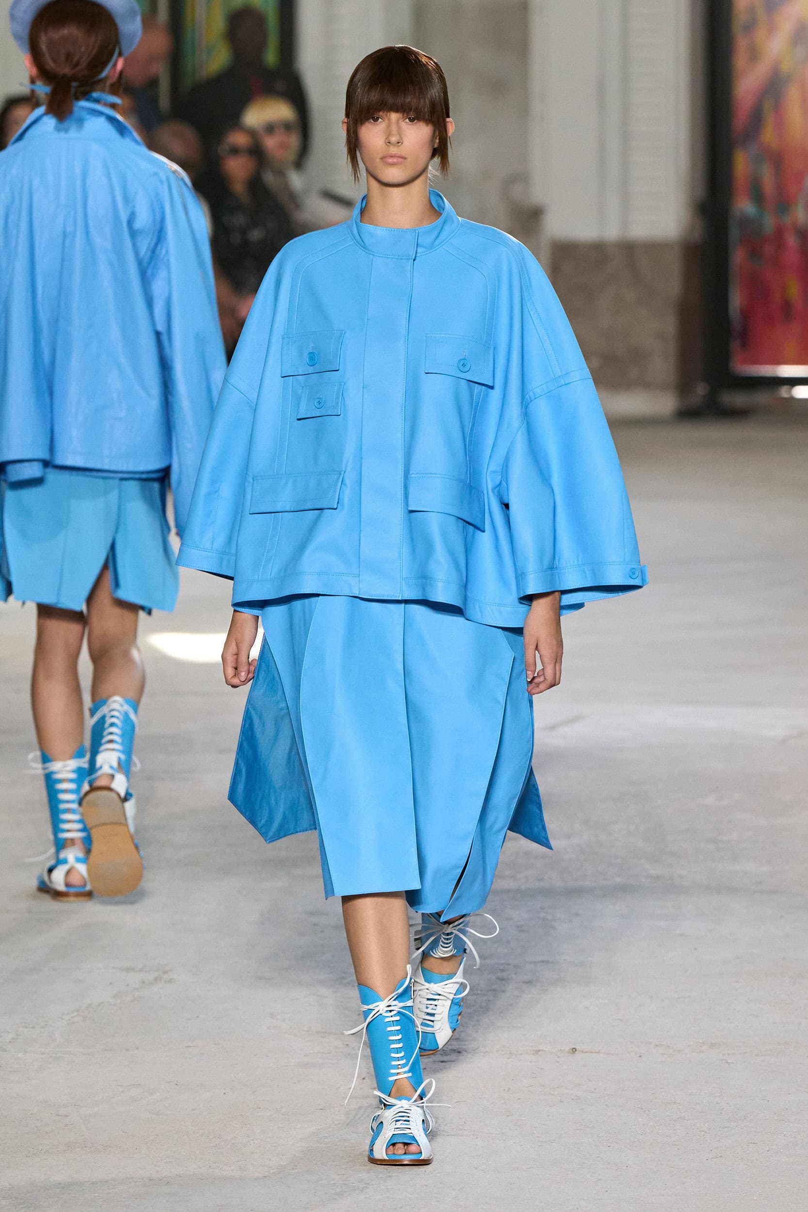 The runway showcased high-collar windbreakers, oversized blazers, workman’s jackets, blousons with asymmetrical necklines, and wide-cropped trousers or tailored shorts – blending East-meets-West influences that Song enjoys playing with. Cut from lightweight fabrics like silk, organza, or mesh, the pieces felt breezy and generous.