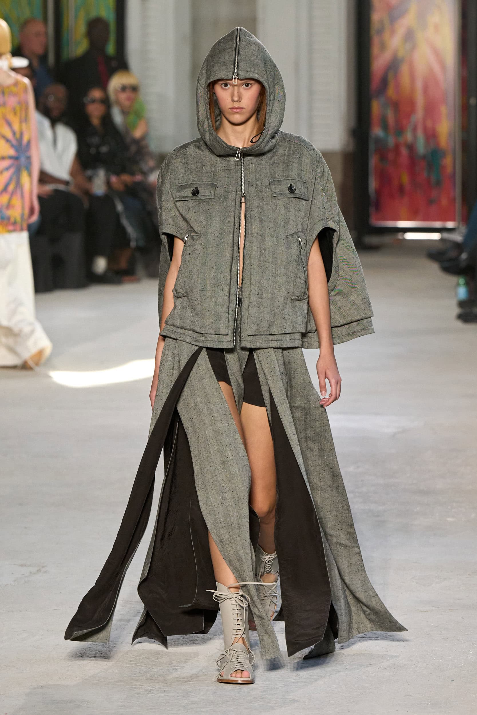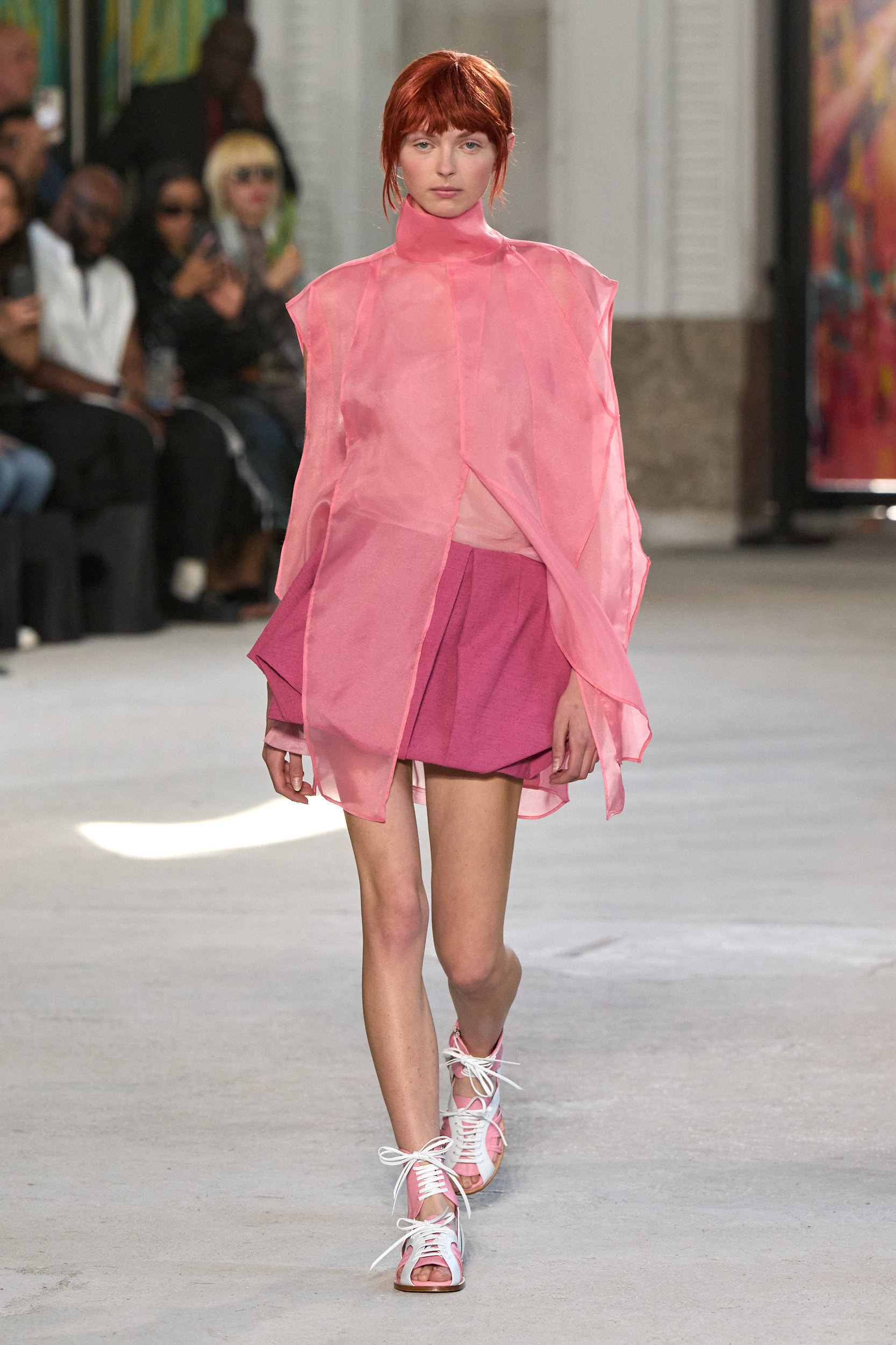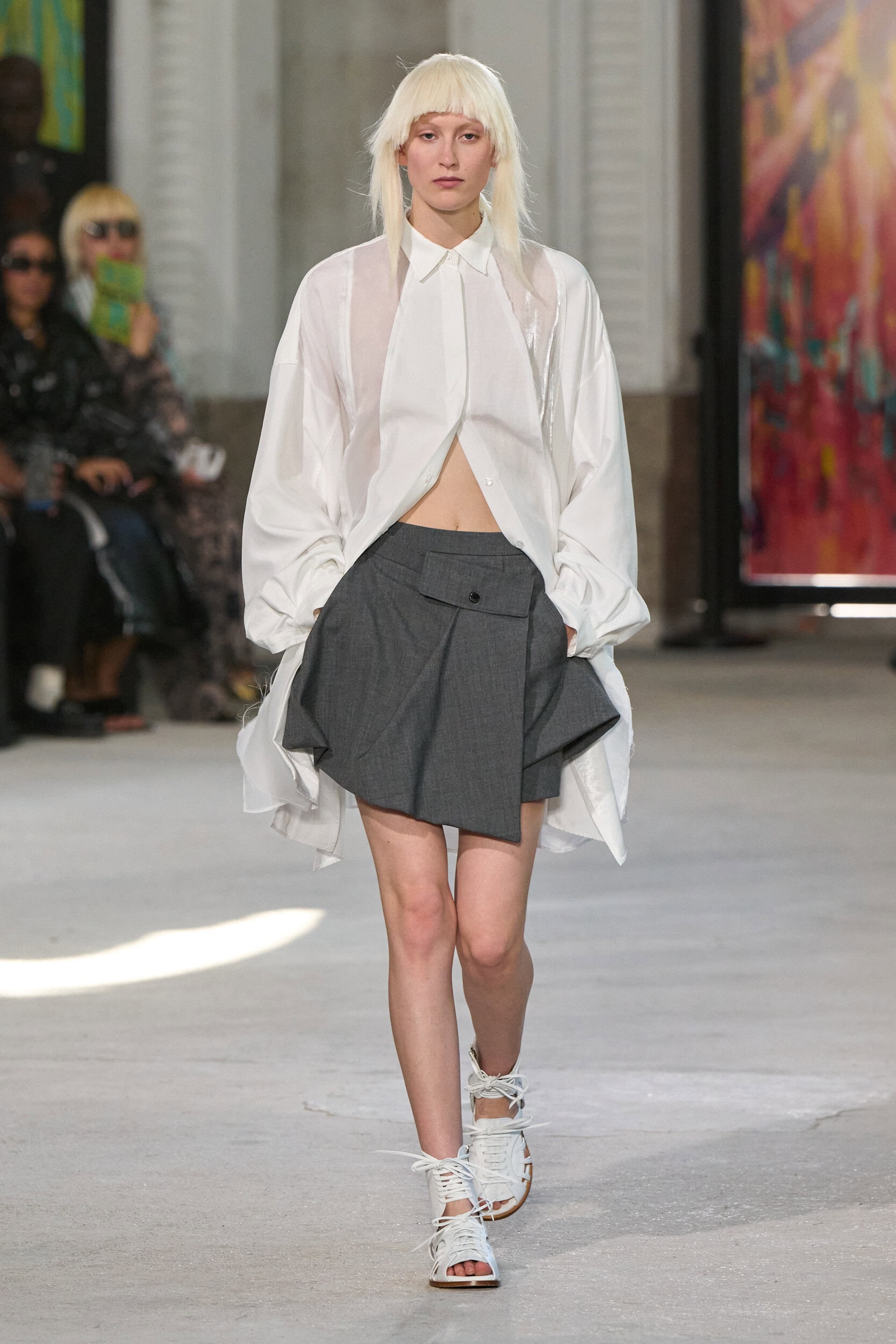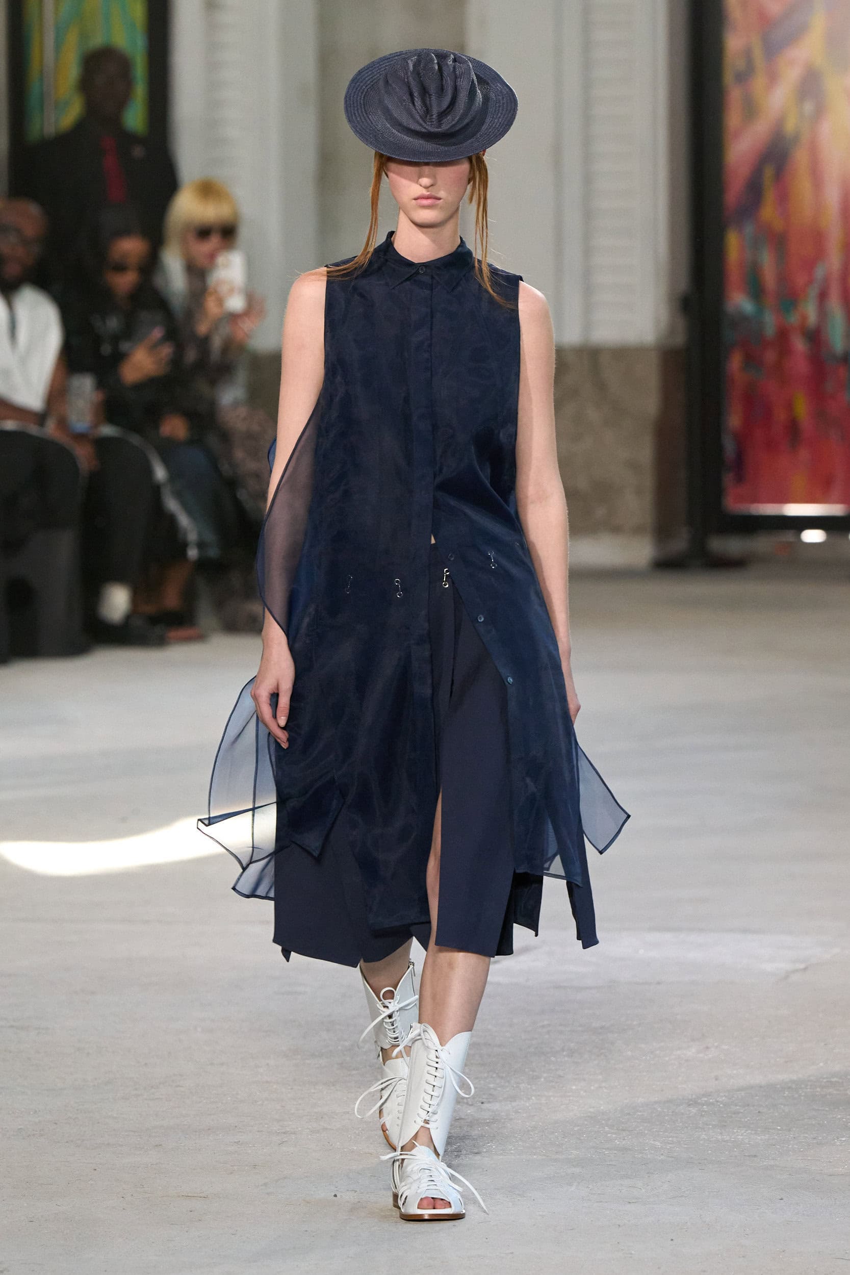 The runway showcased high-collar windbreakers, oversized blazers, workman’s jackets, blousons with asymmetrical necklines, and wide-cropped trousers or tailored shorts – blending East-meets-West influences that Song enjoys playing with. Cut from lightweight fabrics like silk, organza, or mesh, the pieces felt breezy and generous.
