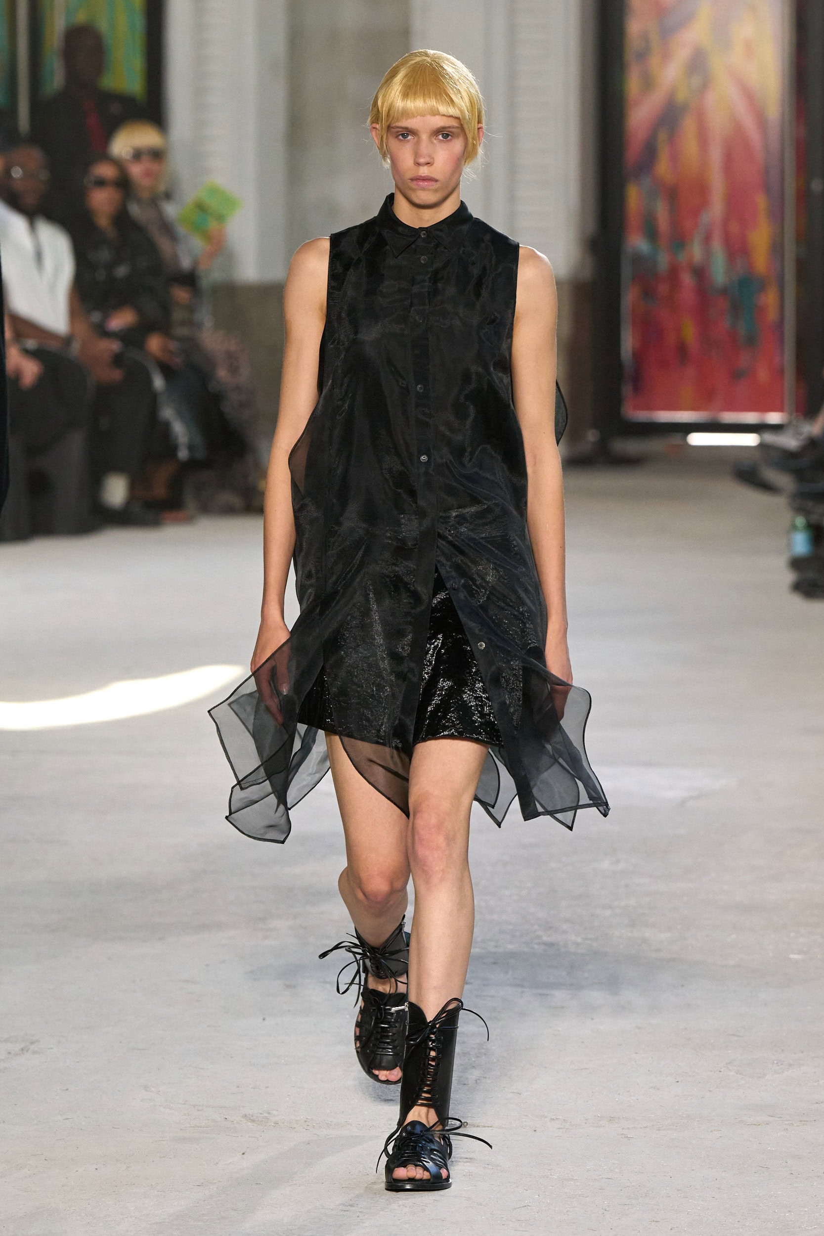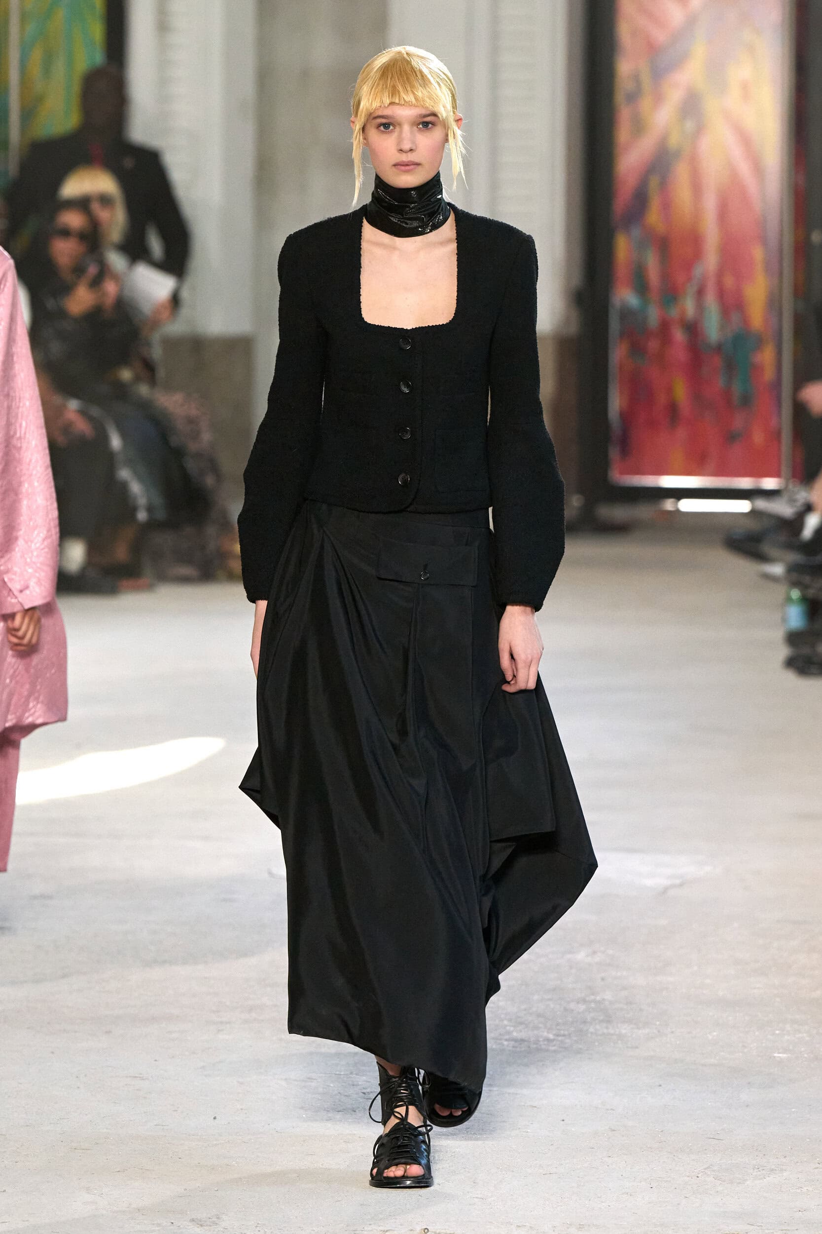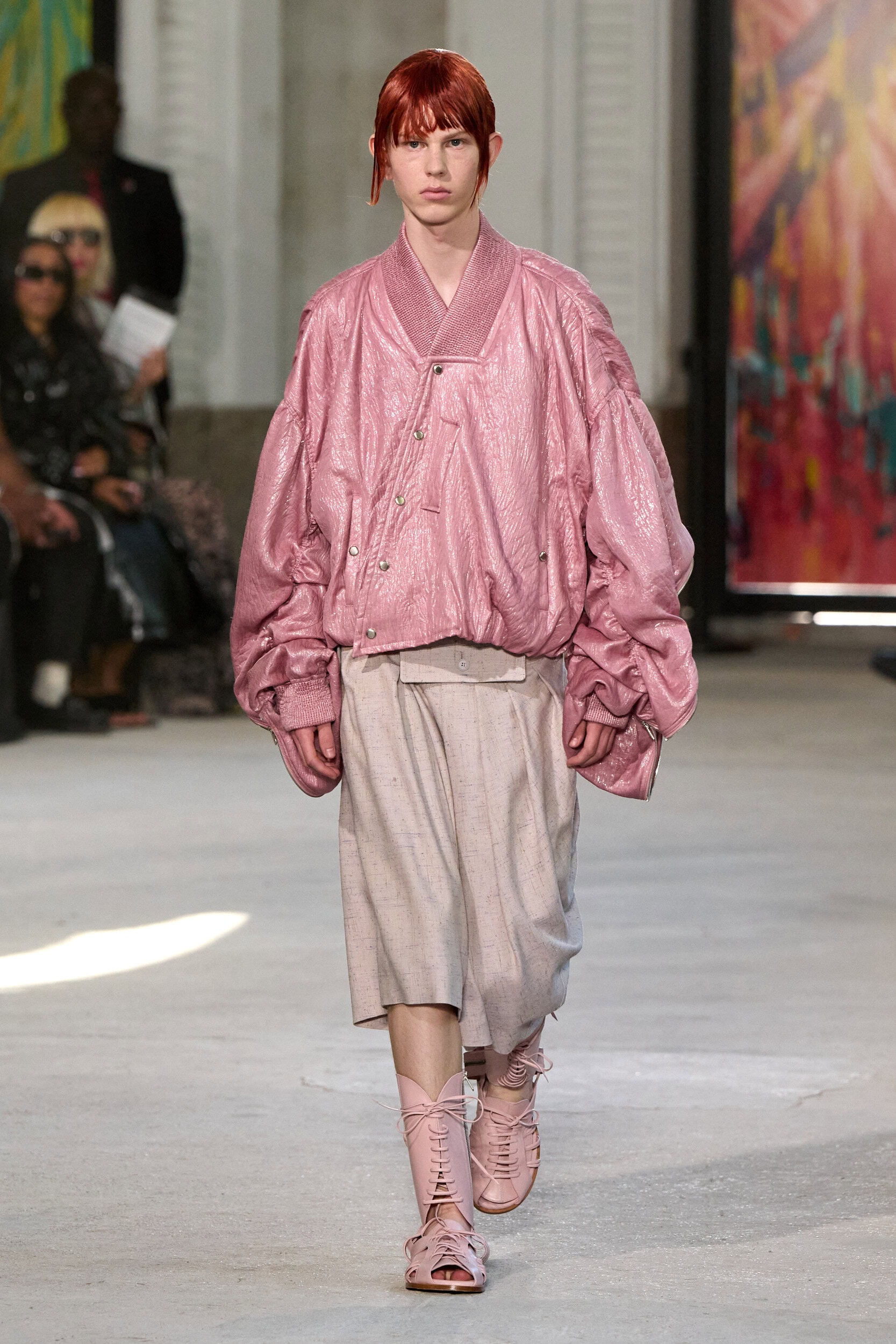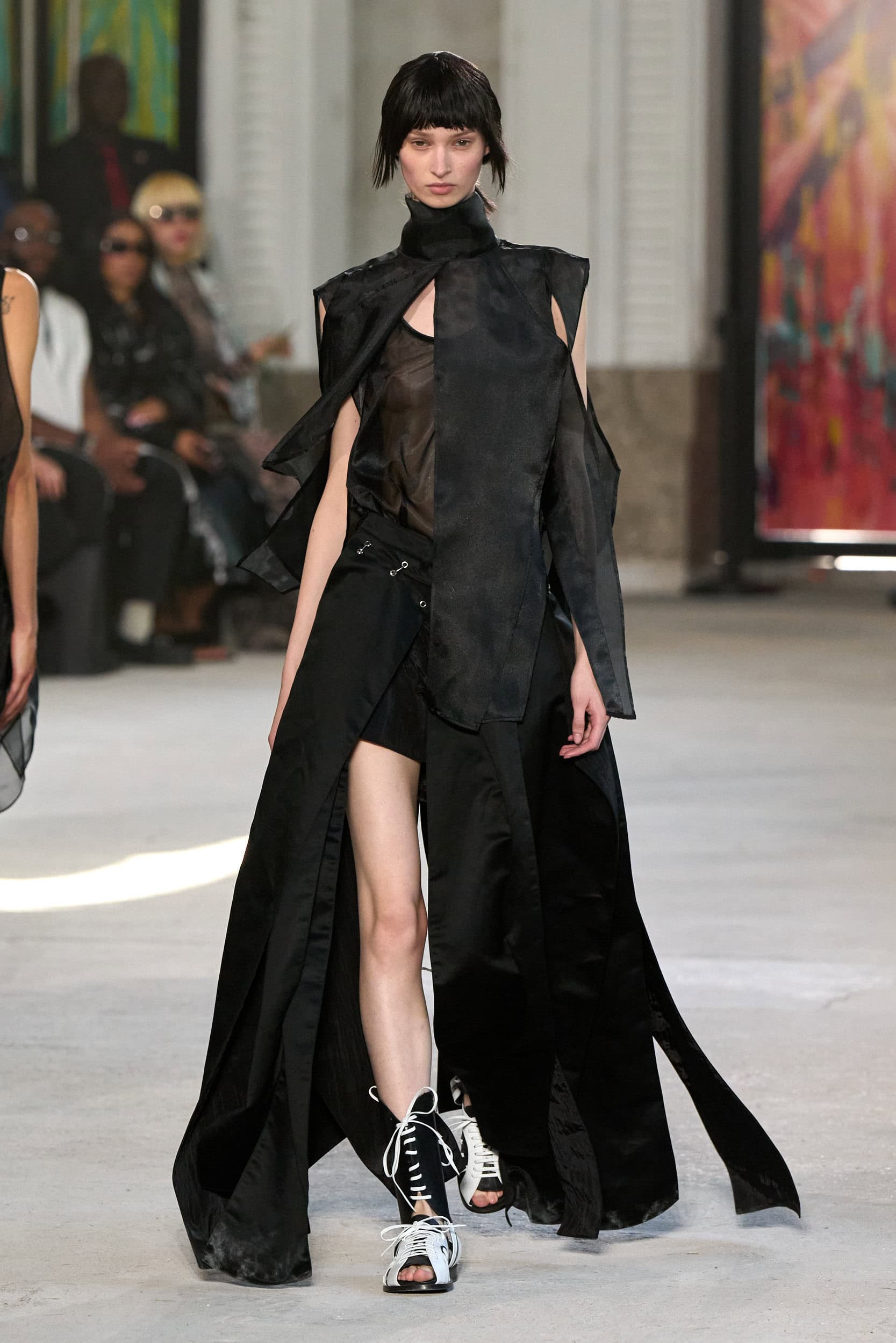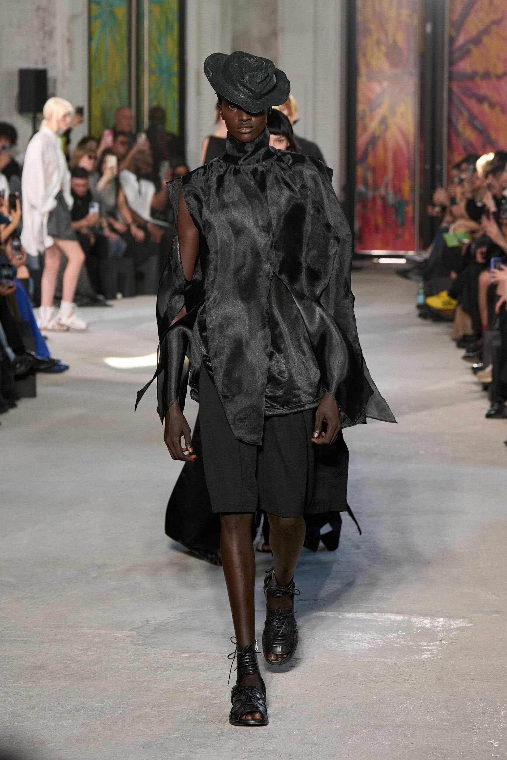 The runway showcased high-collar windbreakers, oversized blazers, workman’s jackets, blousons with asymmetrical necklines, and wide-cropped trousers or tailored shorts – blending East-meets-West influences that Song enjoys playing with. Cut from lightweight fabrics like silk, organza, or mesh, the pieces felt breezy and generous.