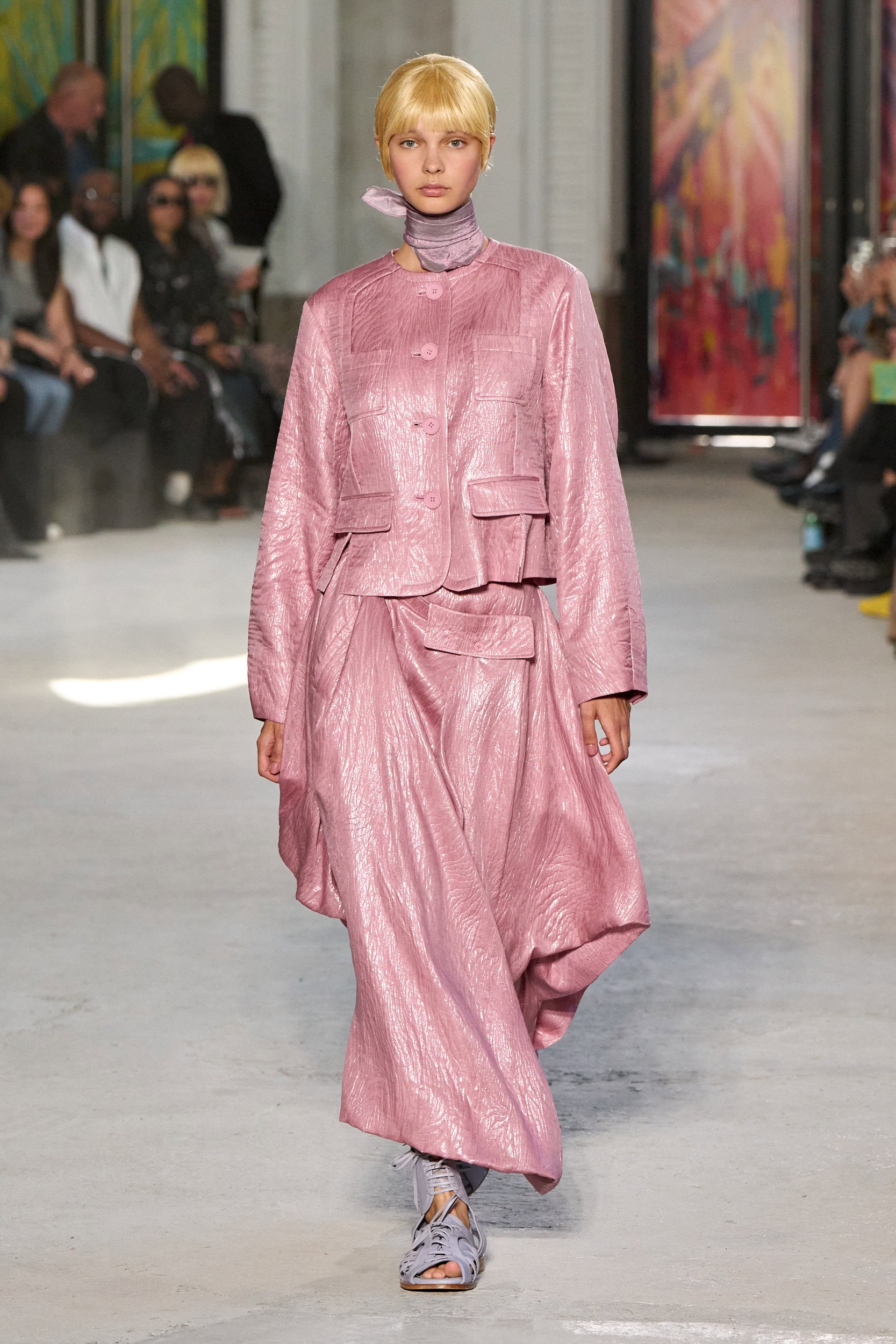 Songzio creative director Jay Song is known for starting each season by creating works that embody his inspiration through oil paintings, perfectly complementing the brand’s dramatic tailoring and volumes. However, this season took a different turn with tomboyish silhouettes inspired by his experimentation with a new medium.