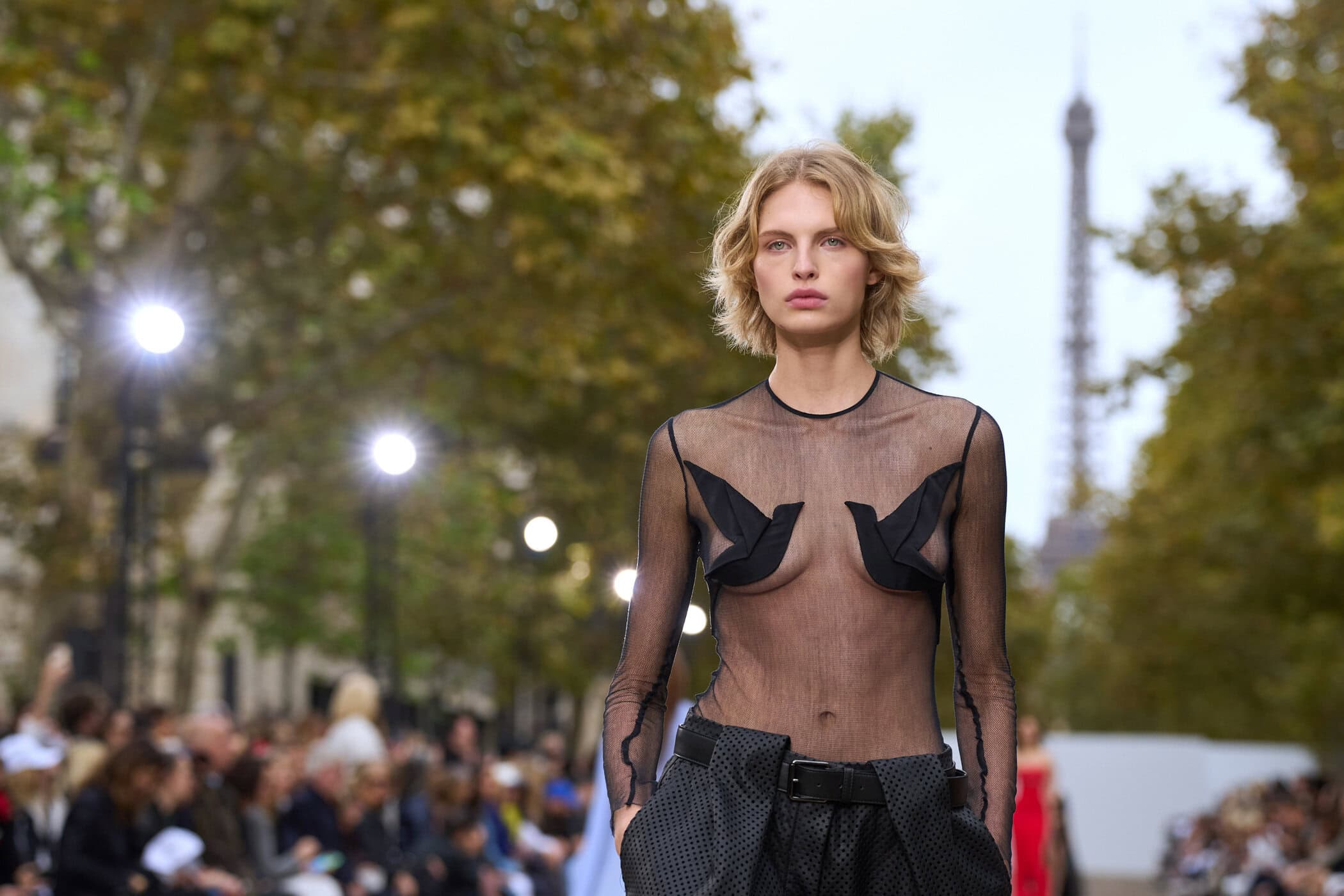 Discover the immersive atmosphere and striking staging of Stella McCartney‘s Spring 2025 fashion show at Paris Fashion Week, creating an unforgettable mood this season.