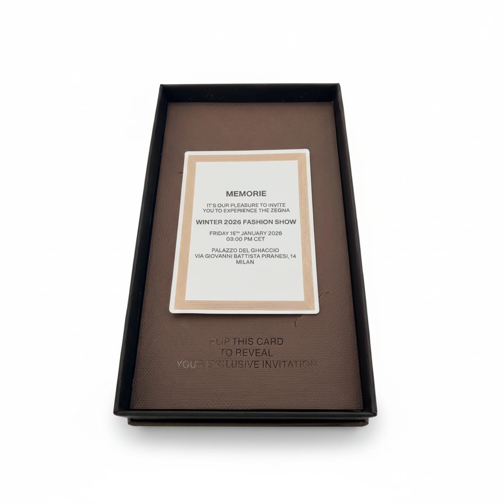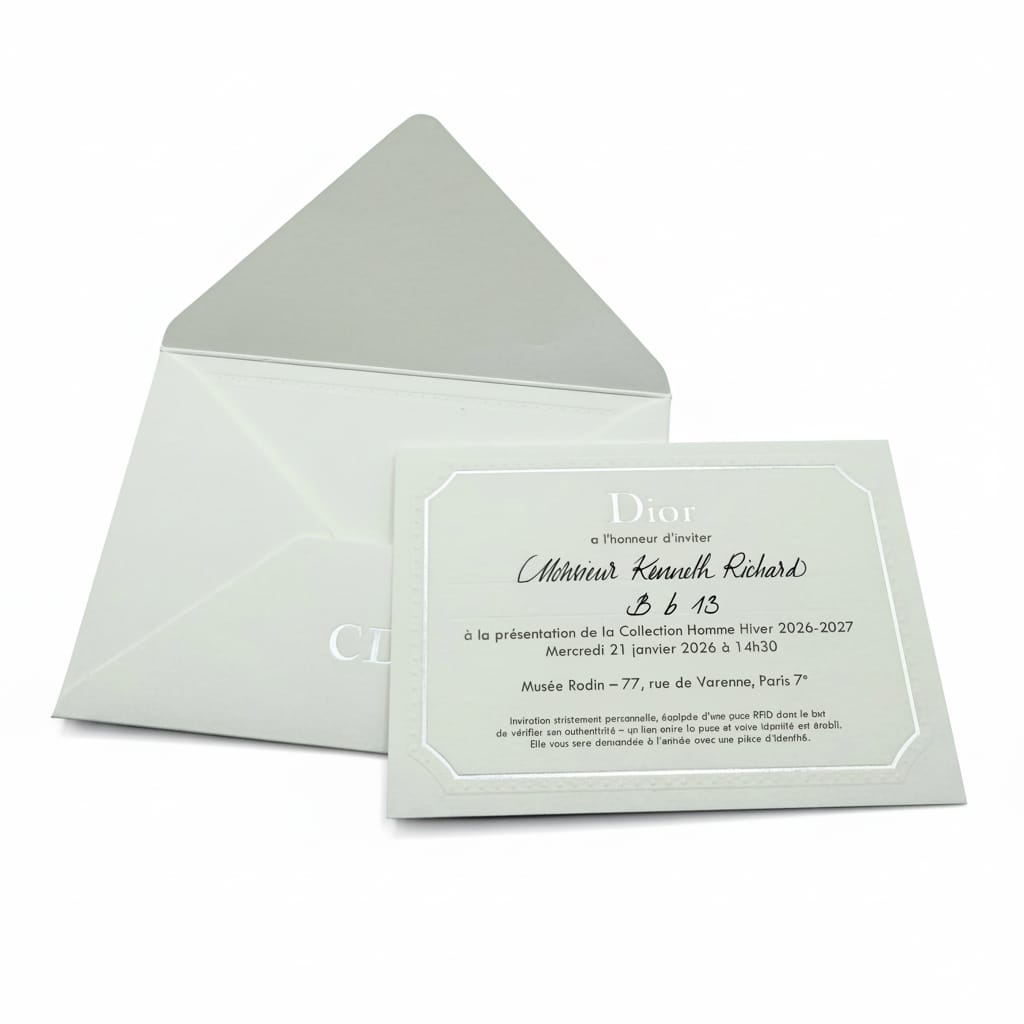 In a digital age flooded with ephemeral alerts and email confirmations, these invitations served as rare reminders that objects still hold weight—that meaning can be embedded in materials, and that the first note of a collection is often struck long before the show begins.
