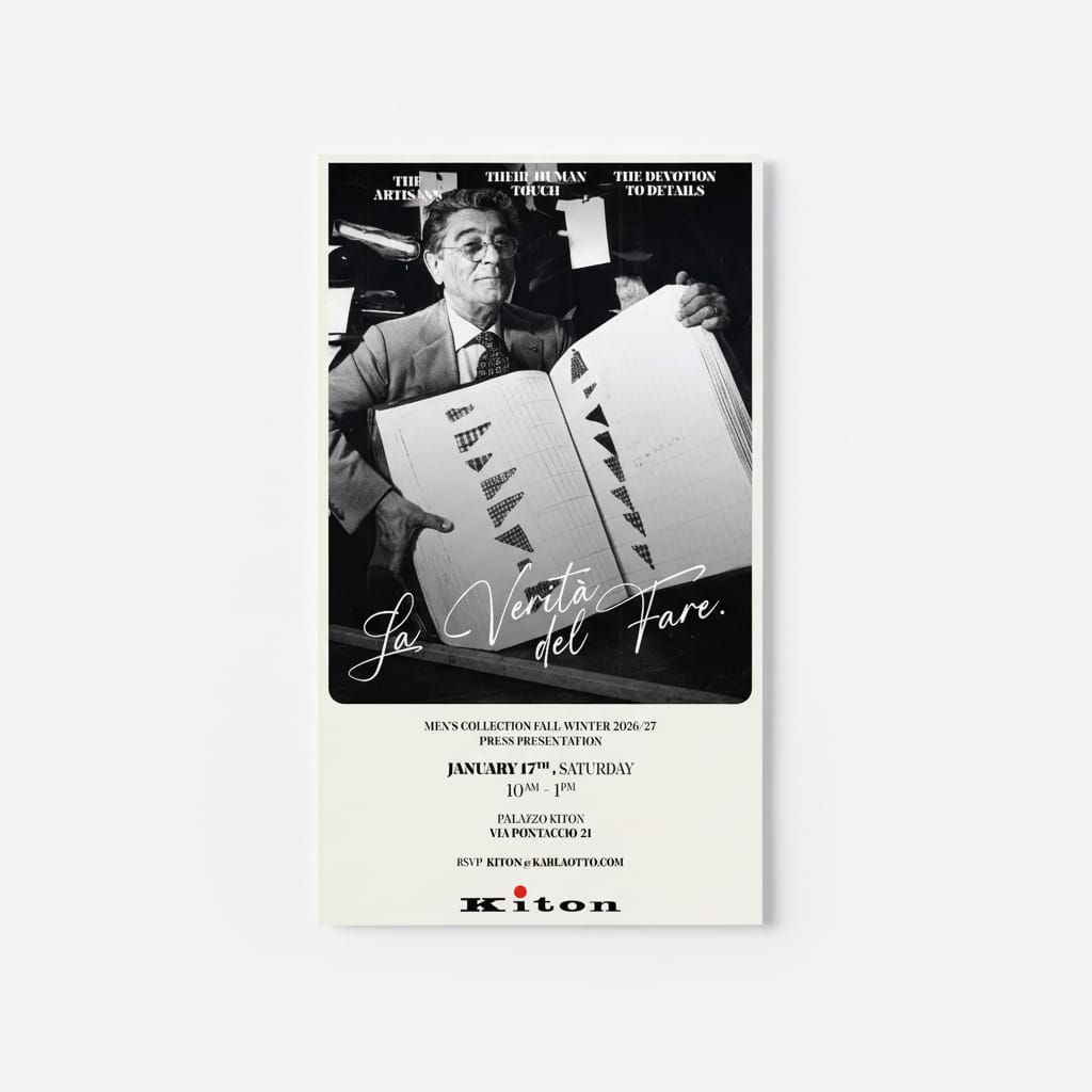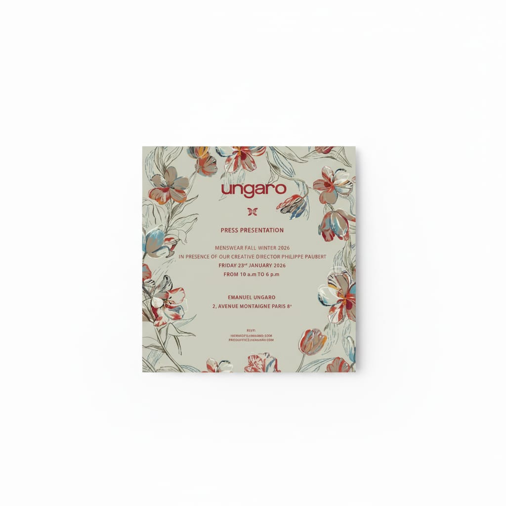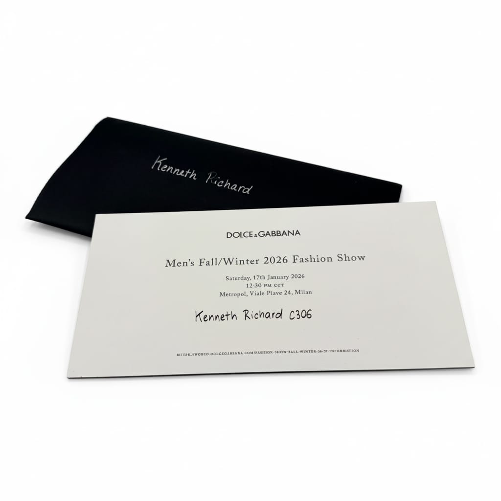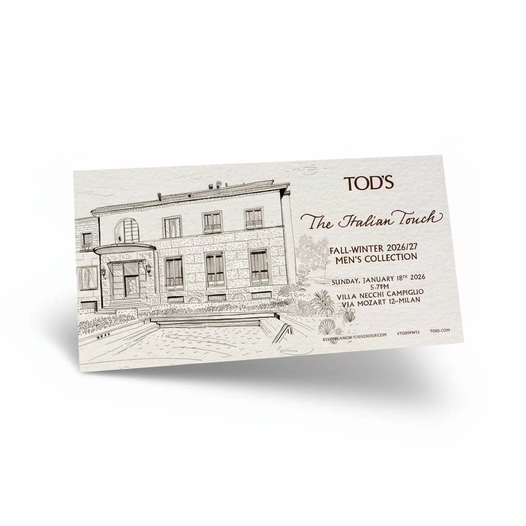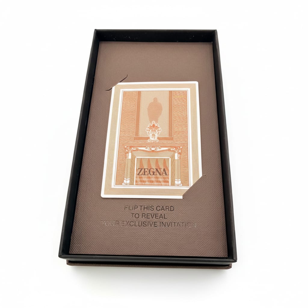 Zegna, under Alessandro Sartori, leaned into quiet lyricism. Their invitation, designed with natural textures and understated weight, felt personal—almost handwritten. Sartori has built Zegna’s modern identity around softness and intention, and this invitation extended that philosophy with humility and grace. It wasn’t showy, but it left an impression, just like the clothes.