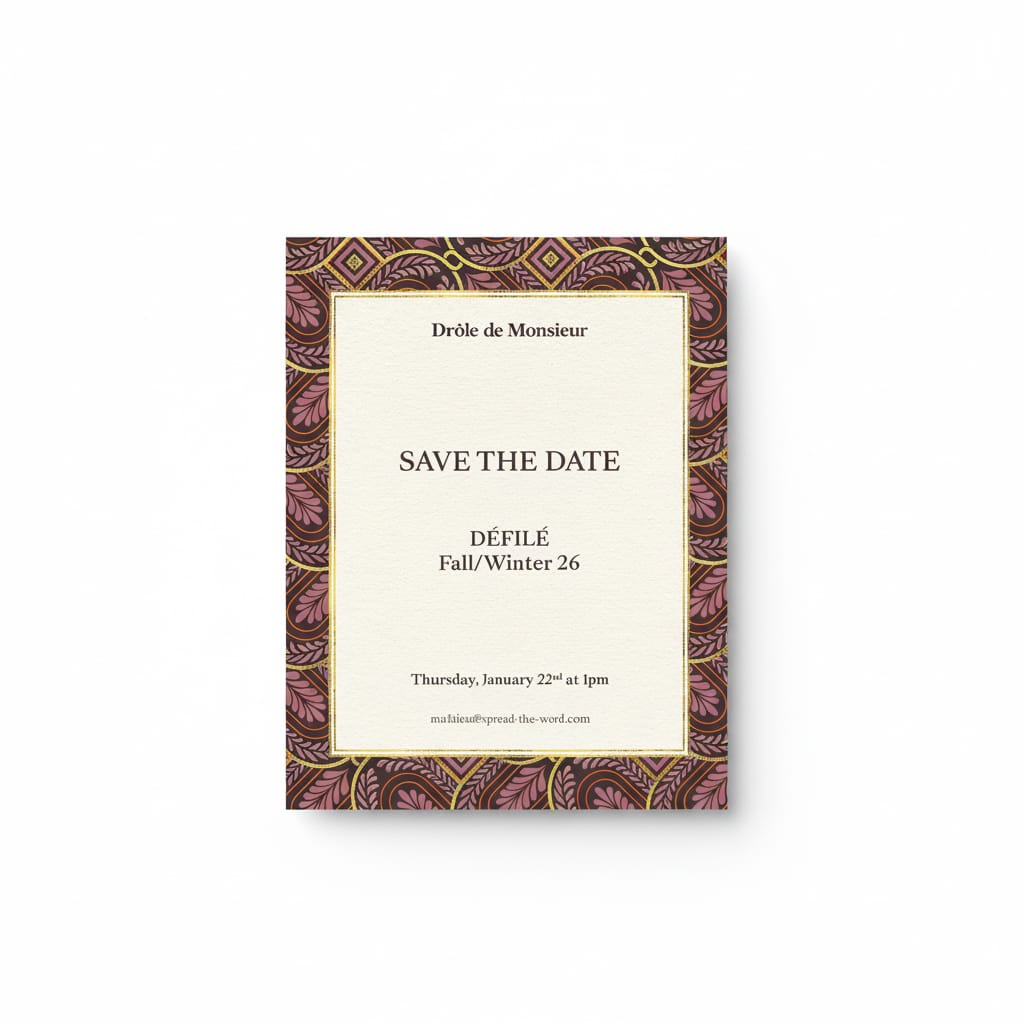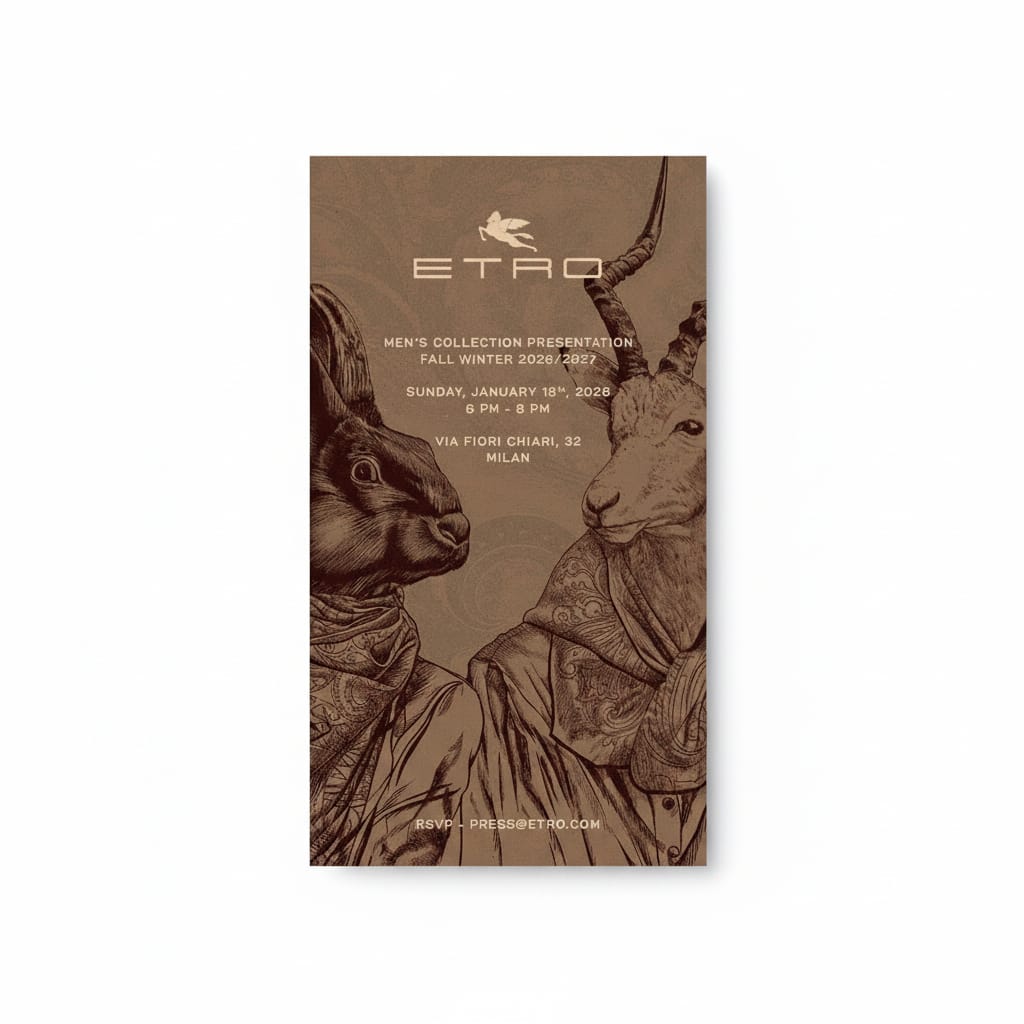 Below, we take a closer look at the season’s full range of men’s invitations—their textures, typography, and the rich storytelling behind each one.
