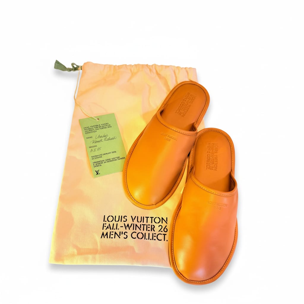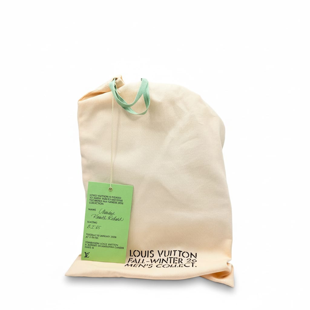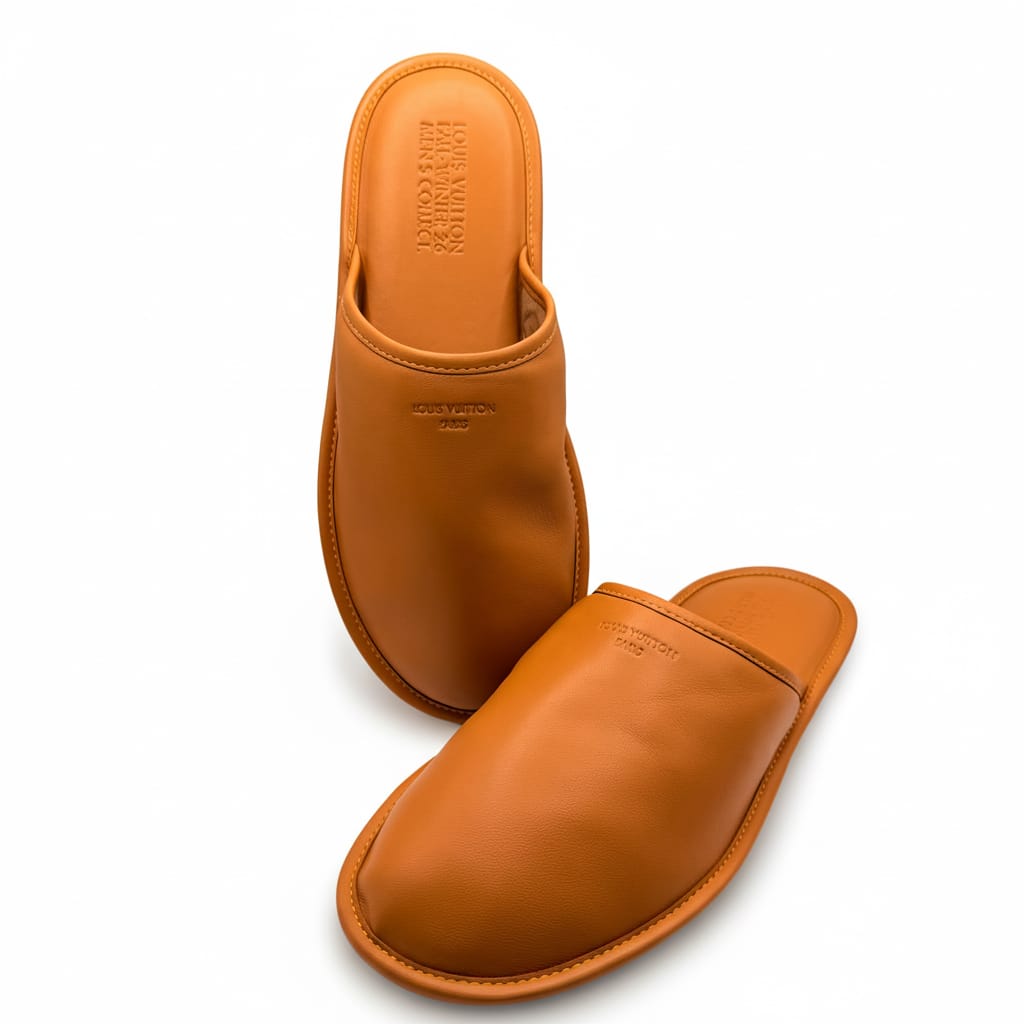 Louis Vuitton, under Pharrell Williams, extended its exploration of luxury lifestyle with a different kind of elegance. Attendees received leather slippers—embossed, not monogrammed. The choice spoke volumes: less about branding, more about comfort, indulgence, and intimacy. Like much of Pharrell’s direction for the house, the invite walked the line between quiet opulence and pop reverence.