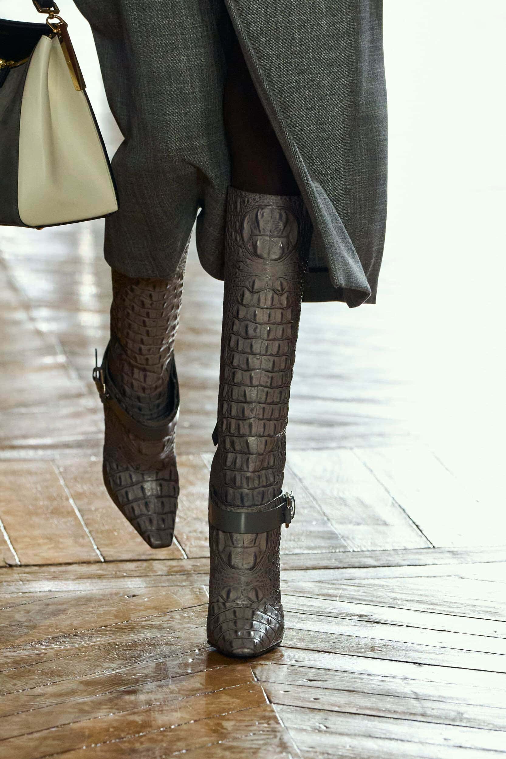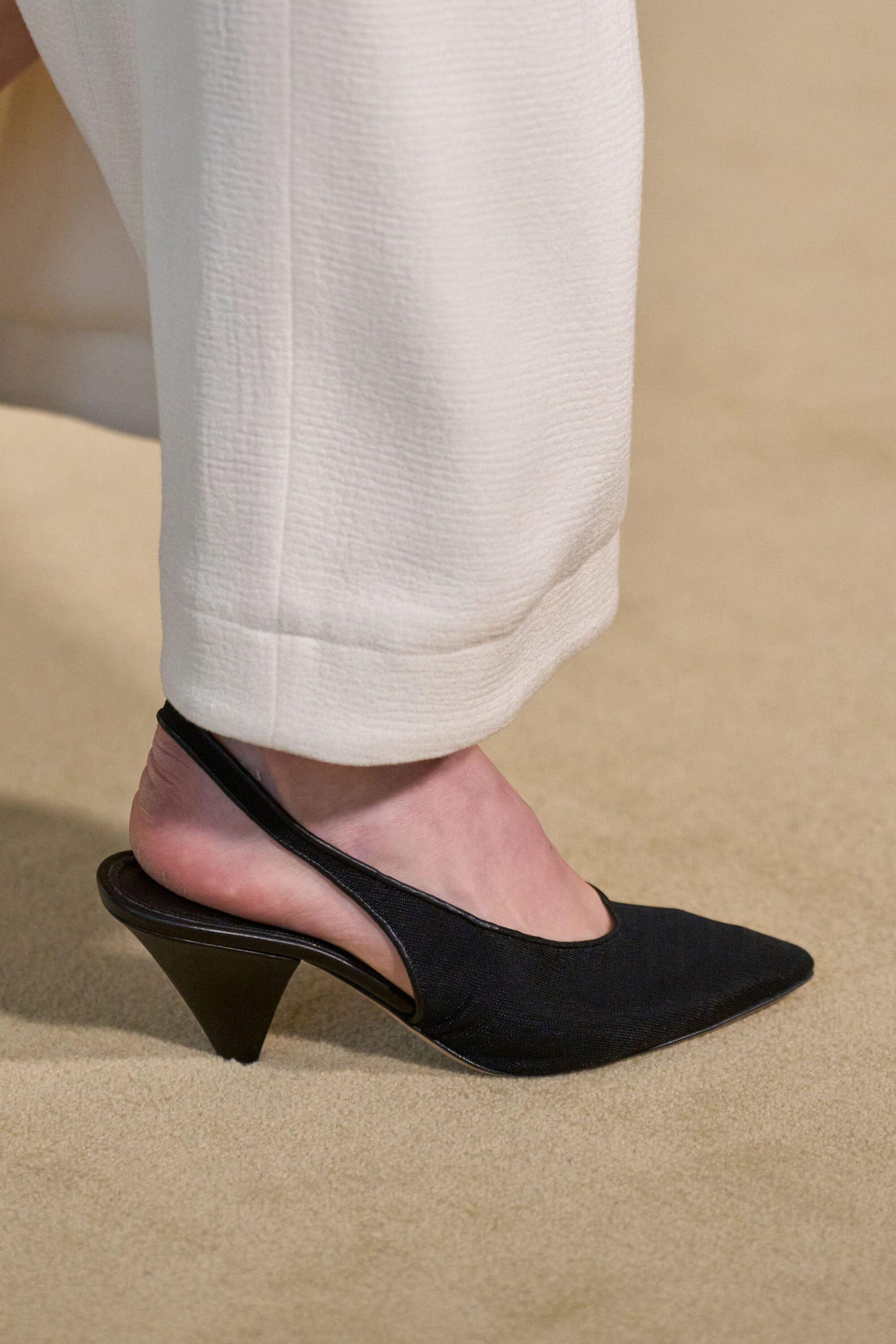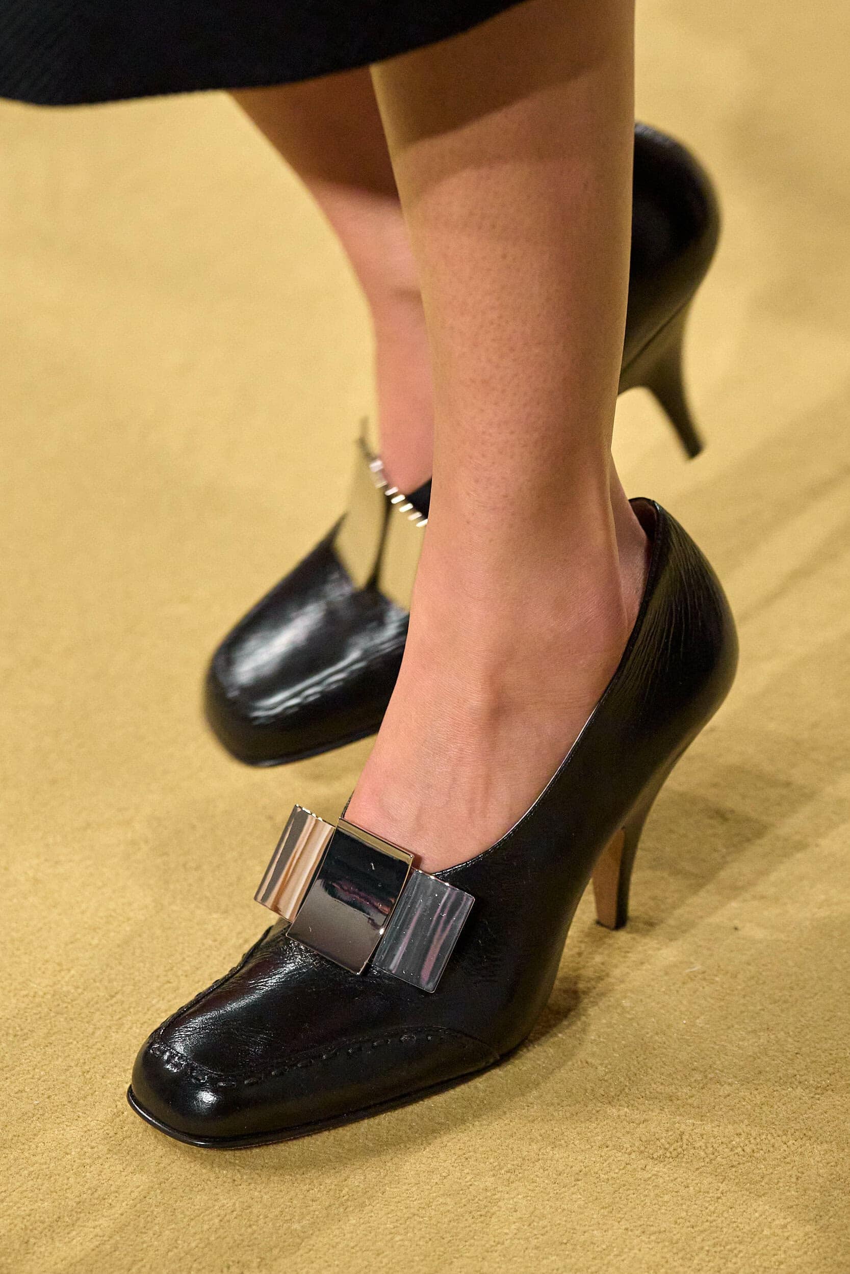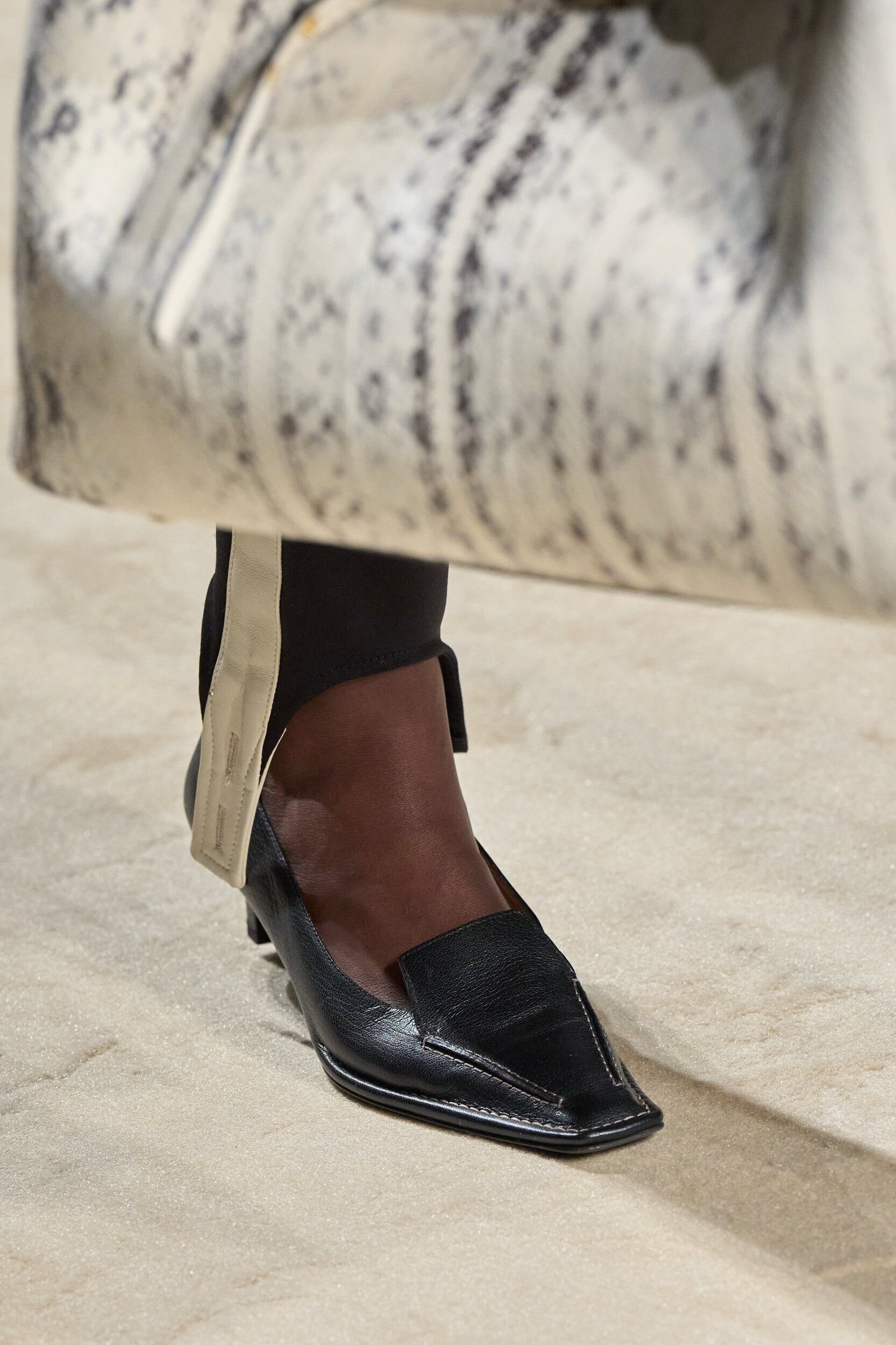 Footwear this season moved with intention. Designers explored the tension between form and function, delivering shoes that felt both directional and wearable. Sculptural heels, elongated lines, and grounded flats offered a renewed sense of practicality without sacrificing allure—proving that even the smallest details can carry the weight of a collection’s point of view.
