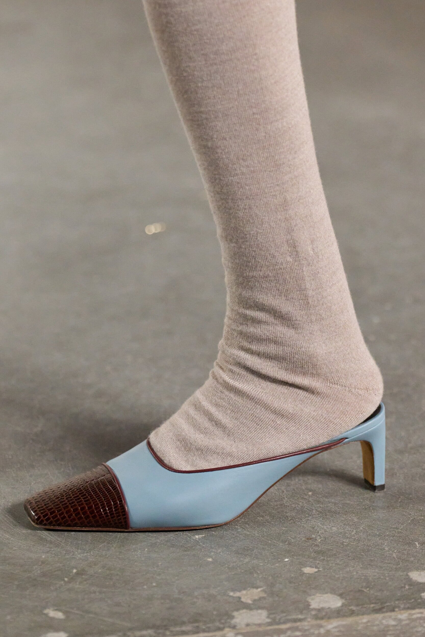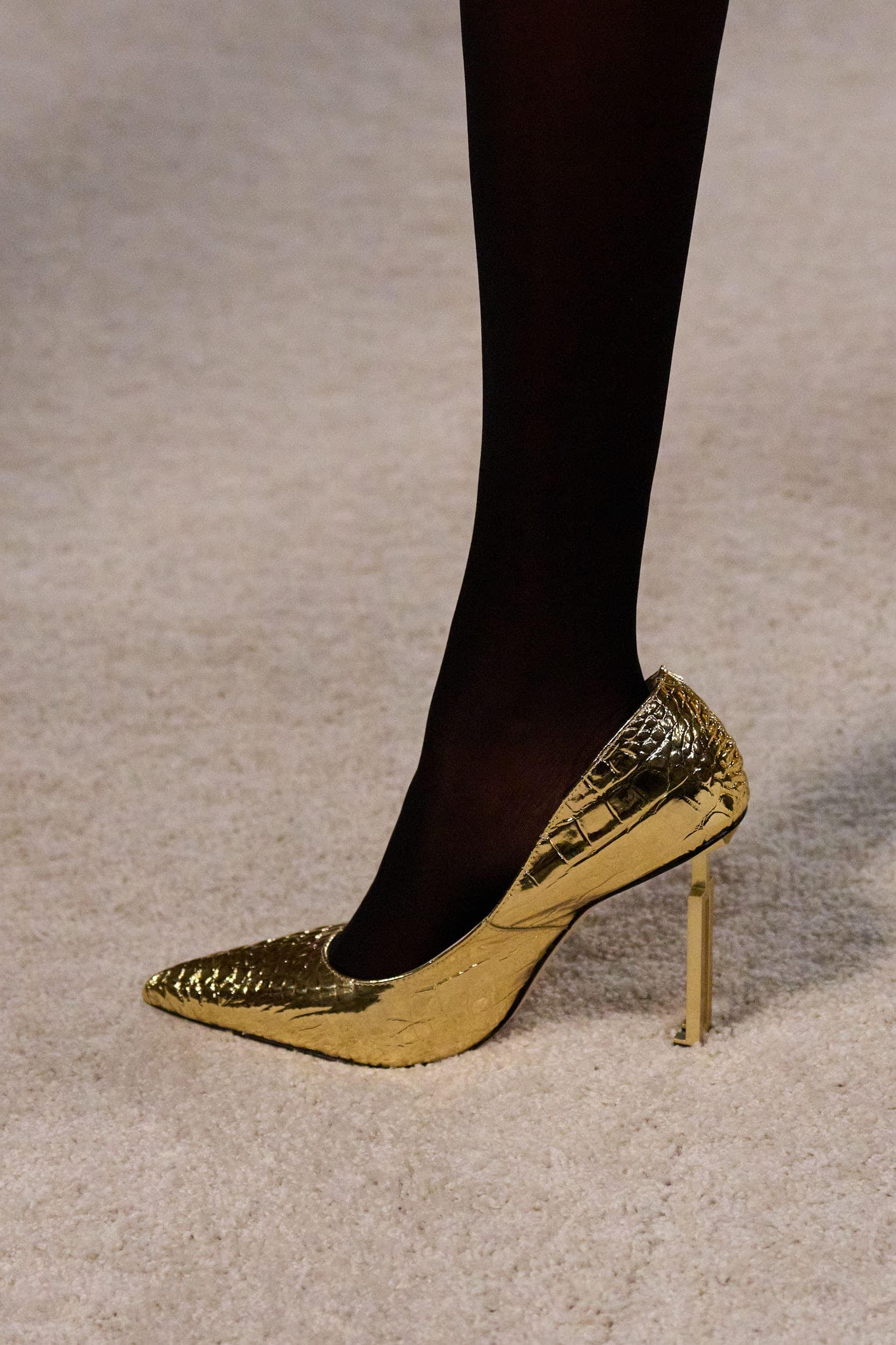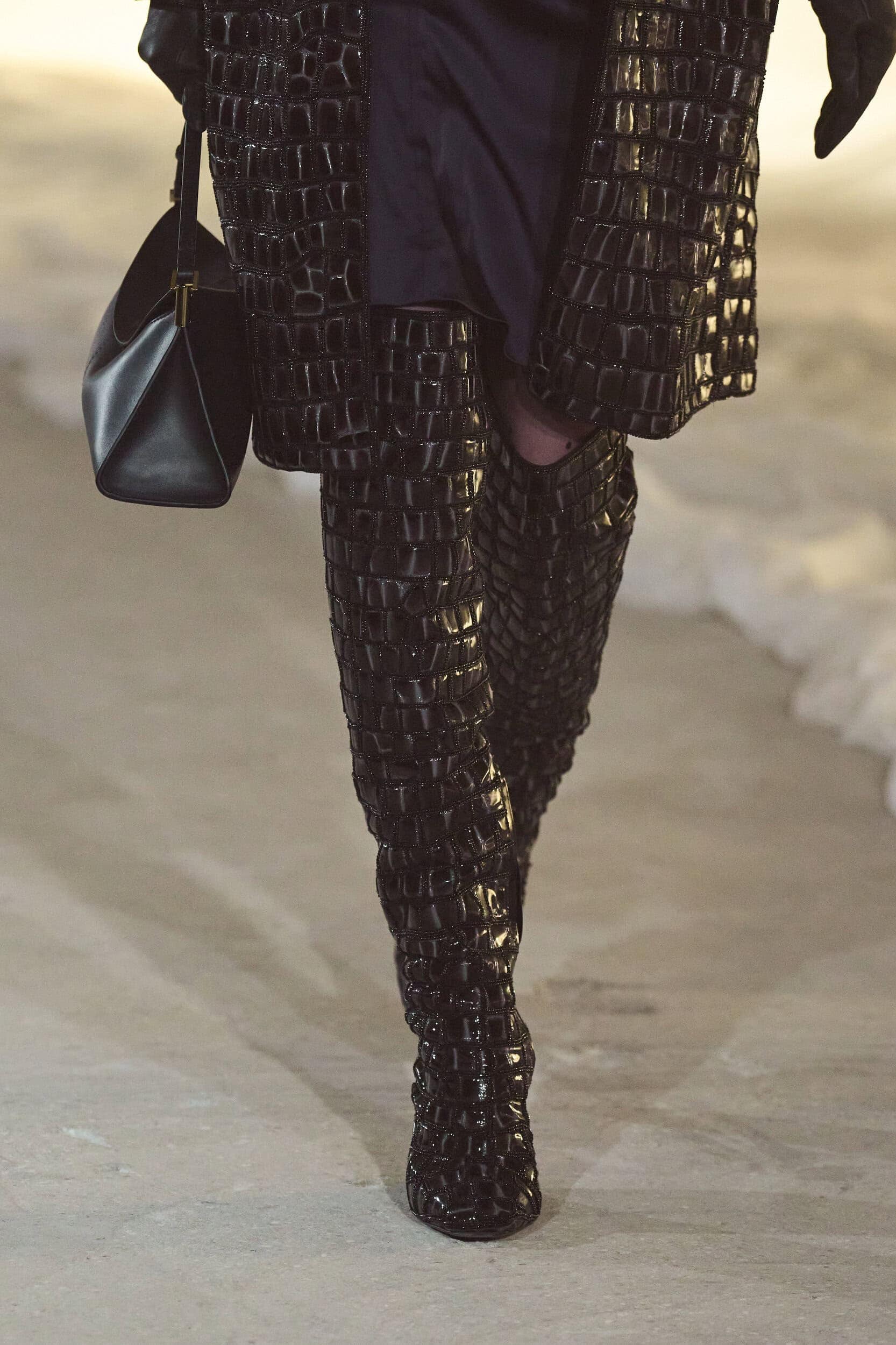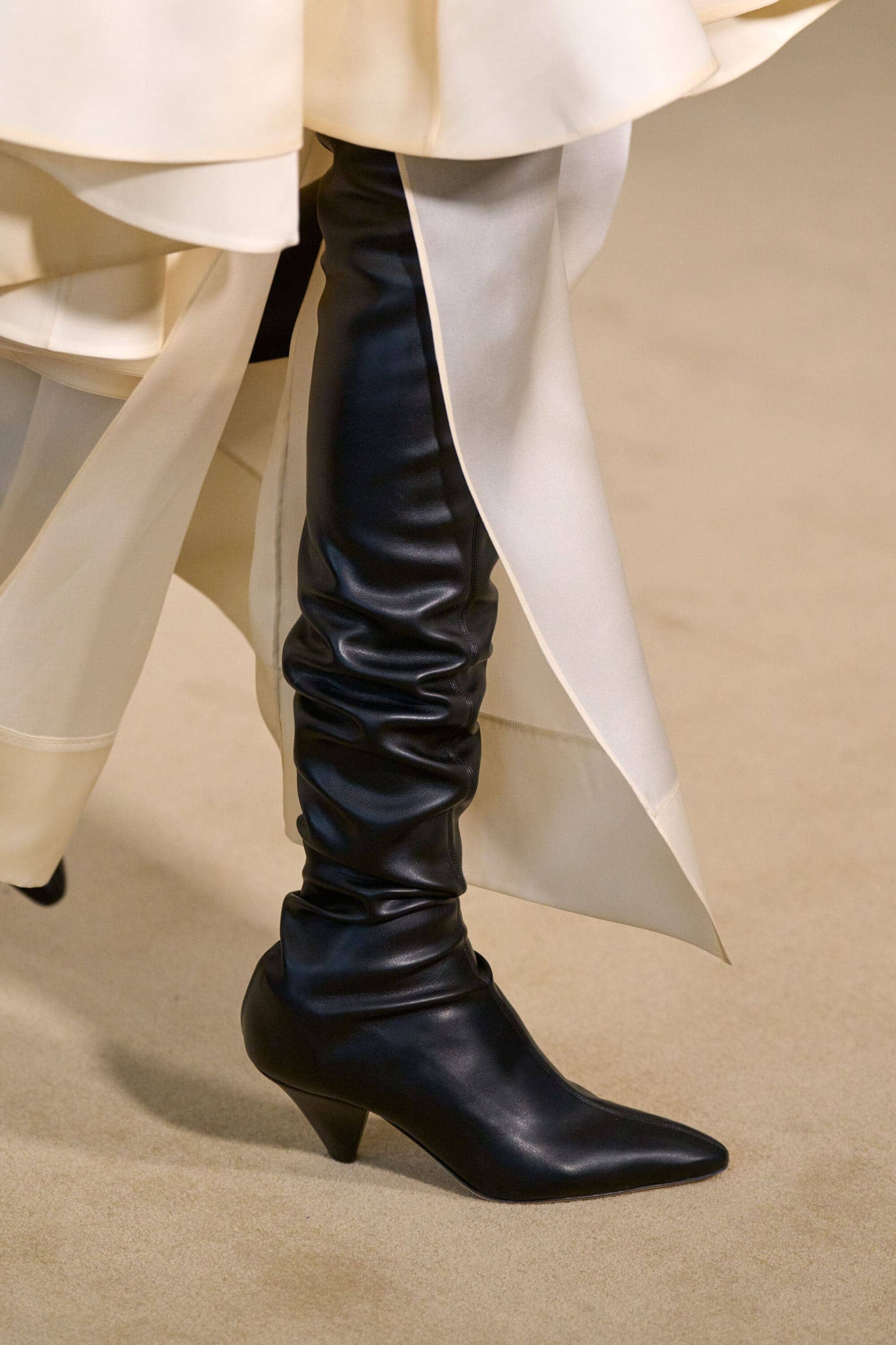 Footwear this season moved with intention. Designers explored the tension between form and function, delivering shoes that felt both directional and wearable. Sculptural heels, elongated lines, and grounded flats offered a renewed sense of practicality without sacrificing allure—proving that even the smallest details can carry the weight of a collection’s point of view.