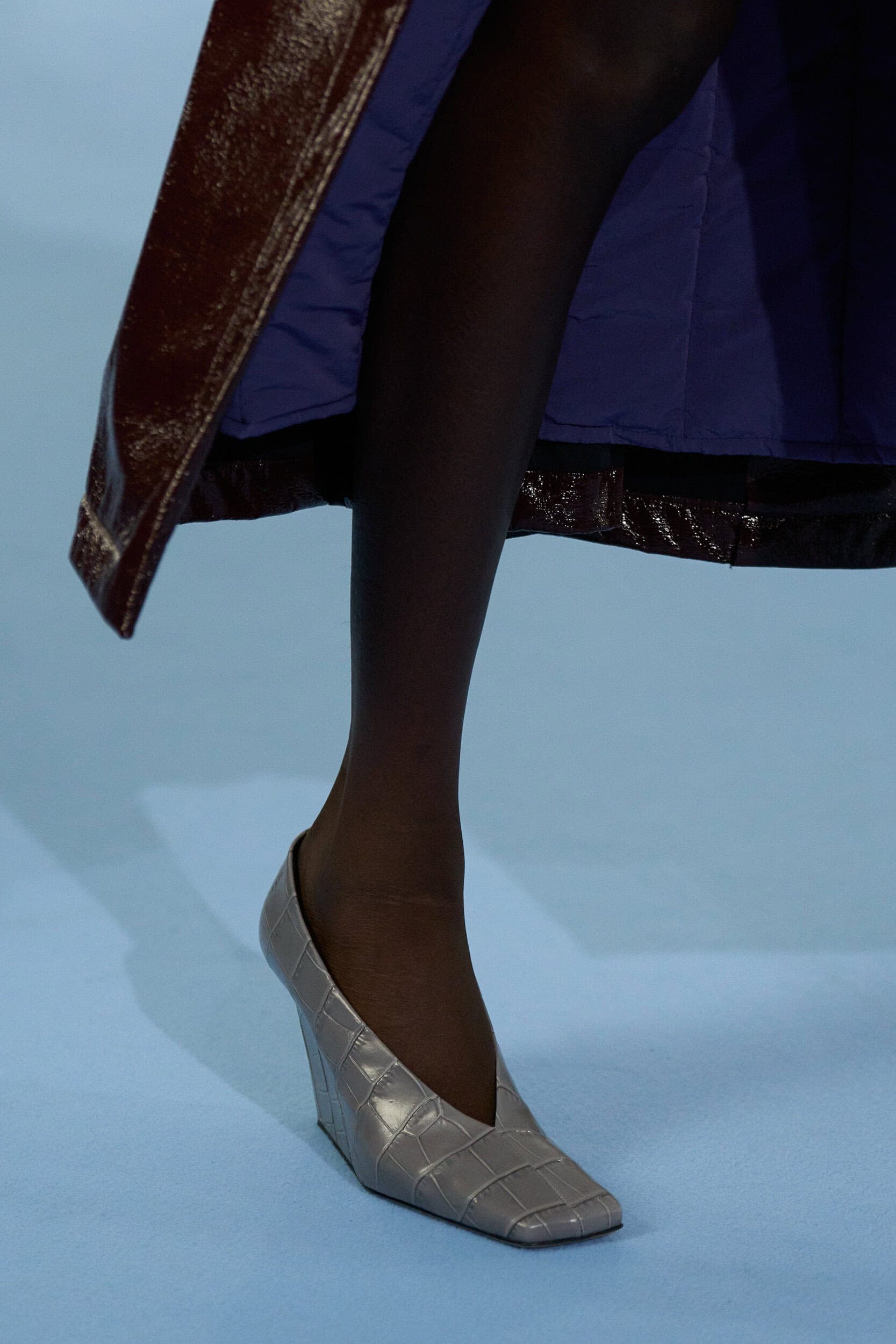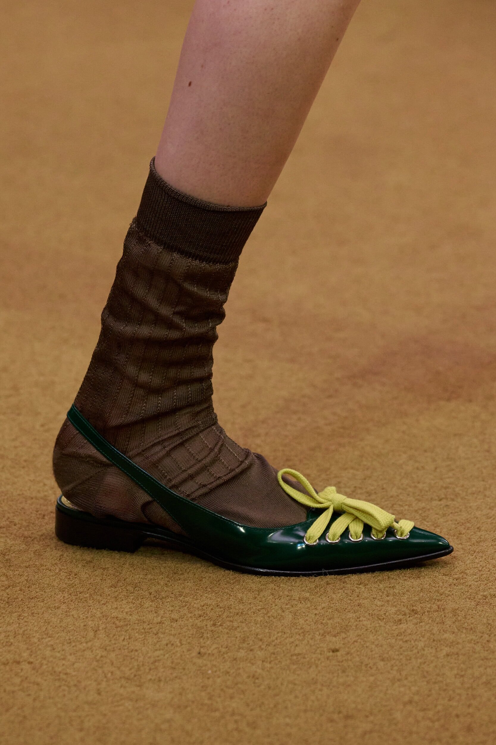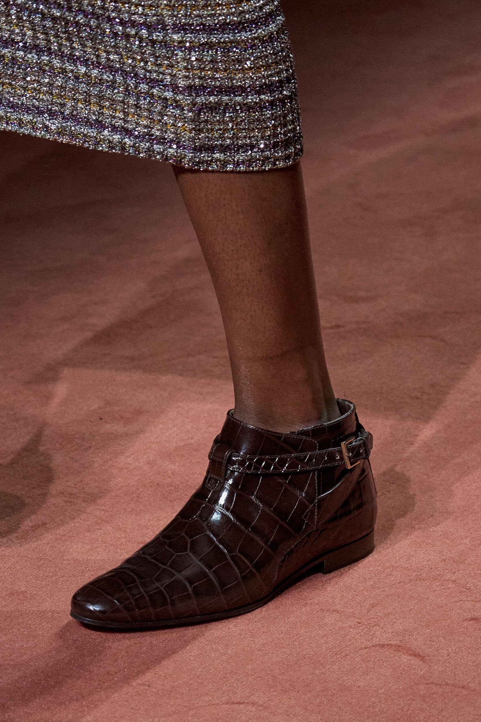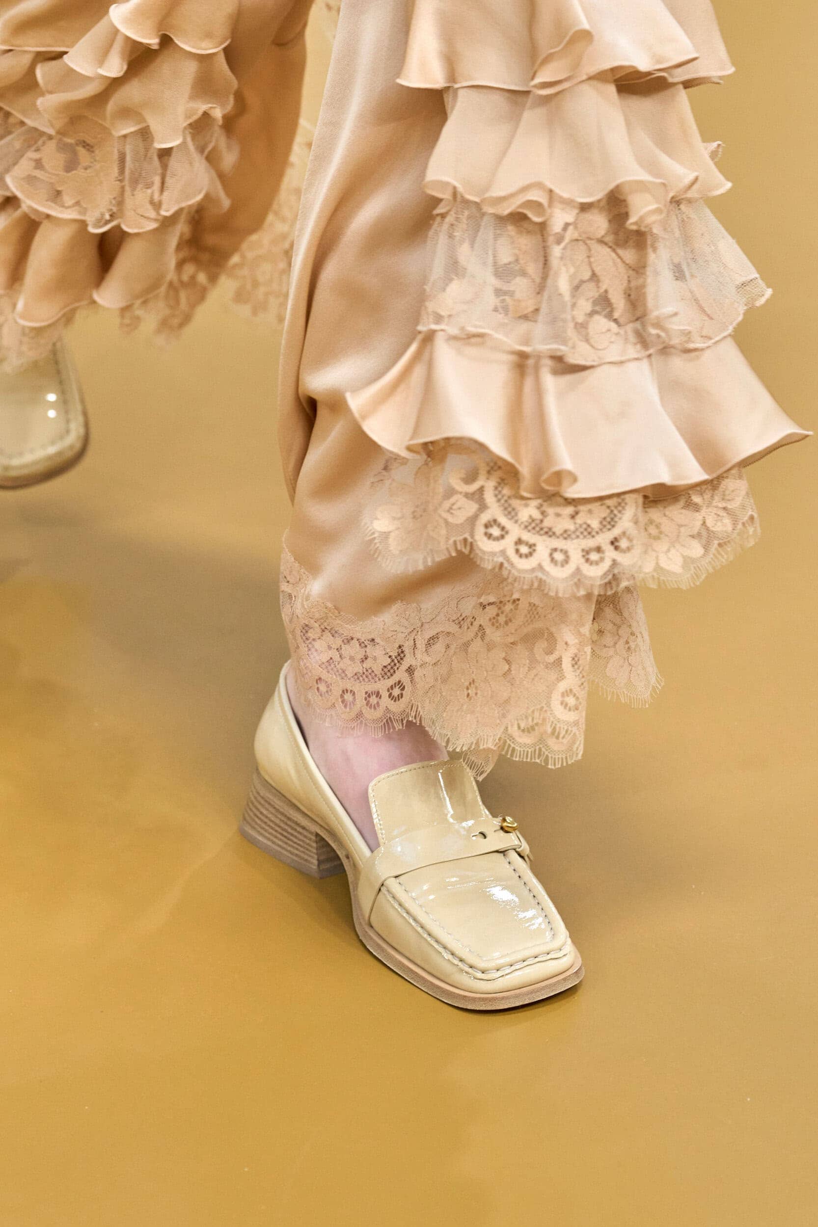Footwear this season moved with intention. Designers explored the tension between form and function, delivering shoes that felt both directional and wearable. Sculptural heels, elongated lines, and grounded flats offered a renewed sense of practicality without sacrificing allure—proving that even the smallest details can carry the weight of a collection’s point of view.