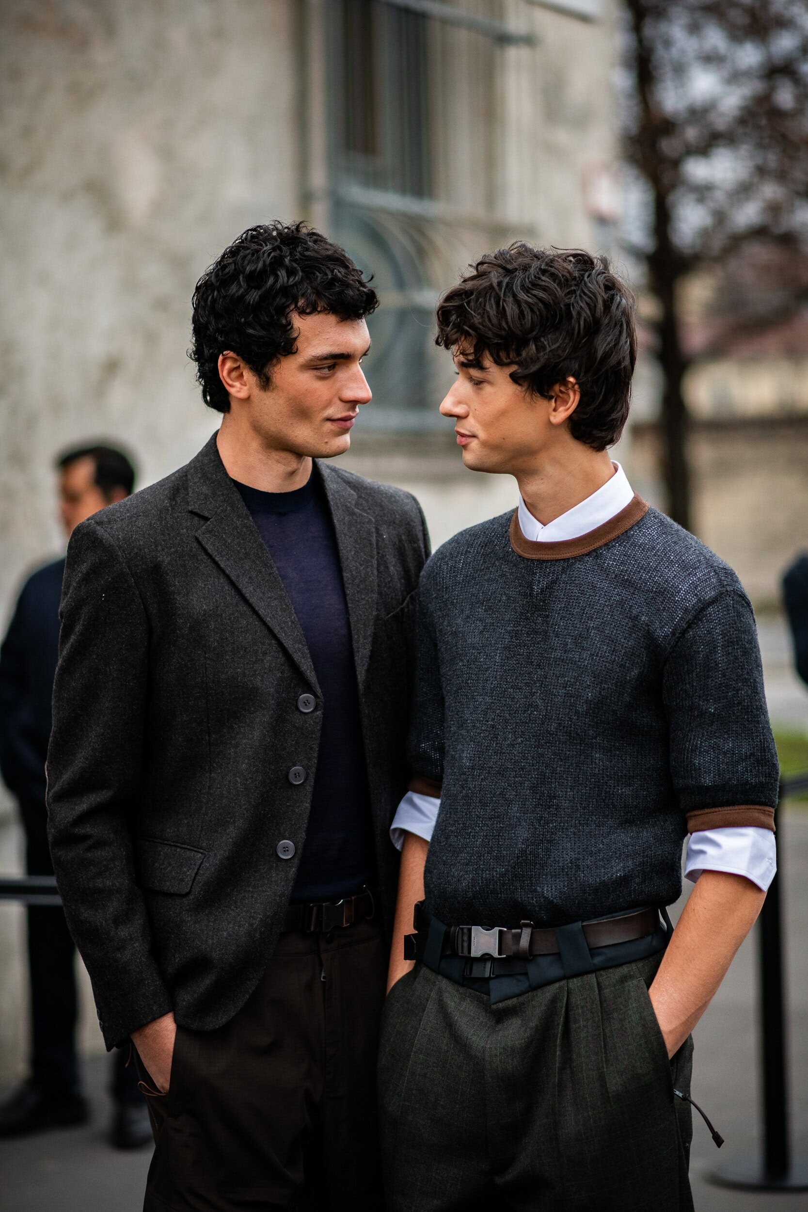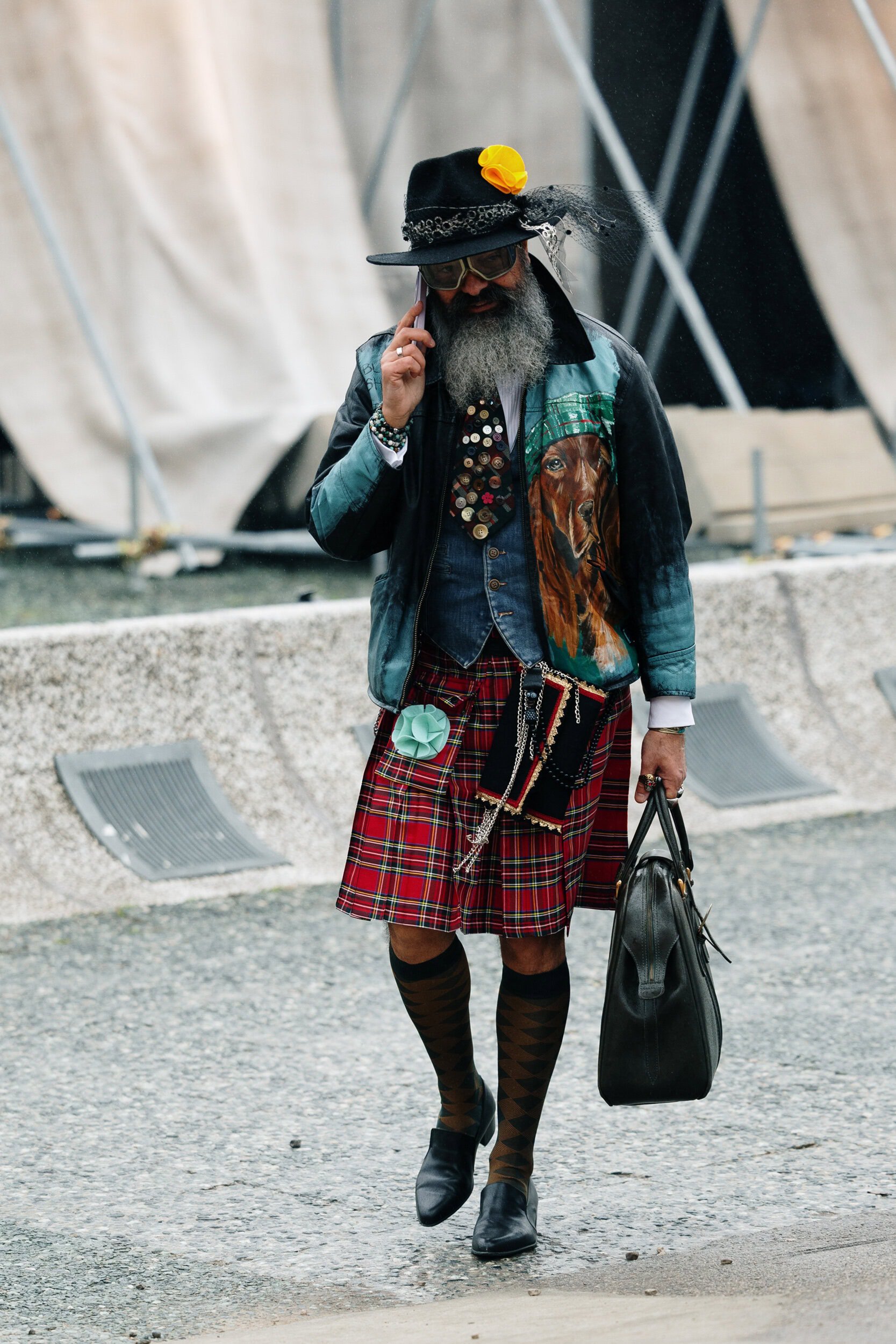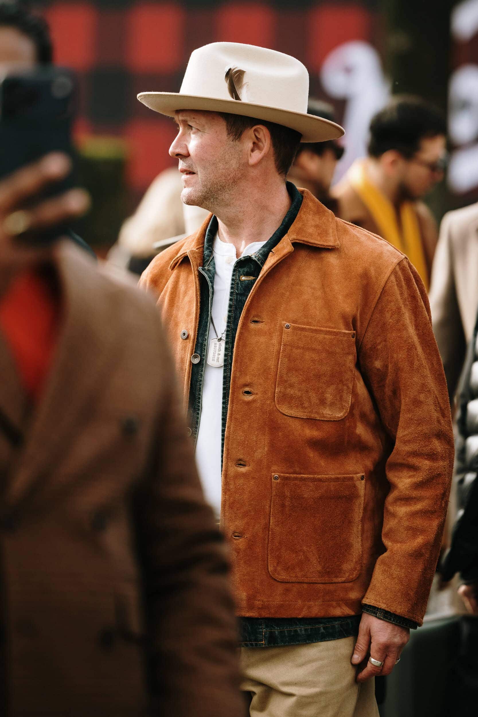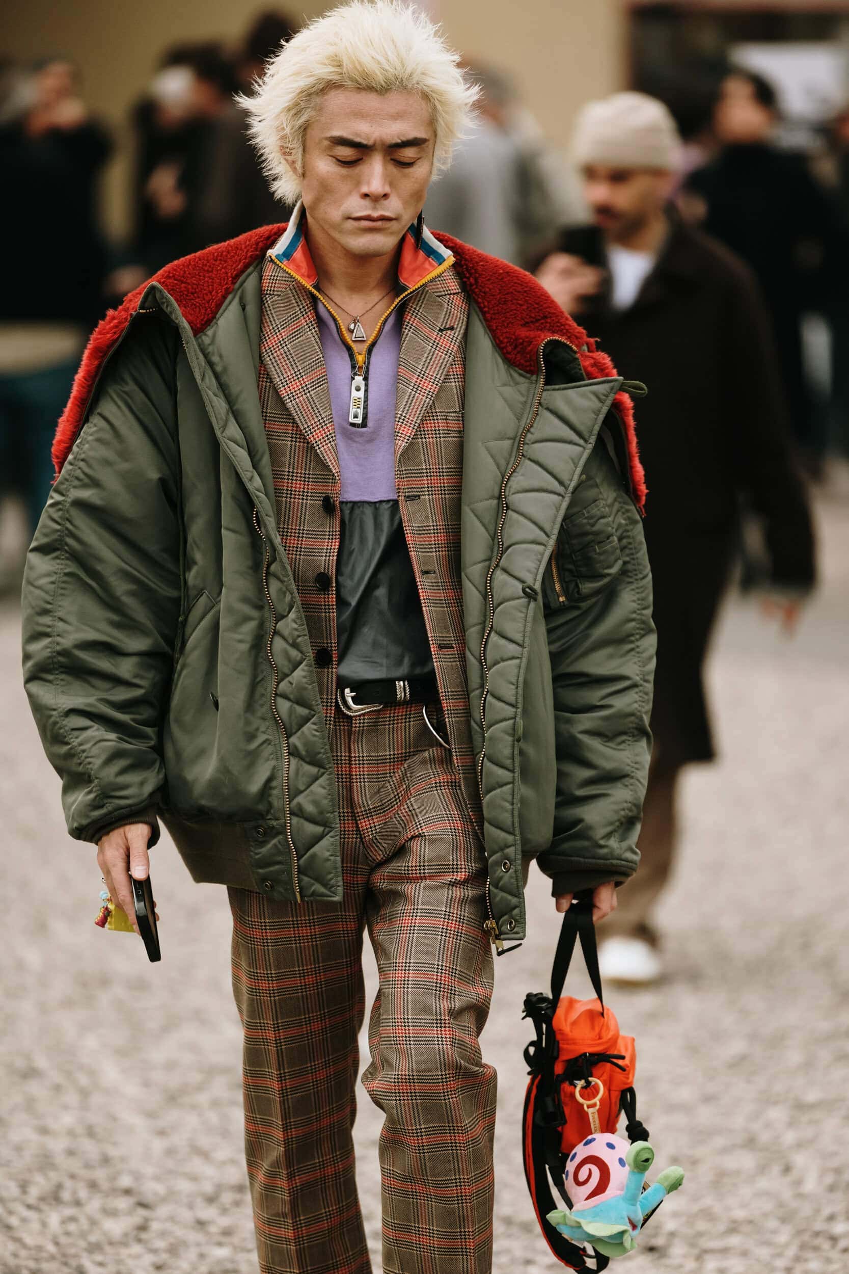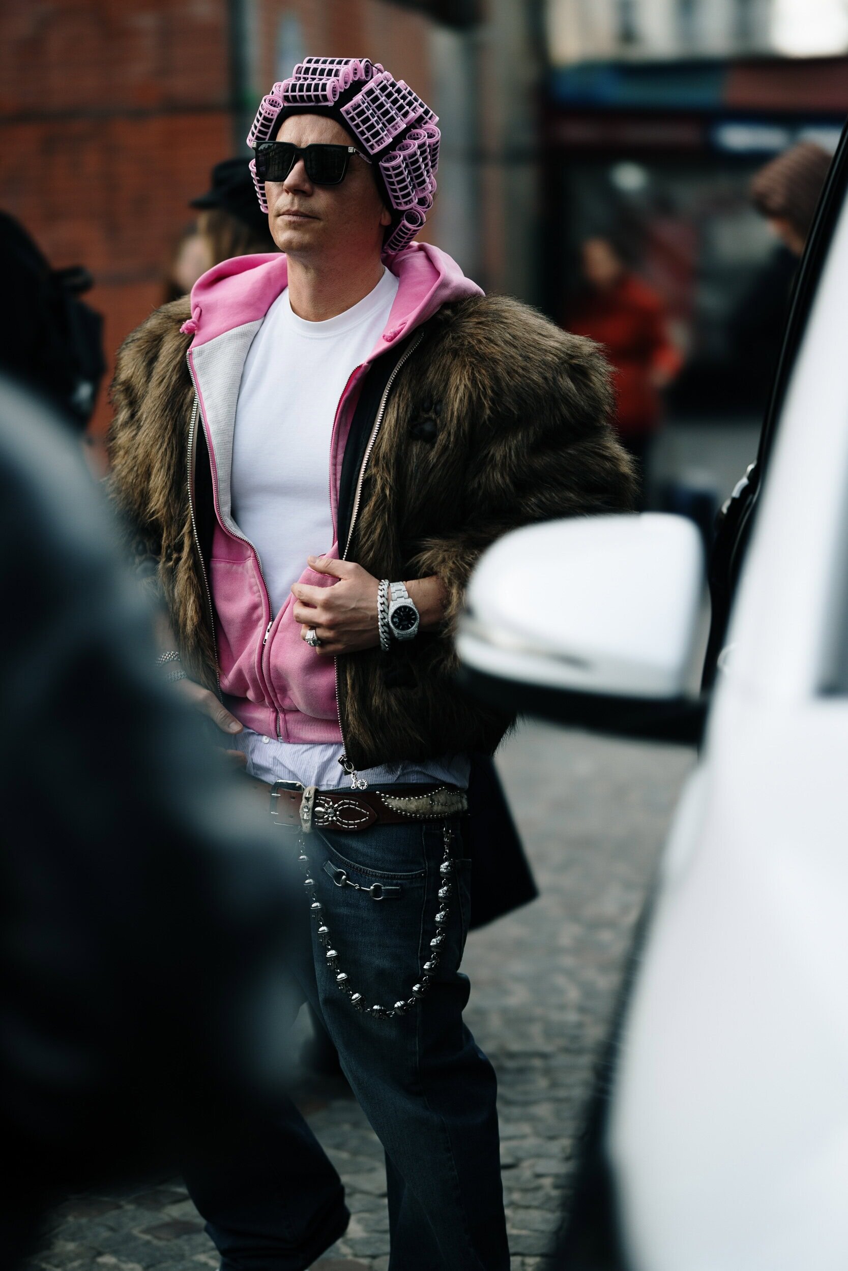 Men’s Fall 2026 Fashion Week street style felt like a modern frontier, blending rugged influence with refined restraint. Western cues surfaced in fur-trimmed coats, worn leathers, and cowboy boots, while militant elements—military greens, utility jumpsuits, and structured layers—added edge. Suits and classic workwear softened through fluid tailoring and feminine nuance, balanced by thoughtful details like stacked rings and charm-adorned bags. The result was a sharply curated streetscape where strength met sensitivity, and menswear felt both expressive and intentional.