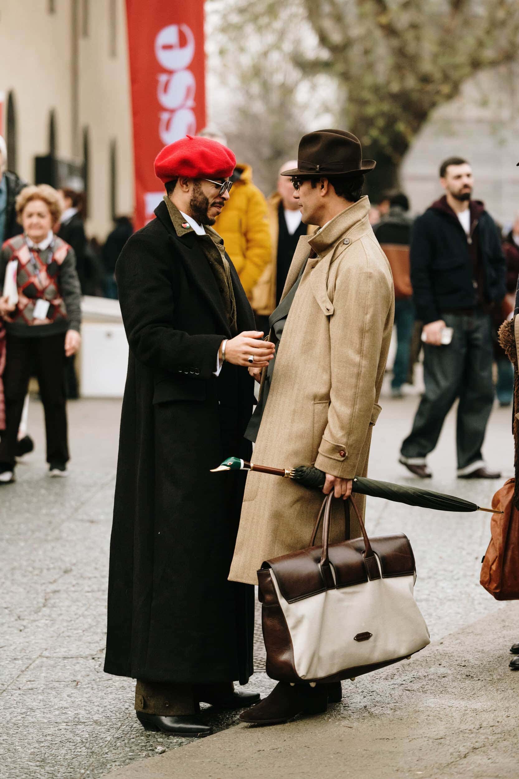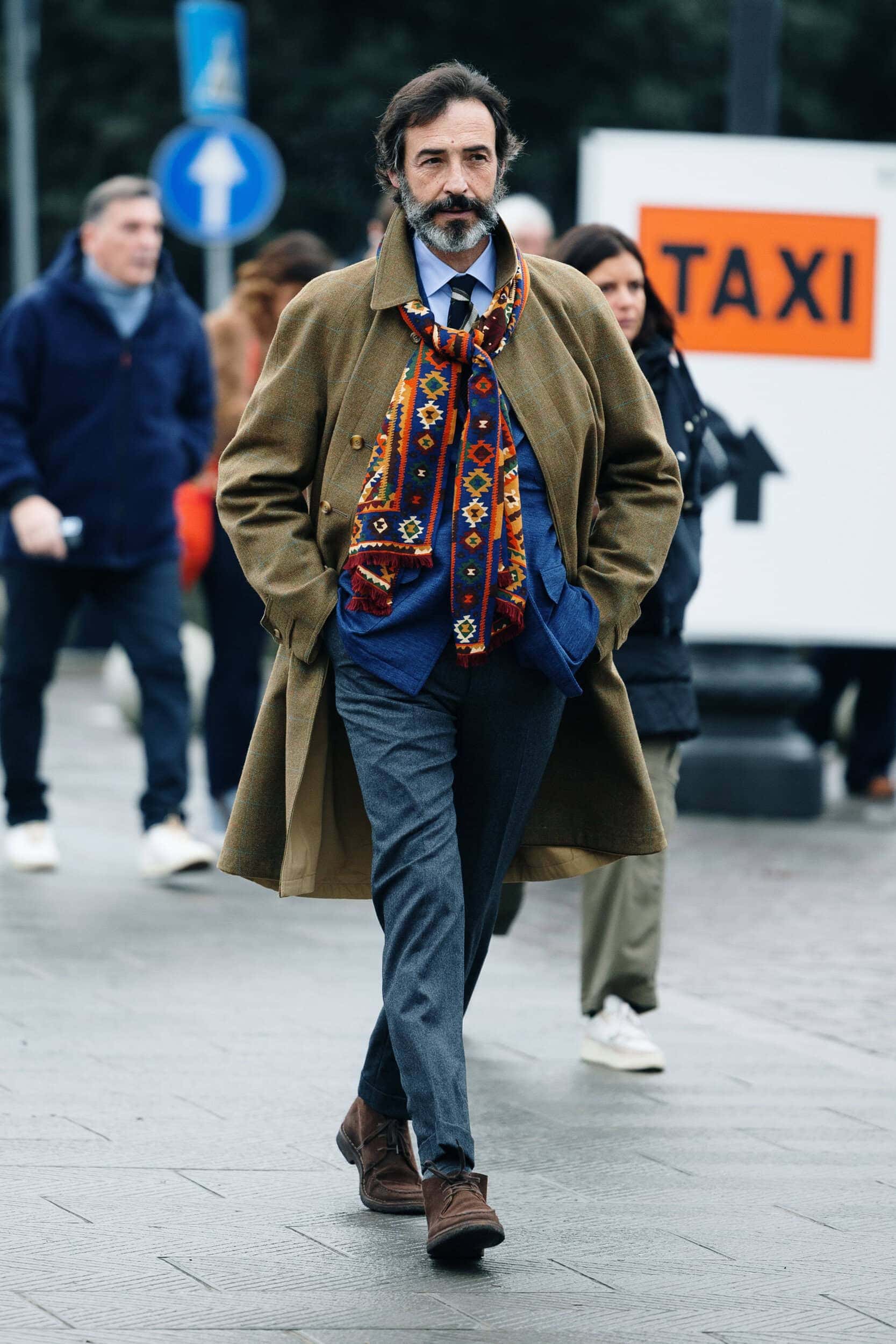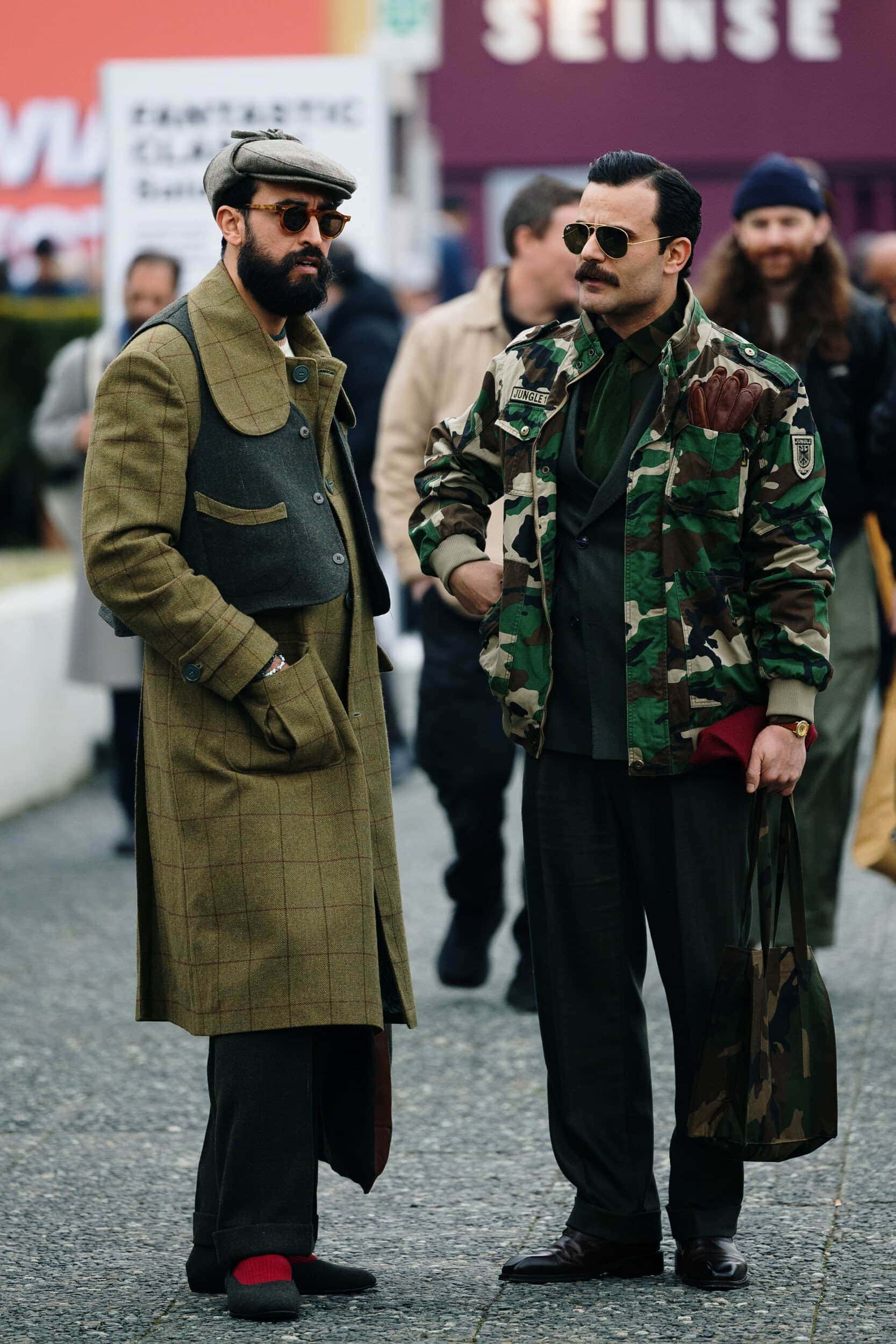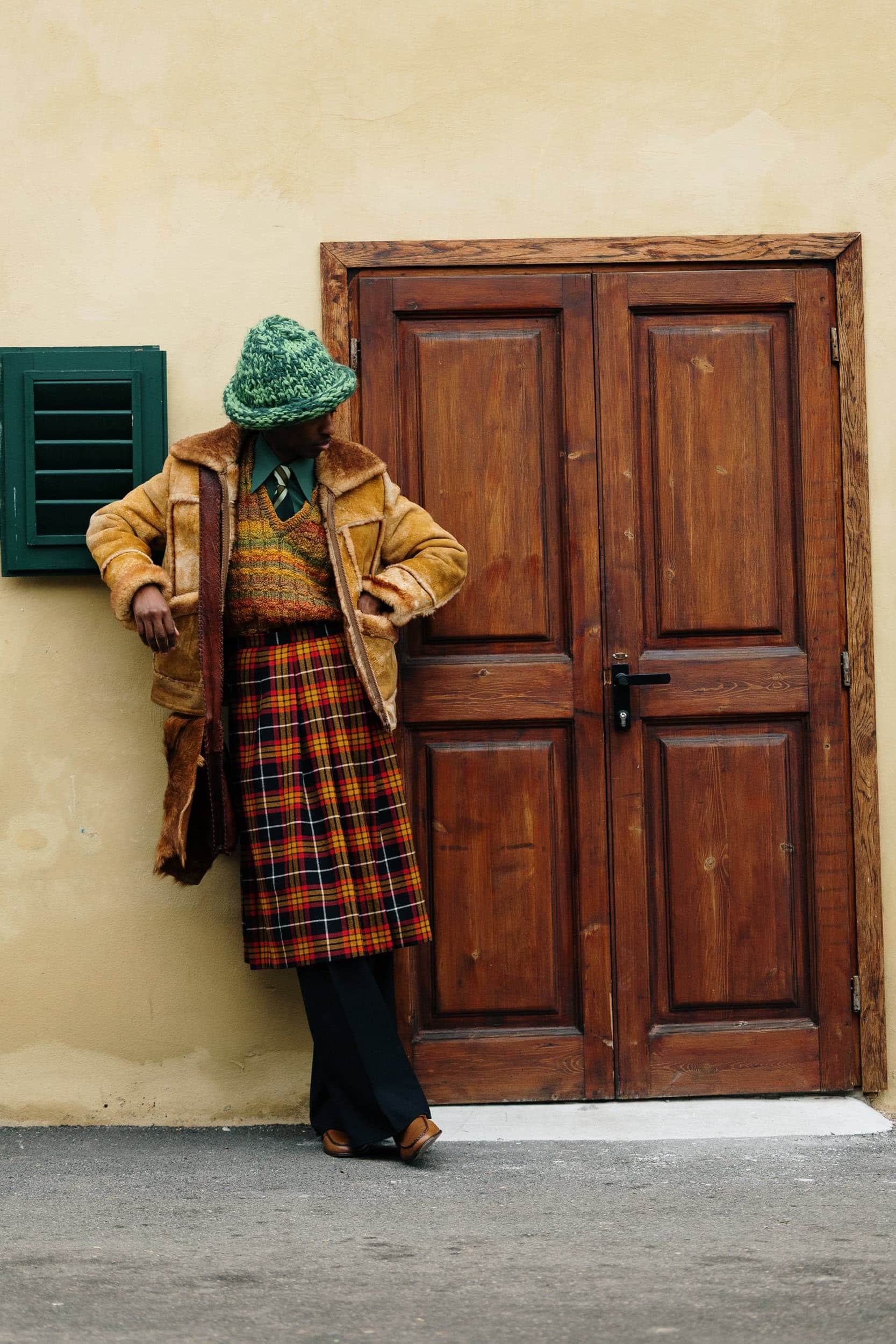 Men’s Fall 2026 Fashion Week street style felt like a modern frontier, blending rugged influence with refined restraint. Western cues surfaced in fur-trimmed coats, worn leathers, and cowboy boots, while militant elements—military greens, utility jumpsuits, and structured layers—added edge. Suits and classic workwear softened through fluid tailoring and feminine nuance, balanced by thoughtful details like stacked rings and charm-adorned bags. The result was a sharply curated streetscape where strength met sensitivity, and menswear felt both expressive and intentional.