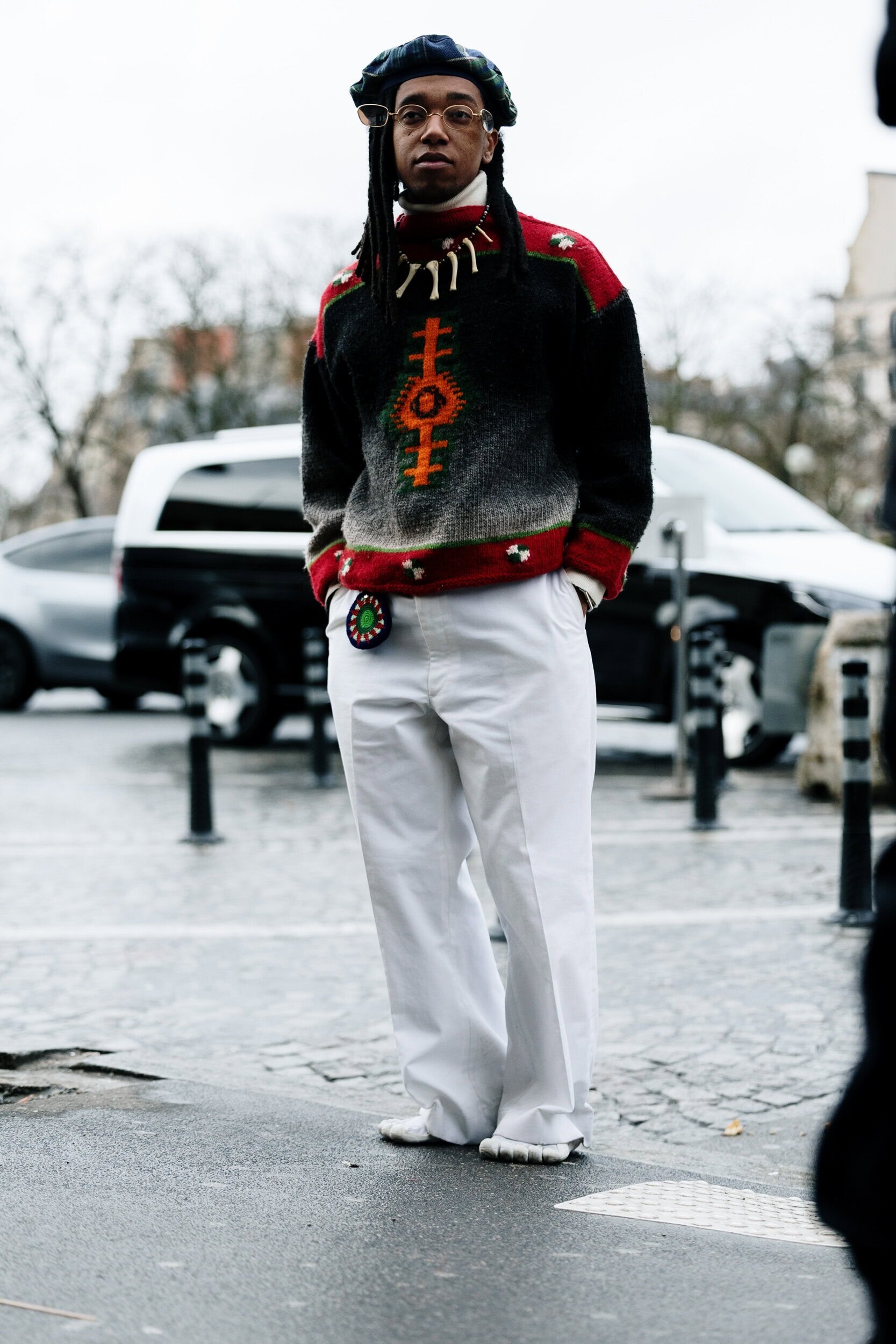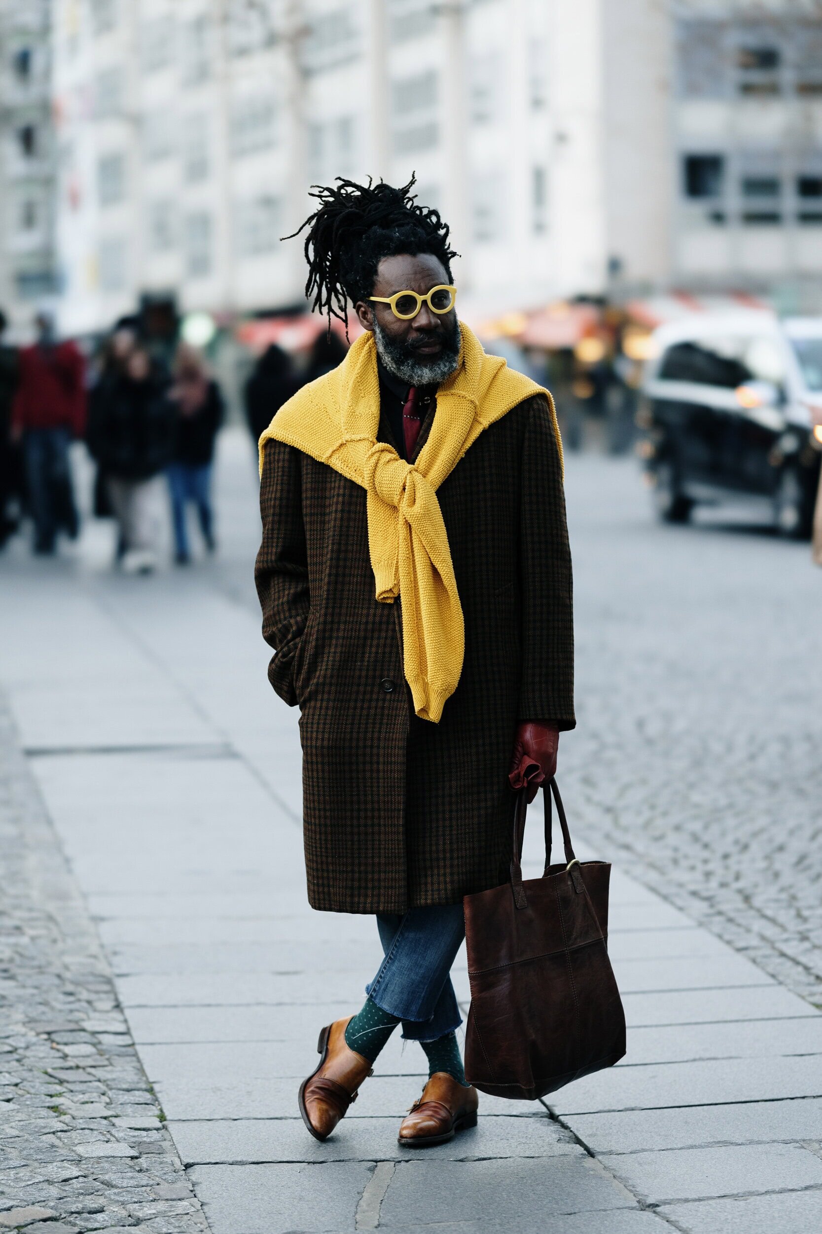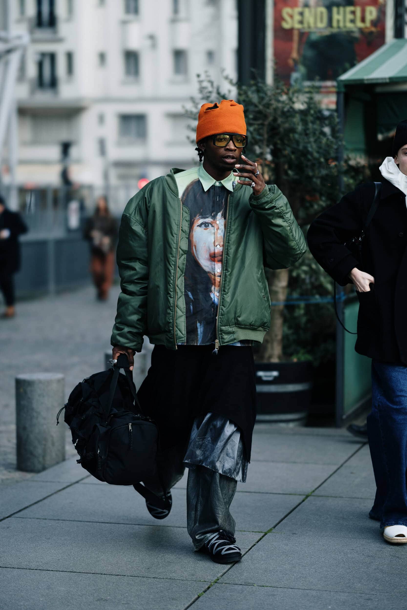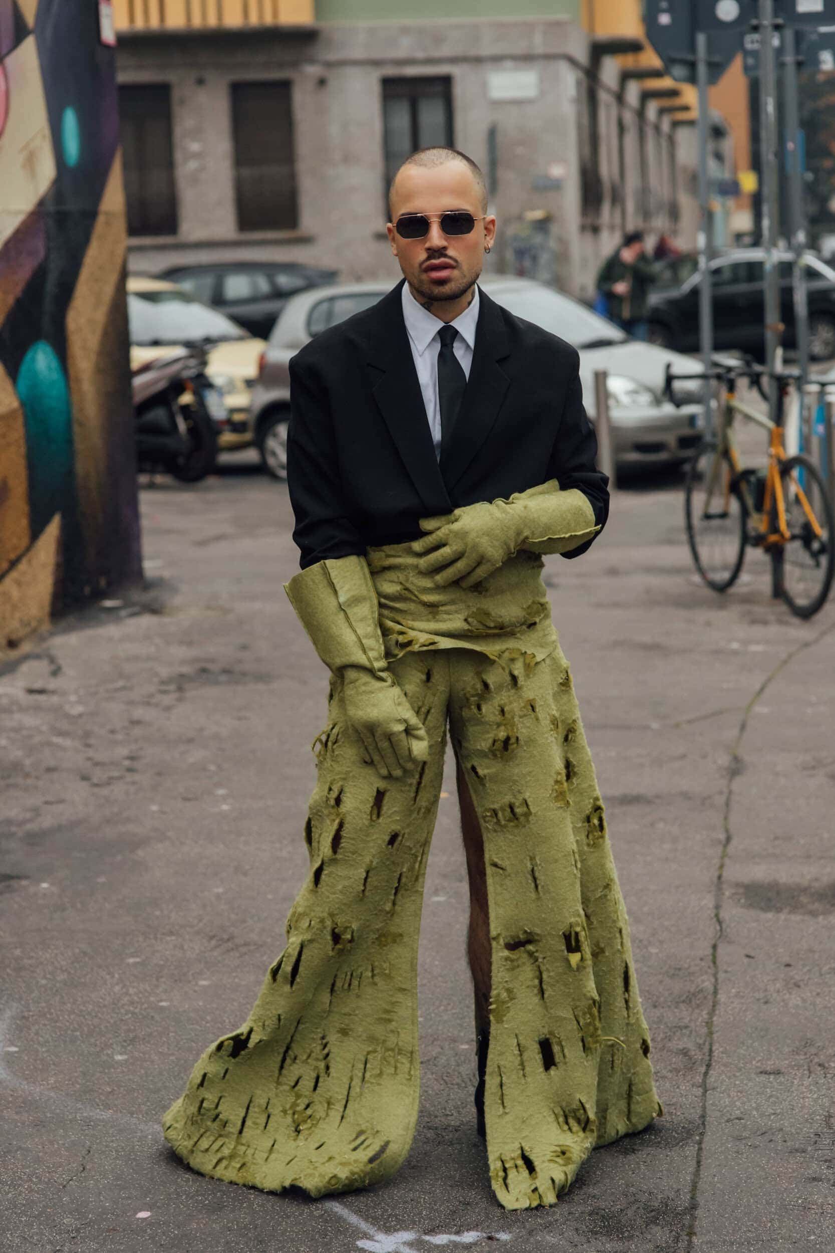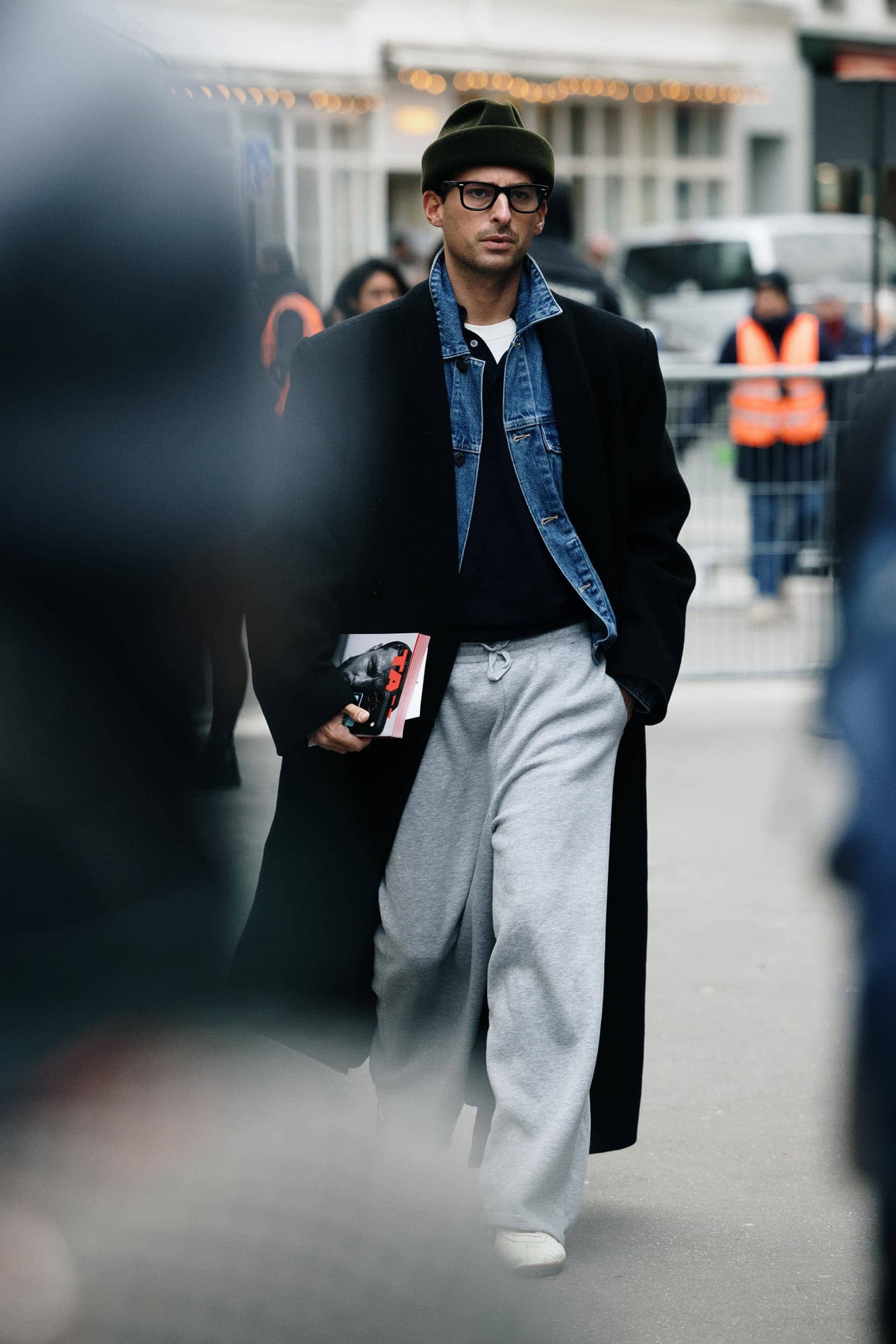 Men’s Fall 2026 Fashion Week street style felt like a modern frontier, blending rugged influence with refined restraint. Western cues surfaced in fur-trimmed coats, worn leathers, and cowboy boots, while militant elements—military greens, utility jumpsuits, and structured layers—added edge. Suits and classic workwear softened through fluid tailoring and feminine nuance, balanced by thoughtful details like stacked rings and charm-adorned bags. The result was a sharply curated streetscape where strength met sensitivity, and menswear felt both expressive and intentional.