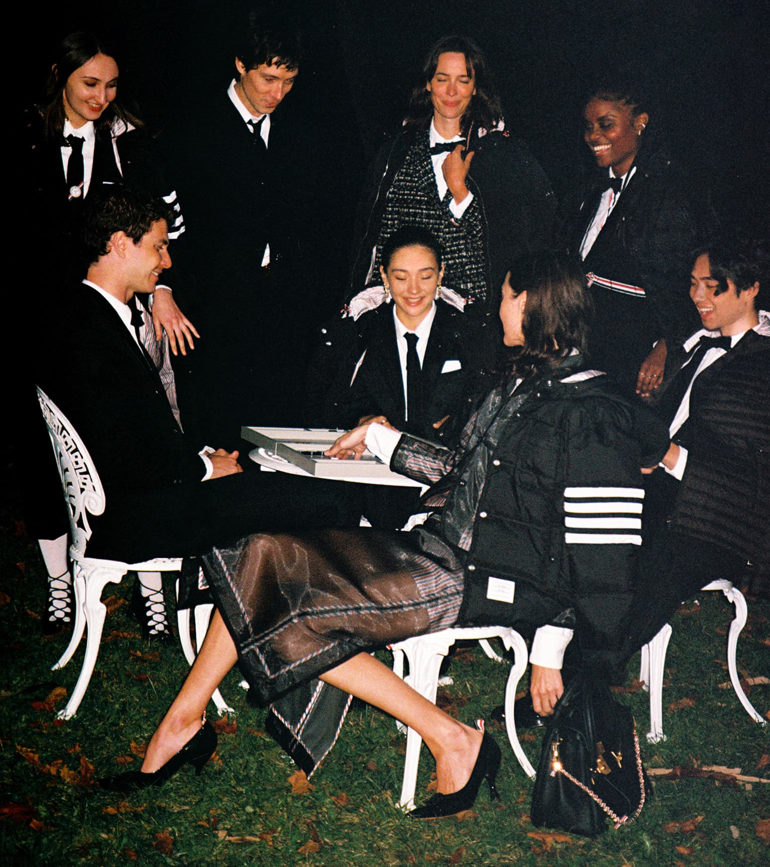 What might, in another designer’s hands, feel nostalgic becomes in Browne’s world, an exercise in endurance. His characters move through daylight and into evening like members of a timeless institution, their attire marking both ceremony and camaraderie. The mood is academic yet warm, ironic yet sincere—a meditation on how dressing can order chaos without erasing emotion.A Day Upstate distills Browne’s philosophy with understated brilliance: that elegance lies in repetition, and that even the most formal codes can hold tenderness. Between the gravel paths and dinner tables, between silence and shared laughter, the collection reminds us why Thom Browne remains fashion’s most disciplined romantic.