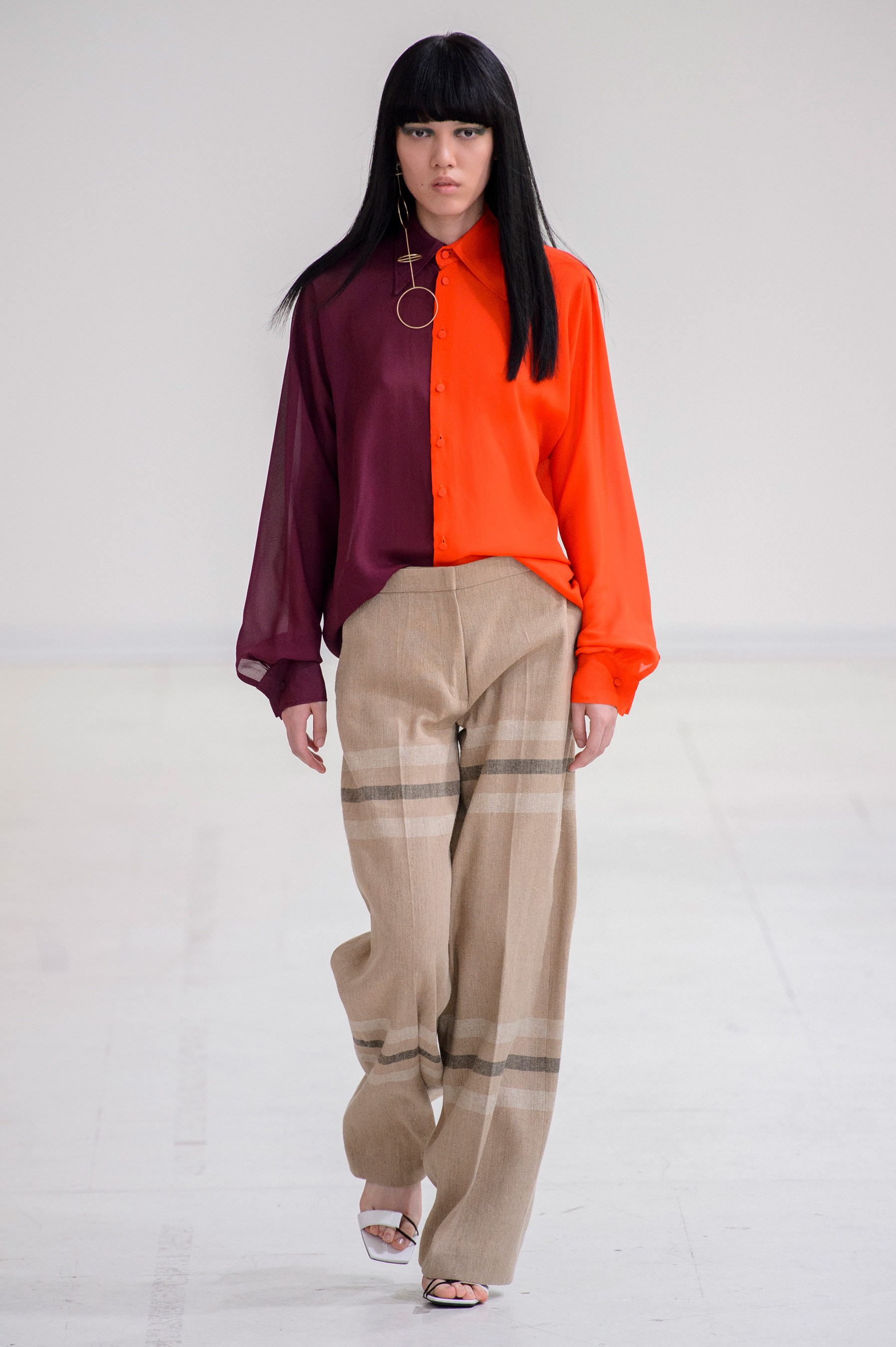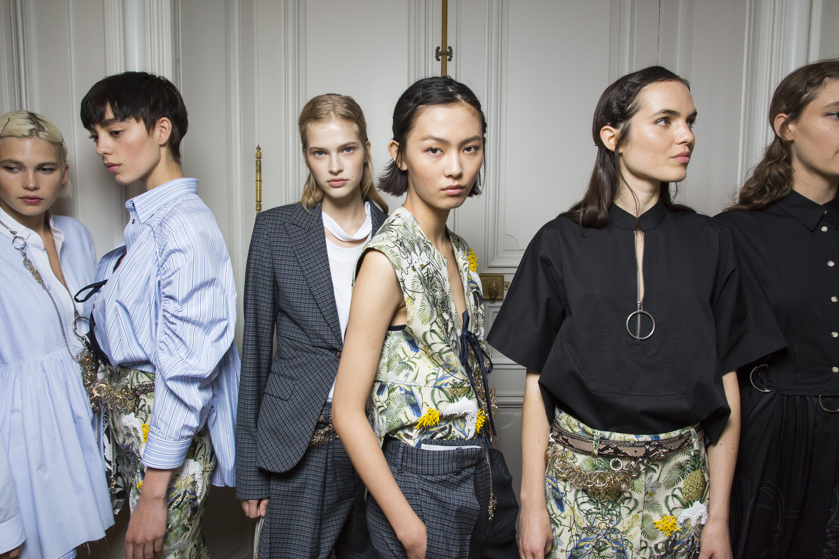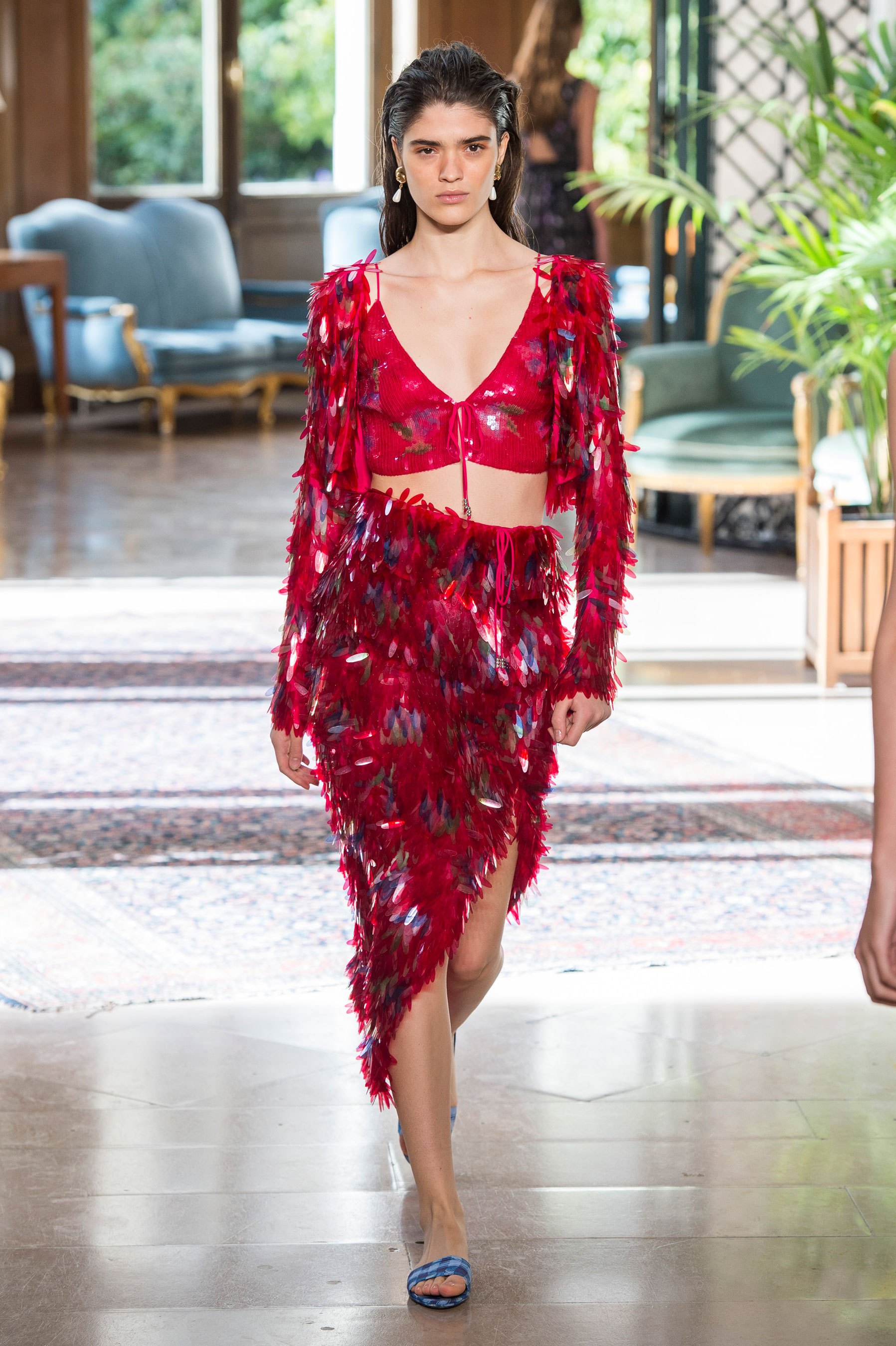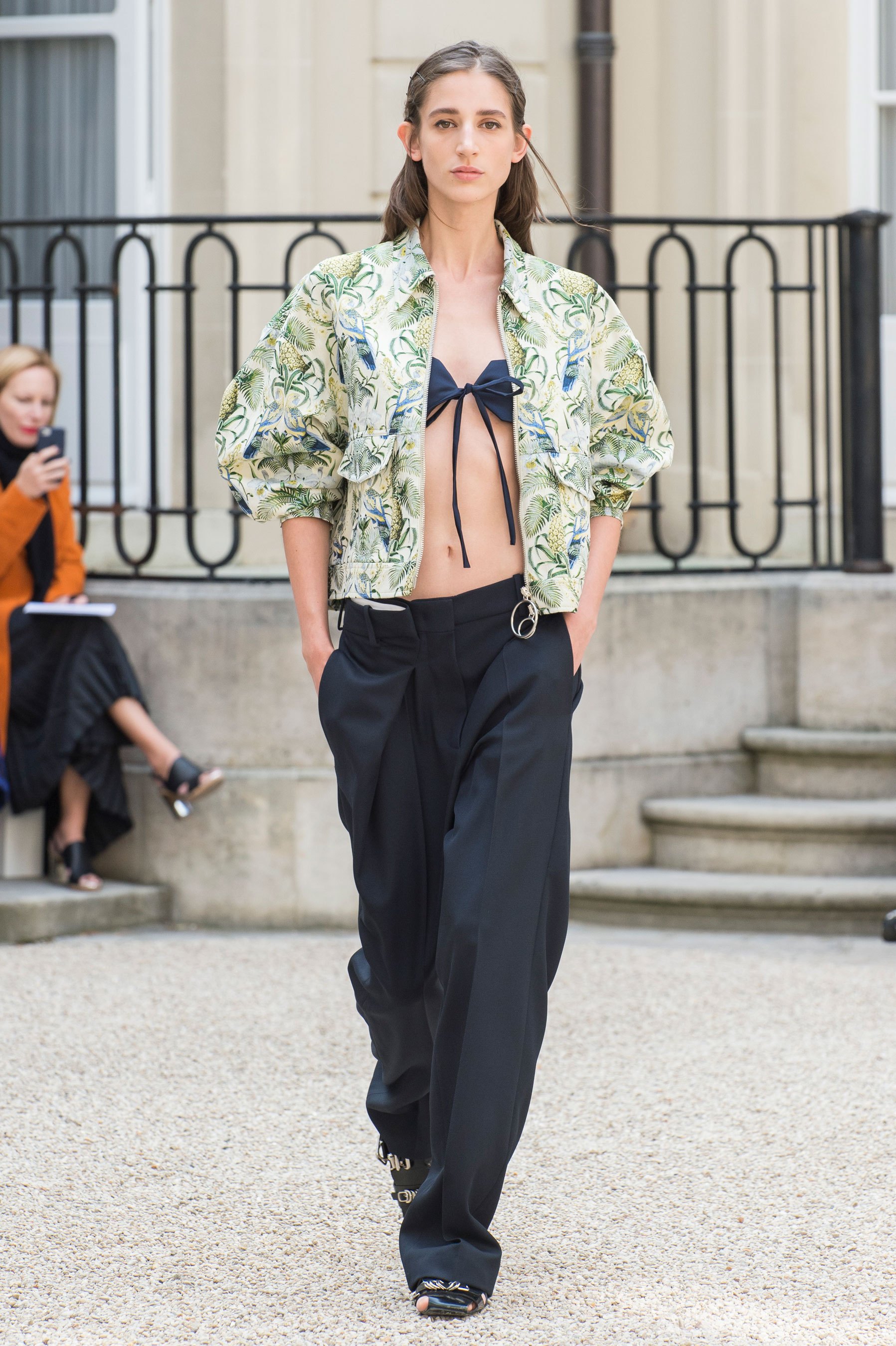 Belgium born designer Cedric Charlier presented his forward and cerebral collection at the Belgian ambassador’s residence in Paris. The collection, produced by Italian fashion group Aeffe, blended gender mixing suiting with romantic brocades and O-rings. The collection was clever, sophisticated and powerful, leading The Impression to wonder if a new Belgium wave is on its way.