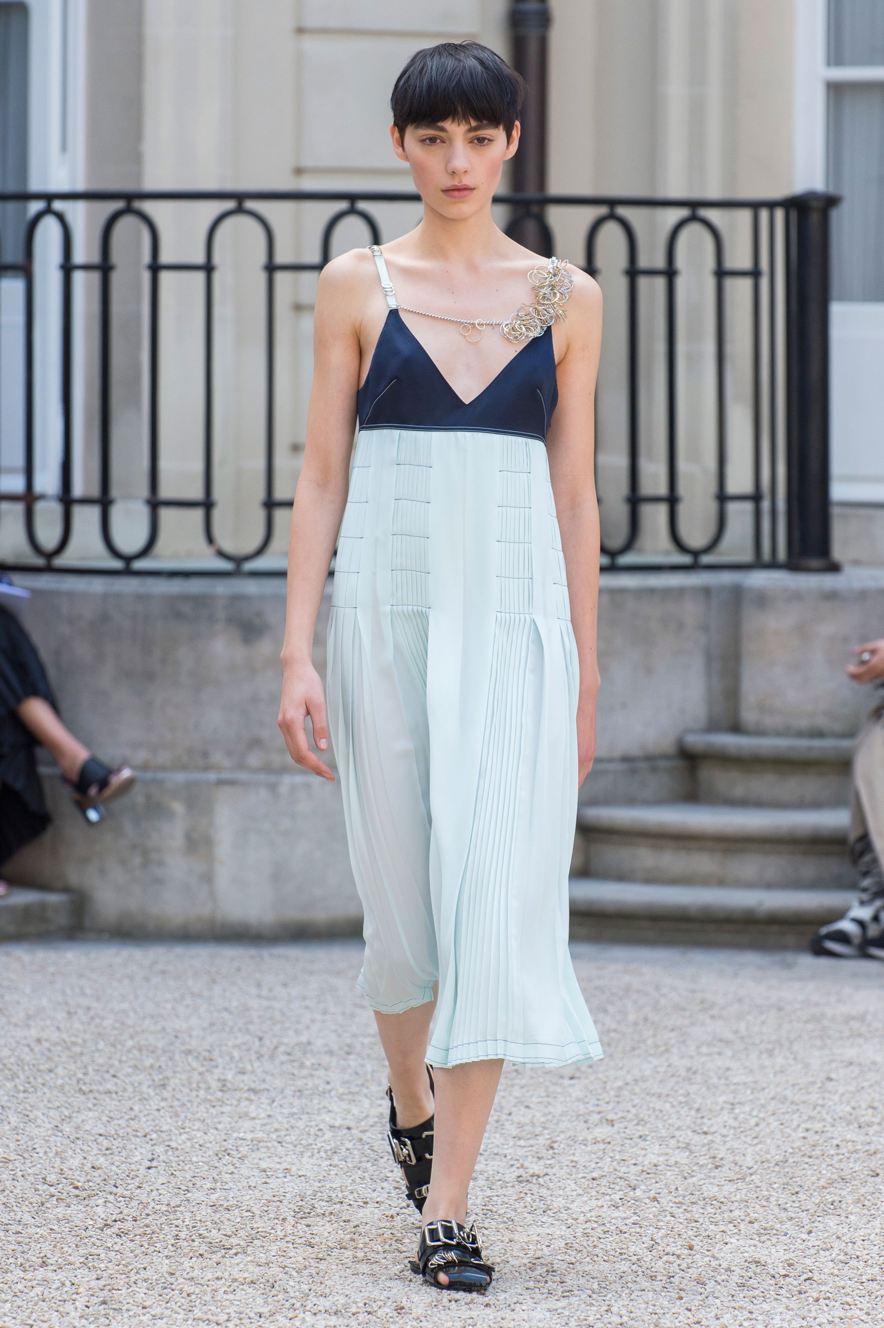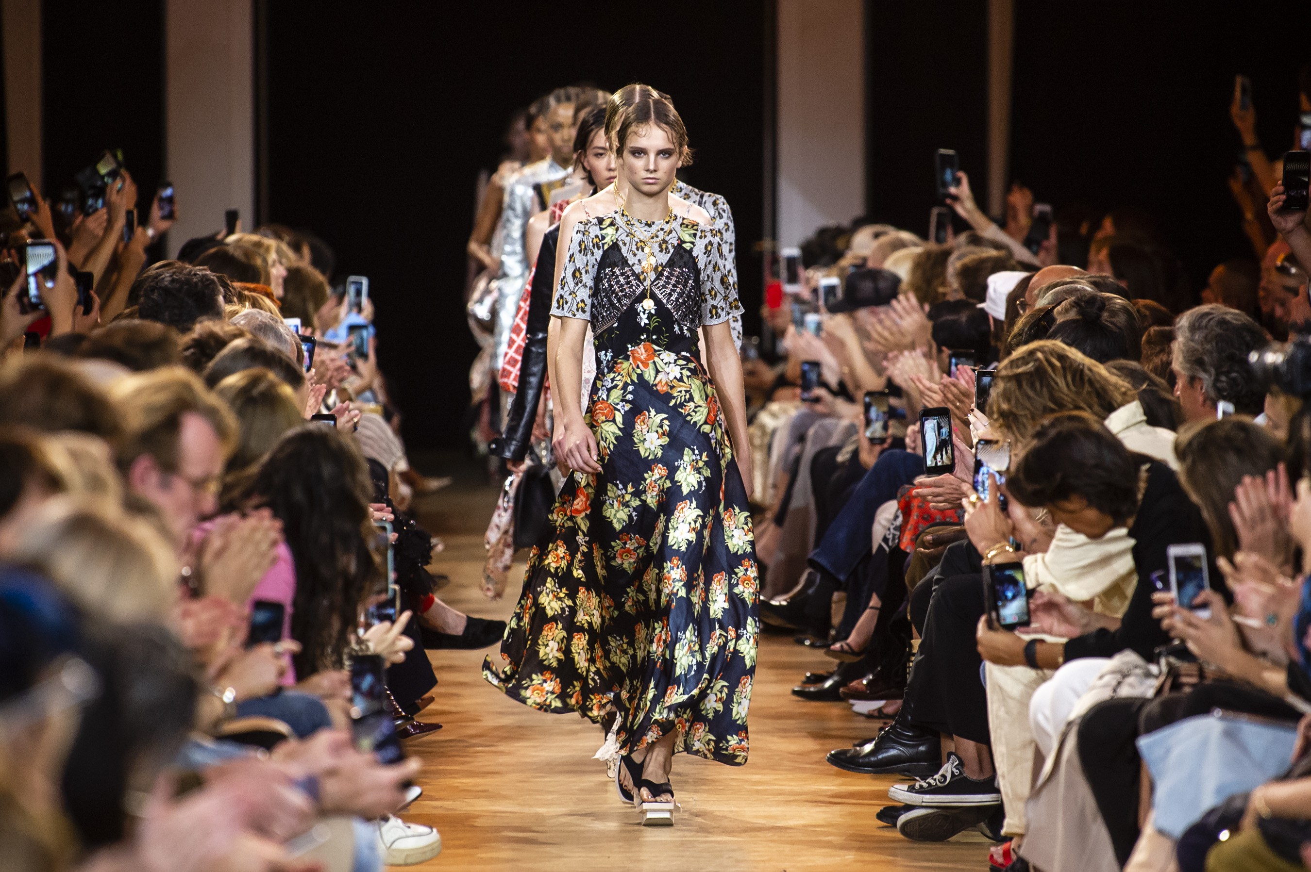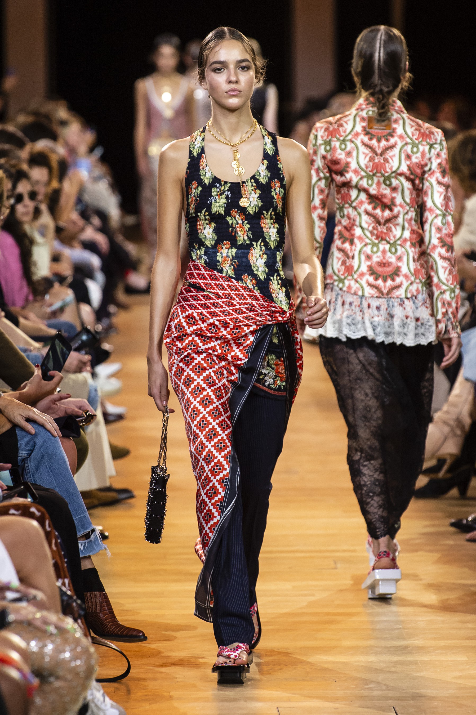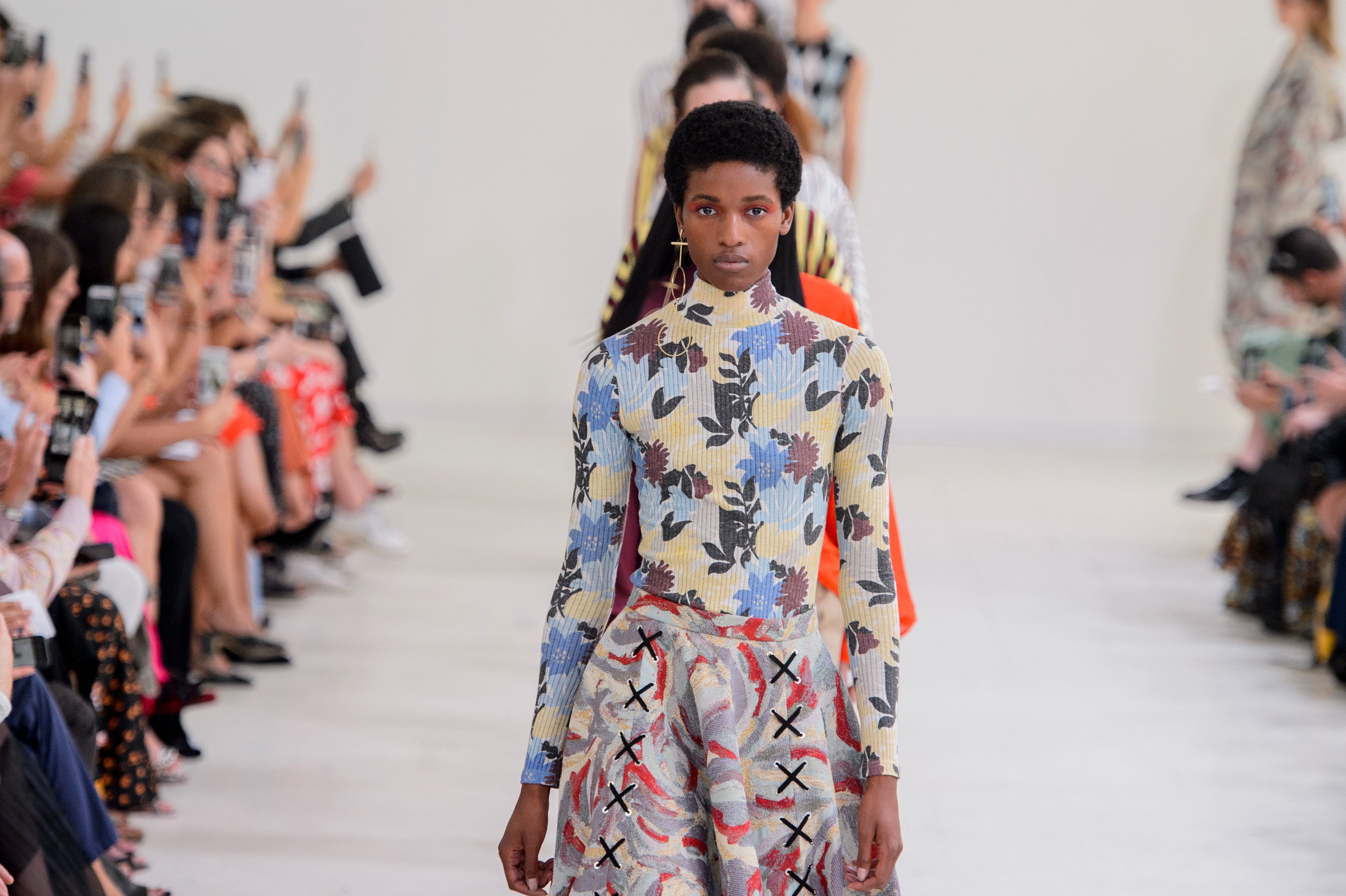 Julien Dossena took the lead at Paco Rabanne five years ago. The 35-year-old born in France studied History of Art in Paris and fashion at La Cambre in Brussels before working at Balenciaga in 2008, alongside Nicolas Gesquière and this season that training paid off. Rather than dig into the Rabanne archive once again for a metallic mini, the designer printed hibiscus flowers and Indian woodblock patterns on chainmail providing an entirely new direction for the house to build off of and the result caught the attention of our Chief Impressionist, Kenneth Richard, to earn a place in our Top 10.