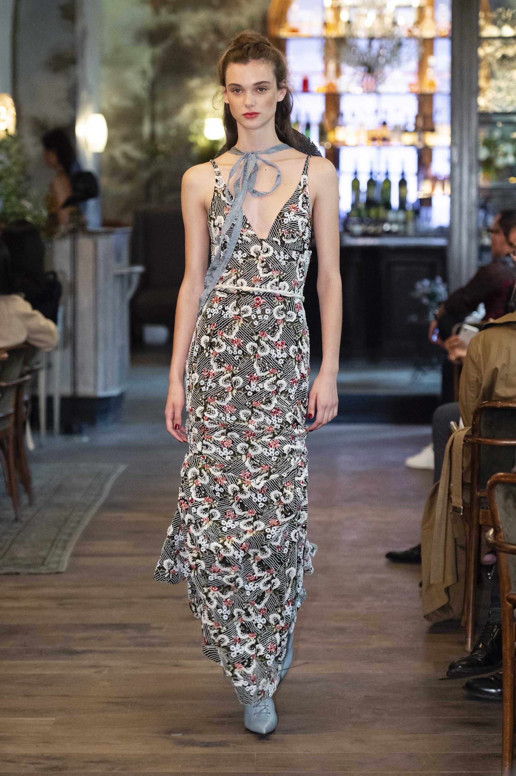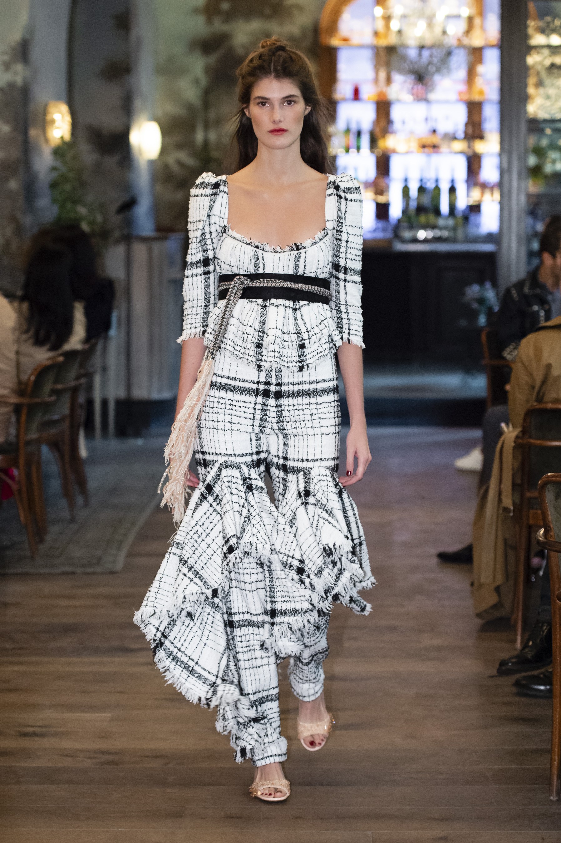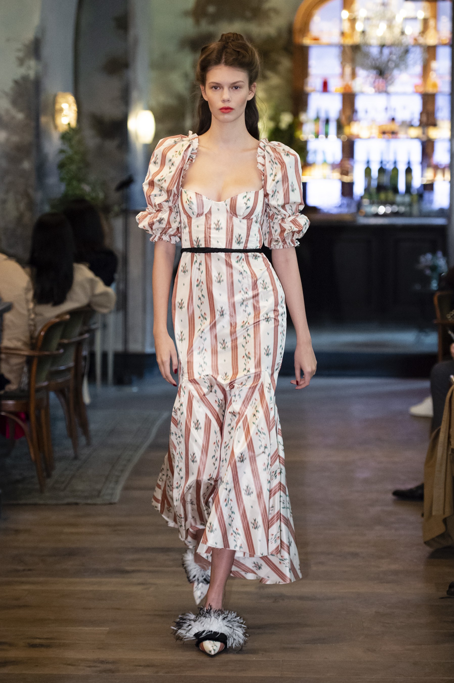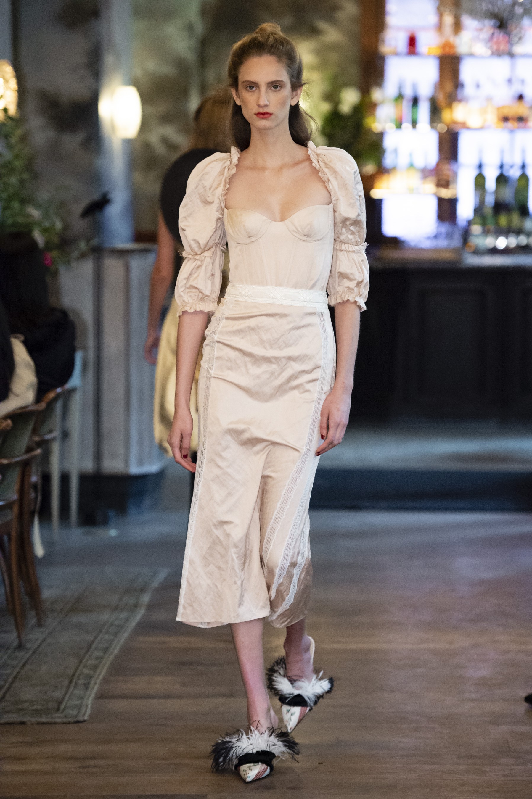Husband and wife designing duo, Kristopher and Laura Brock, showcased their Brock Collection at French eatery, Le Coucou. The Collection was full of refined Belle Époque looks with puffed sleeves, corset dresses, and ornate fabrics. Despite the ode to history the collection was very modern and feminine in a way that many New York designers rarely think of.