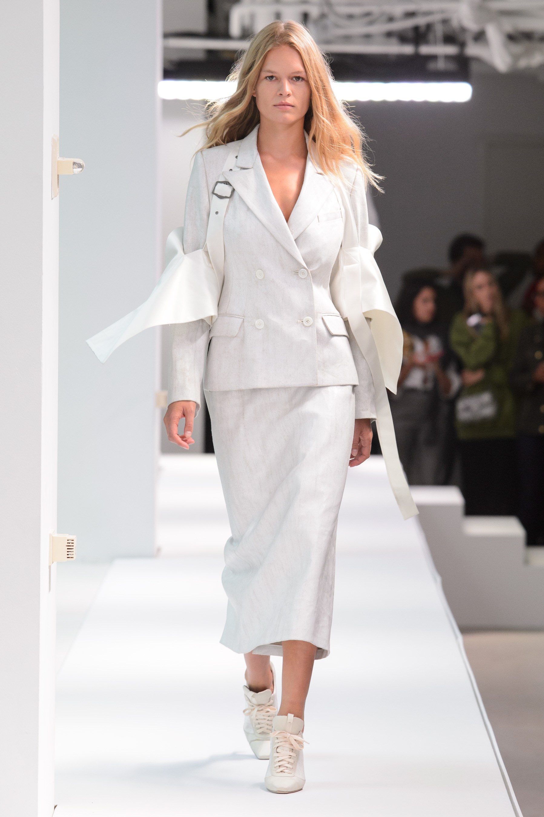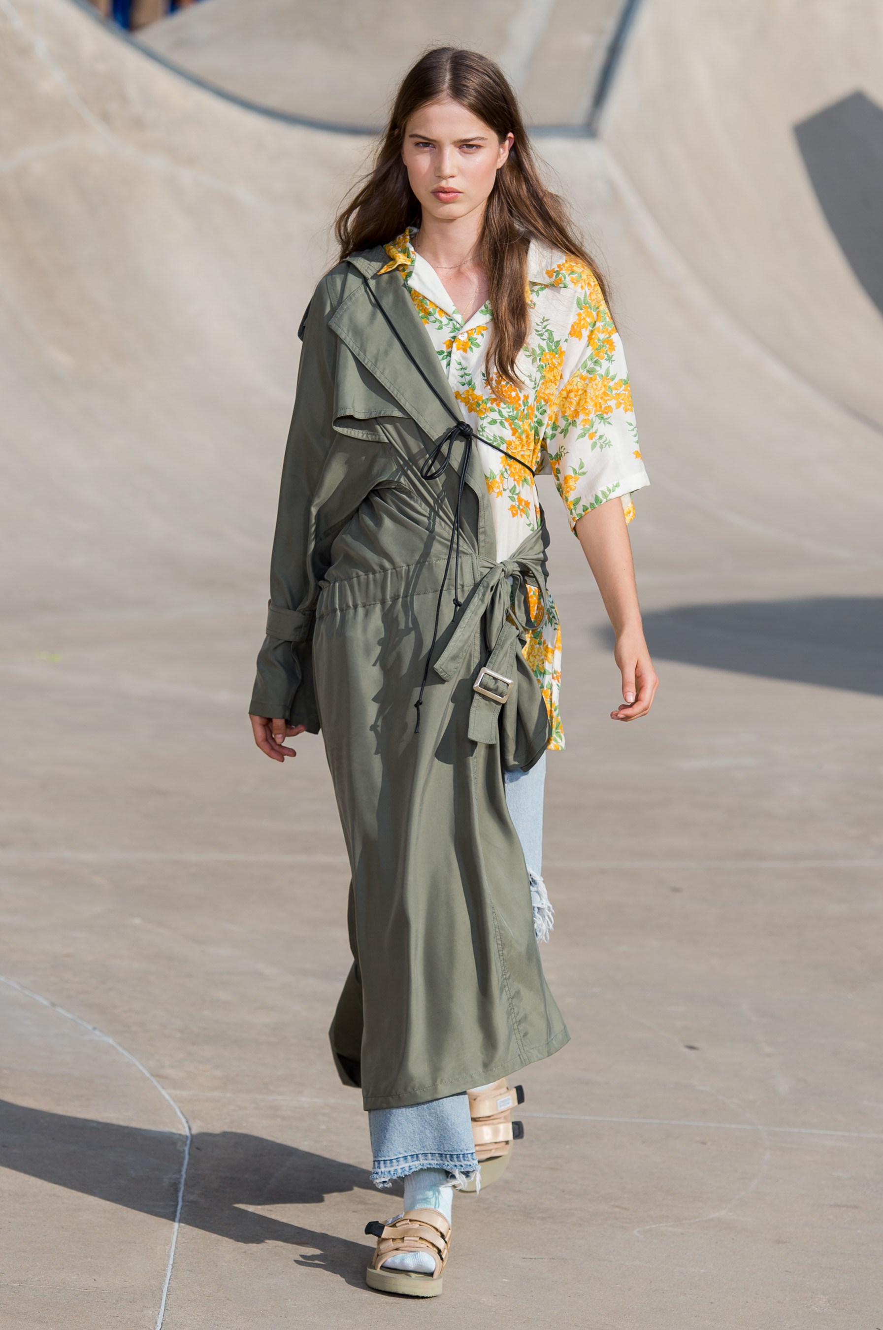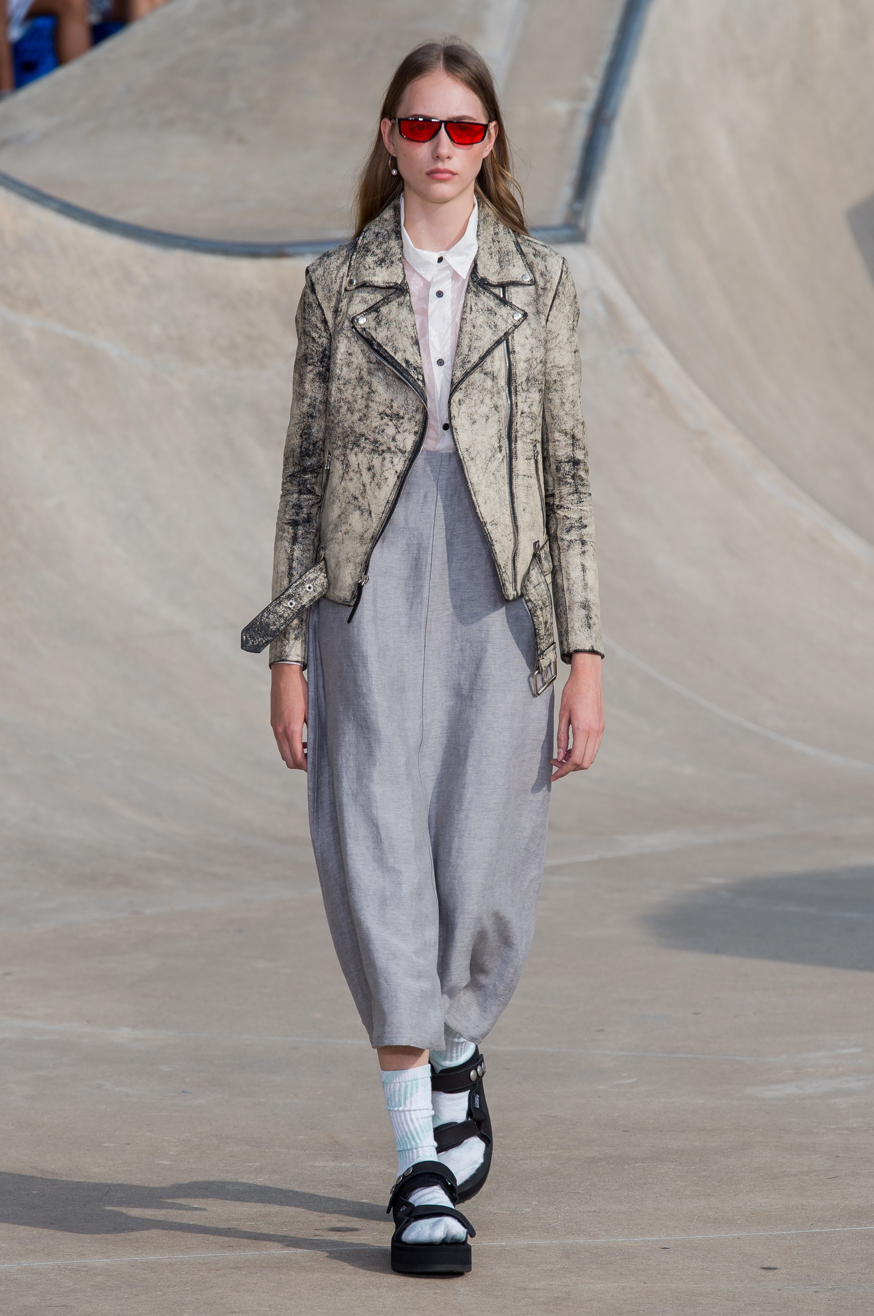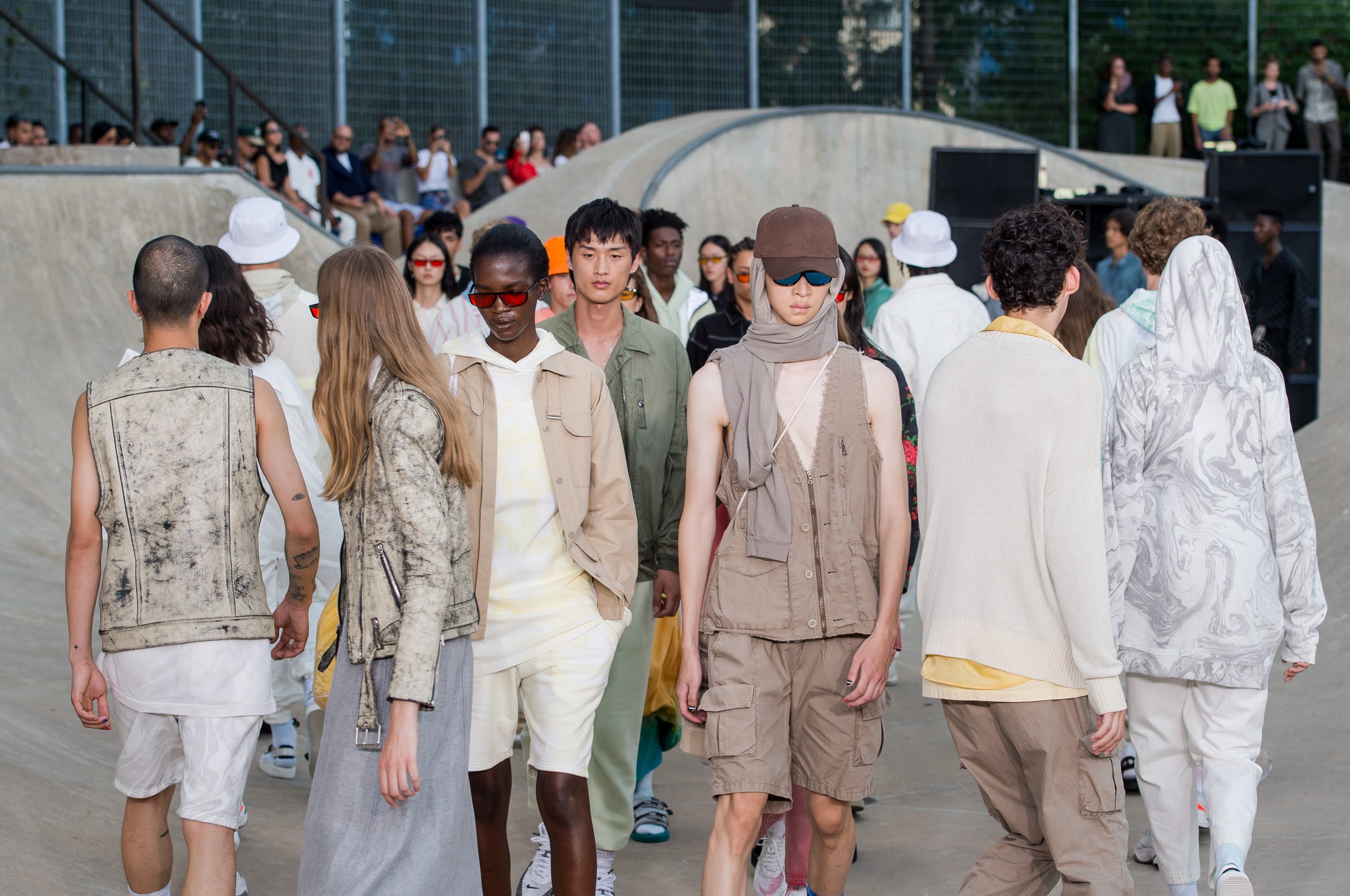 Los Angeles based designer John Elliott has name a name for himself in menswear and until his latest move to present in Paris was one of the leading highlights of New York Men’s Fashion Week. Fortunately the designer returned stateside and layered in women’s to bring his casual street influence back to the streets of New York. Showing at a skateboard park the collection blended surf, skate, California sunshine, and youth couture to represent one of this weeks best breakout shows.