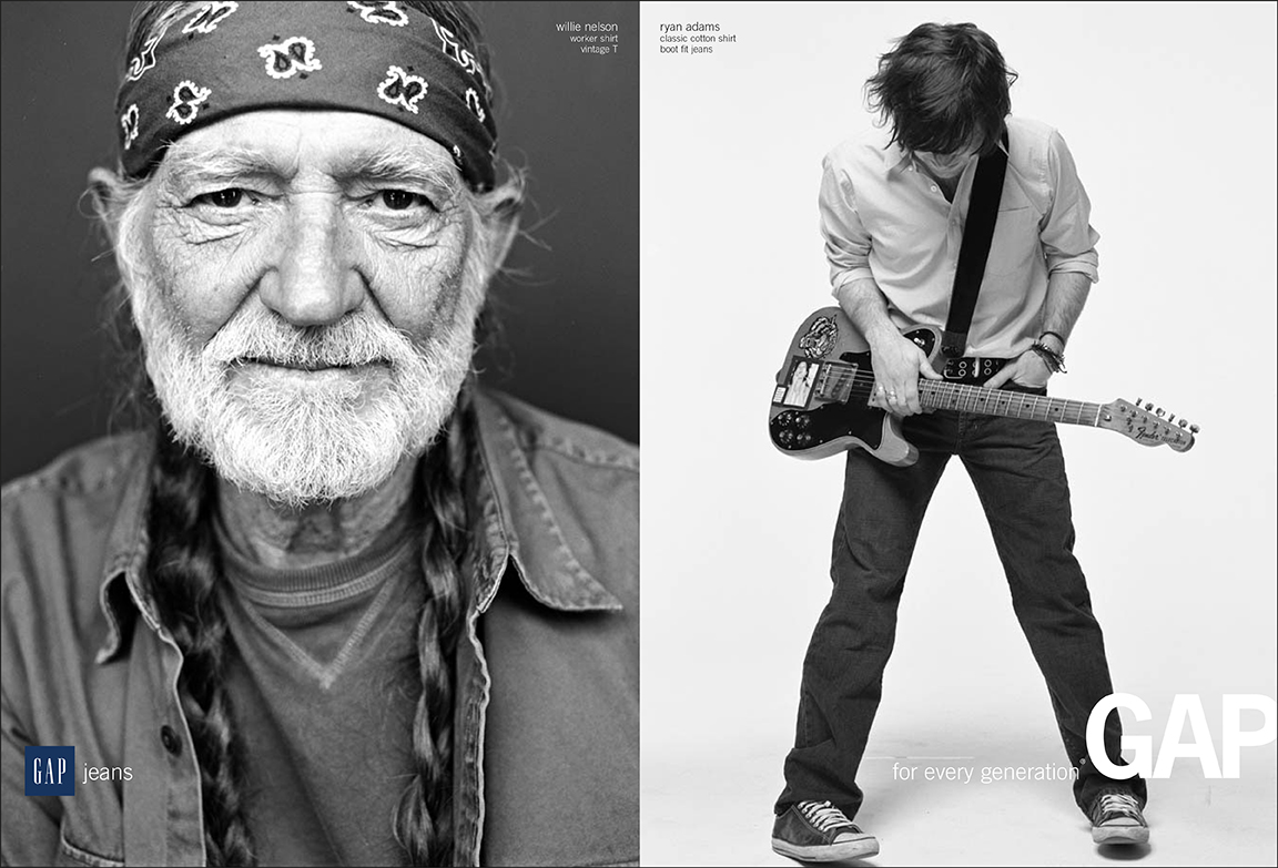 The first campaign I did was a GAP campaign called “For Every Generation,” where we shot different generations of people wearing the same thing. So we shot Willie Nelson and Ryan Adams, both in jean jackets. We had another amazing ad that was Sissy Spacek and Bridget Hall, both in white shirts. We did a big, 50-page magalog with the Vanity Fair Hollywood issue and it was a big, global campaign. They’d really, at that point in time, kind of lost focus of their iconic items which I thought were the best part of GAP: those great items that transcended status and became part of your life and were very adaptable to who you were as an individual. That was always the strong point of GAP and one of the things that gave it so much style. So we tried to do that and give it a new twist with the generations. That was the first thing Mickey and I worked on together.
