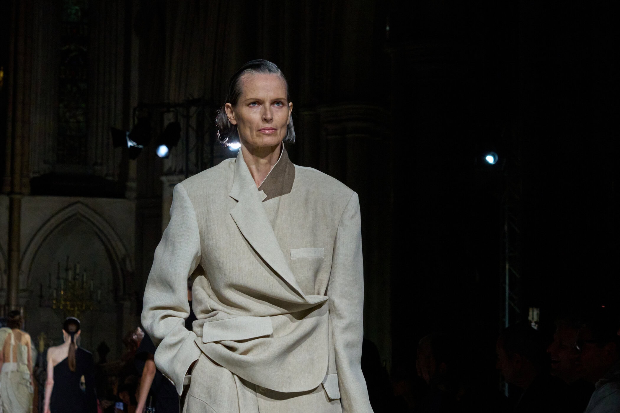 Discover the immersive atmosphere and striking staging of Uma Wang‘s Spring 2025 fashion show at Paris Fashion Week, creating an unforgettable mood this season.