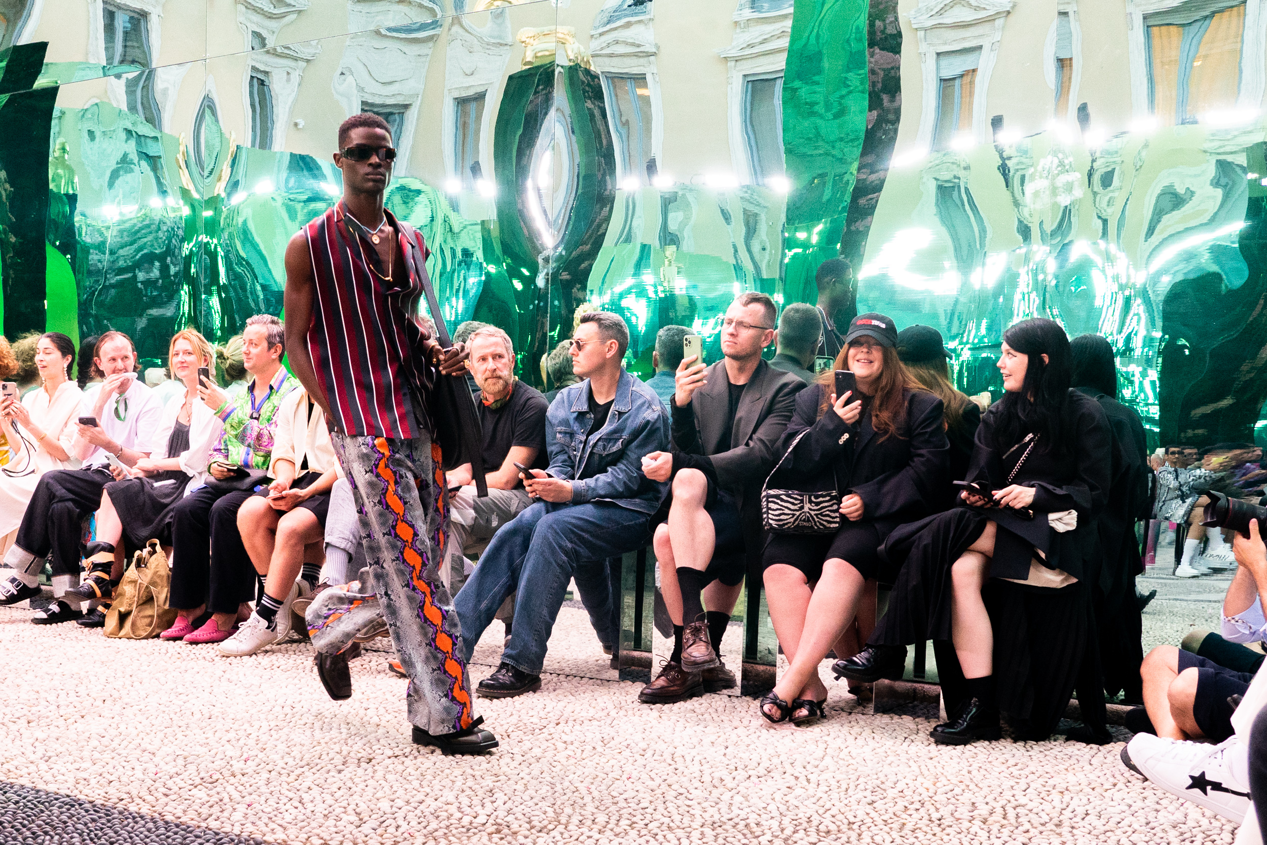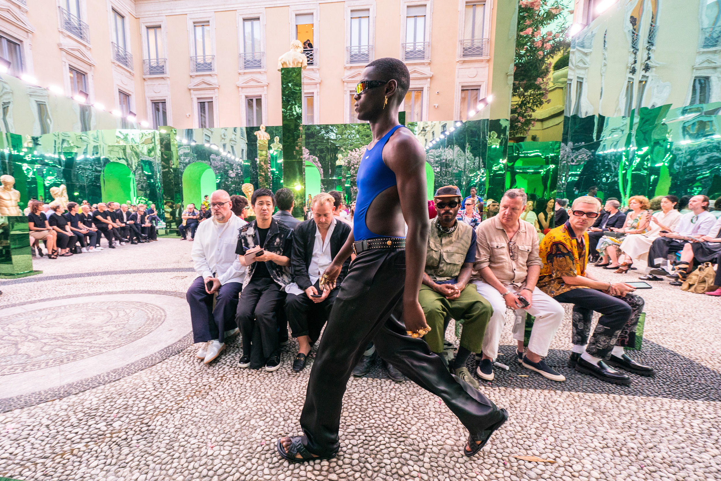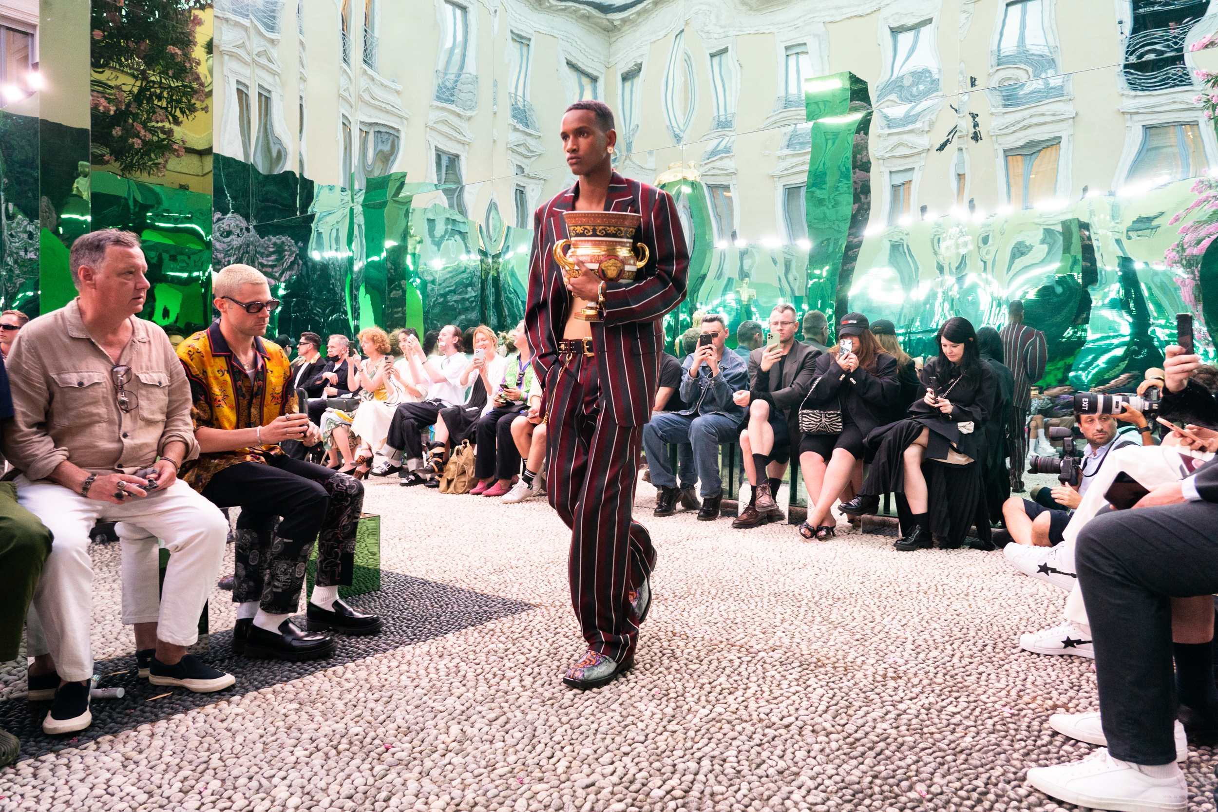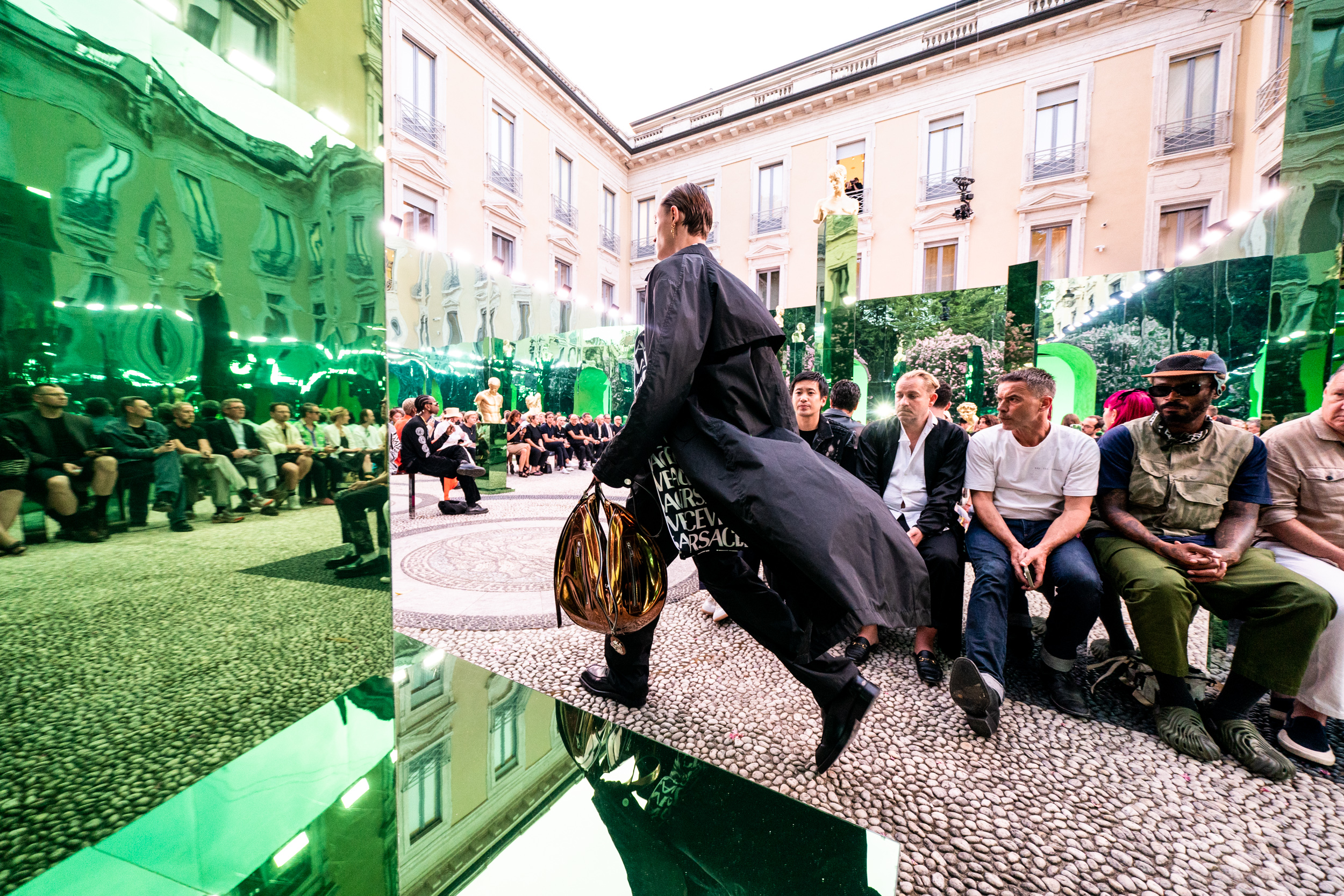 Versace Spring 2023 Men’s Fashion Show Atmosphere from Milan Men’s Fashion Week (June 2022).