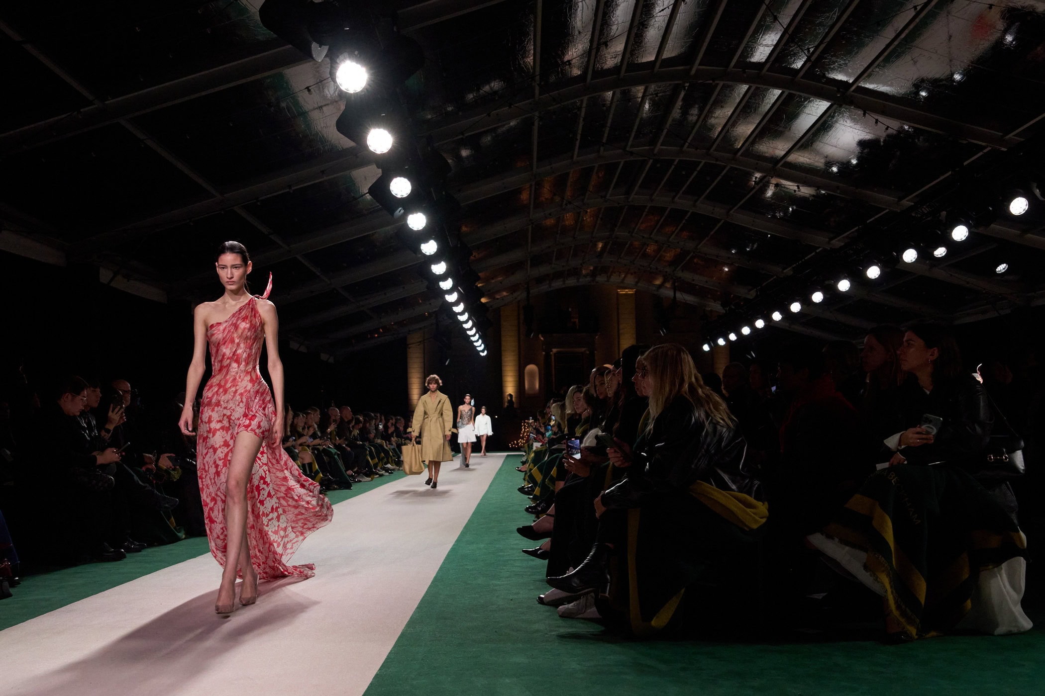 Discover the immersive atmosphere and striking staging of Victoria Beckham‘s Spring 2025 fashion show at Paris Fashion Week, creating an unforgettable mood this season.