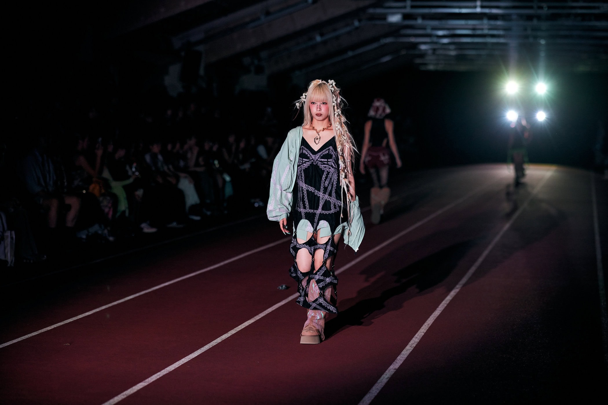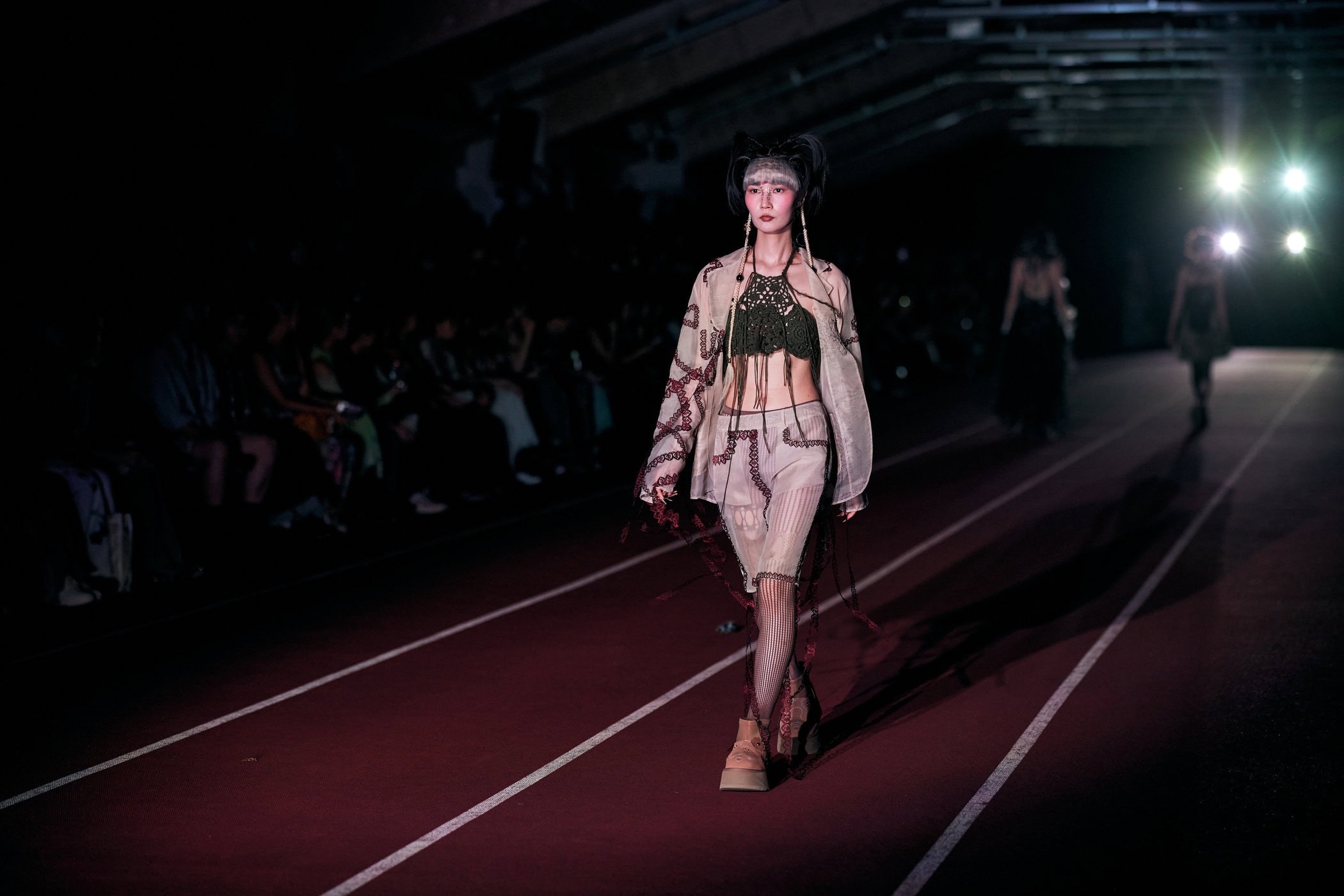 Discover the immersive atmosphere and striking staging of Yueqi Qi‘s Spring 2025 fashion show at Tokyo Fashion Week, creating an unforgettable mood this season.