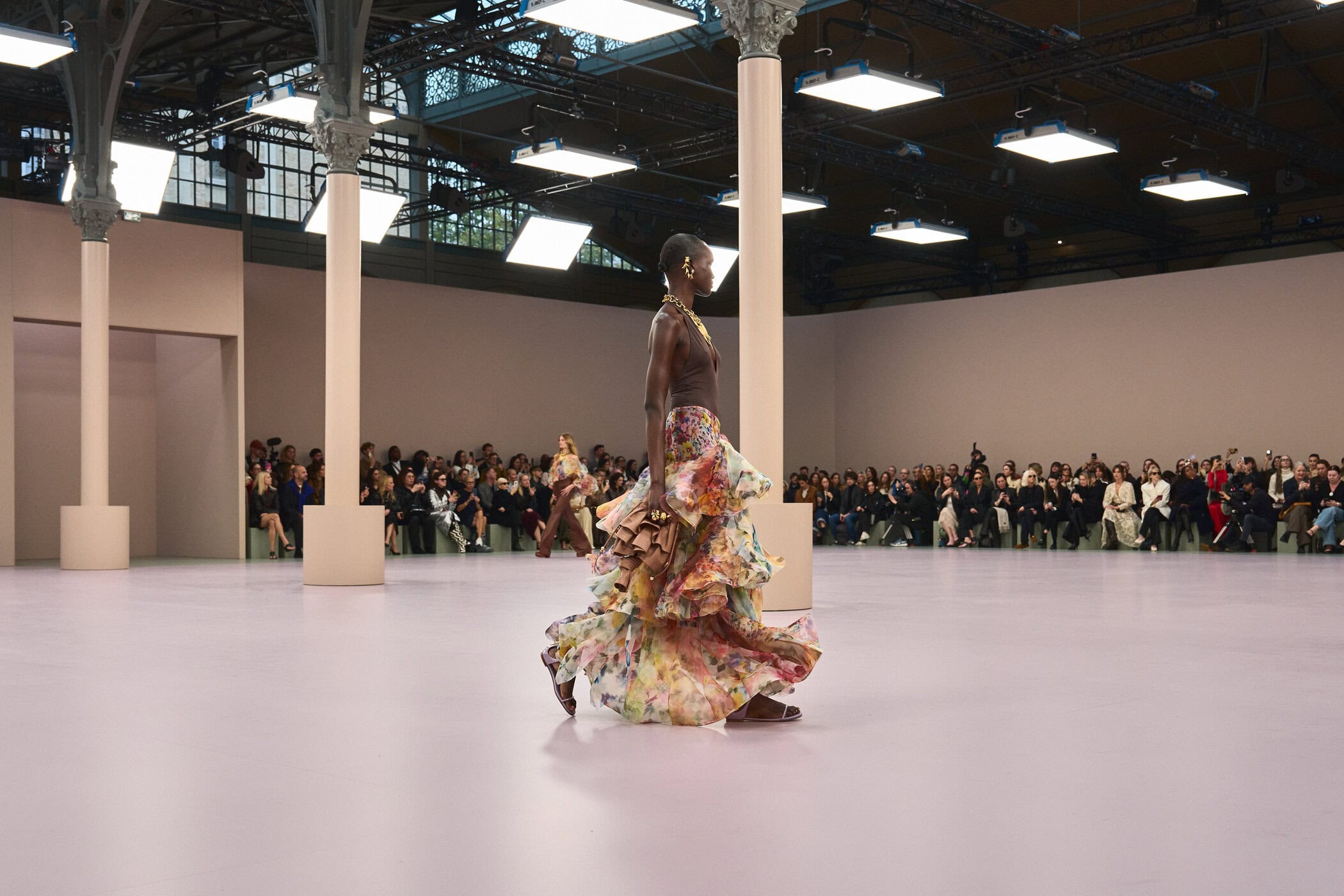 Discover the atmosphere and staging of Zimmermann‘s Spring 2026 fashion show at Paris Fashion Week, creating an unforgettable mood this September.