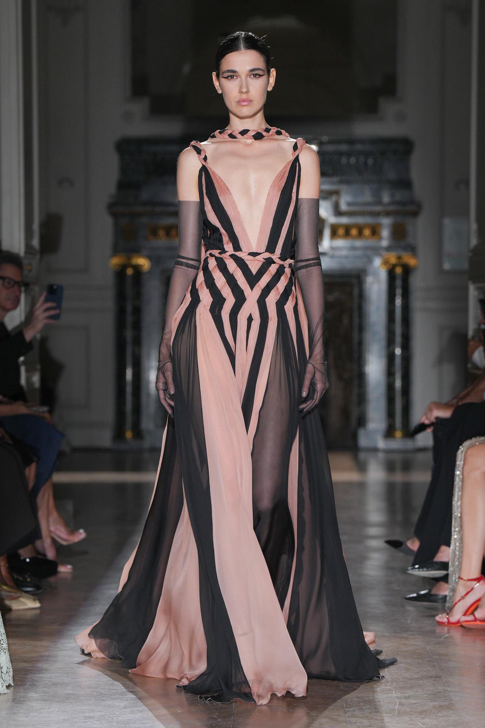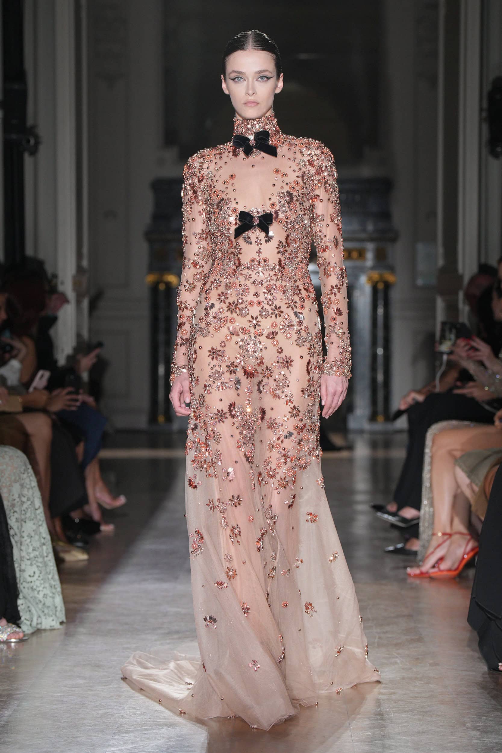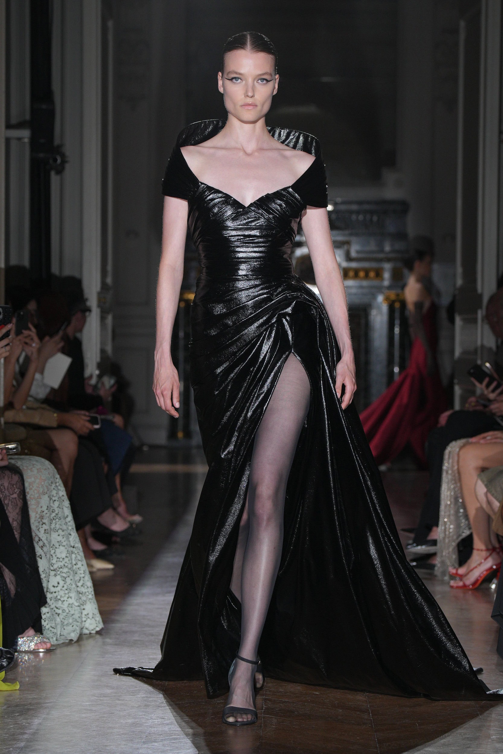 Speaking backstage before the show, Murad explained, “This silhouette is really not the princess dress at all, she’s more structured, more strong, edgier, sexier. What we are doing now is to develop this in a modern way to meet with our world.”
